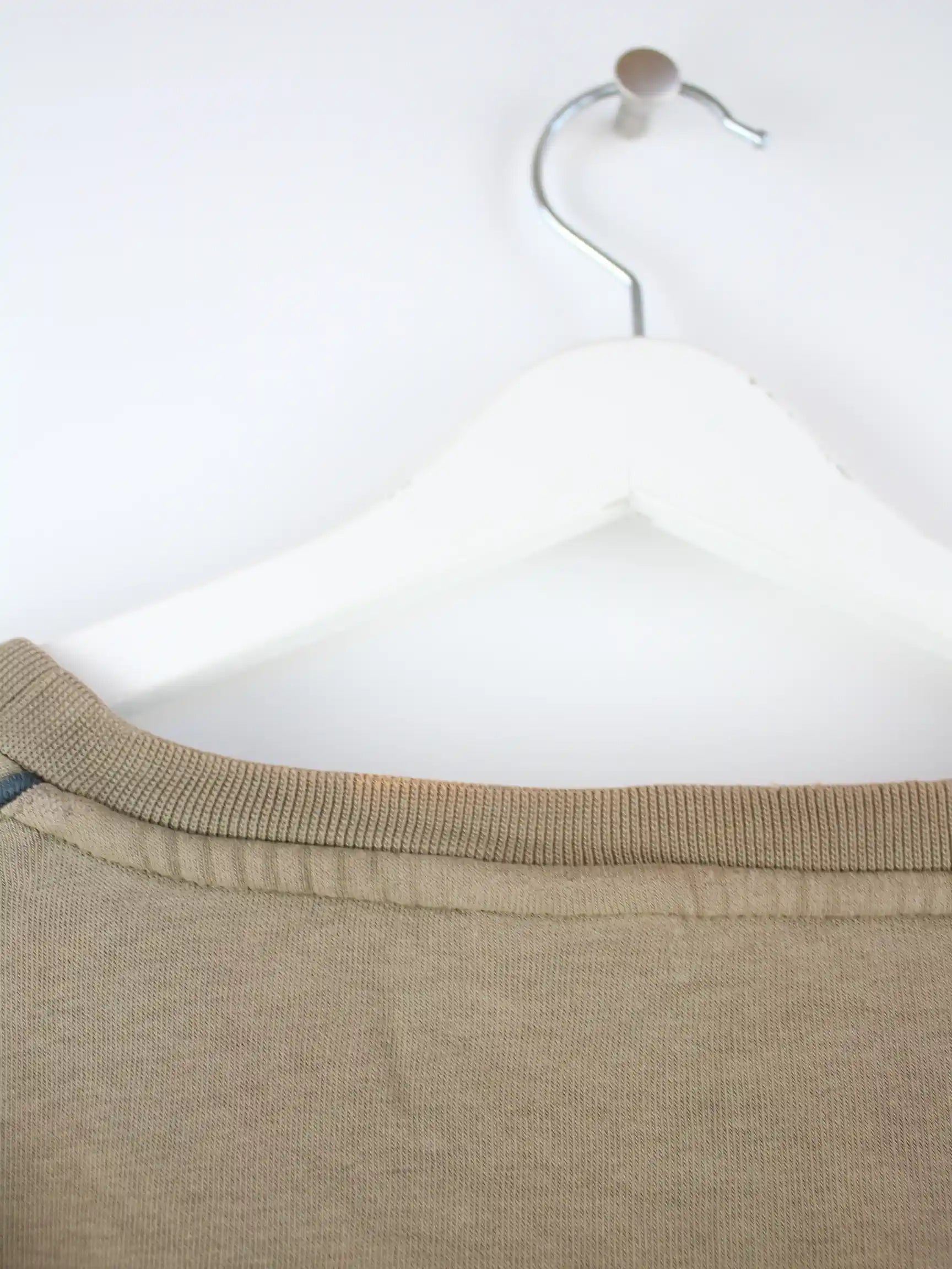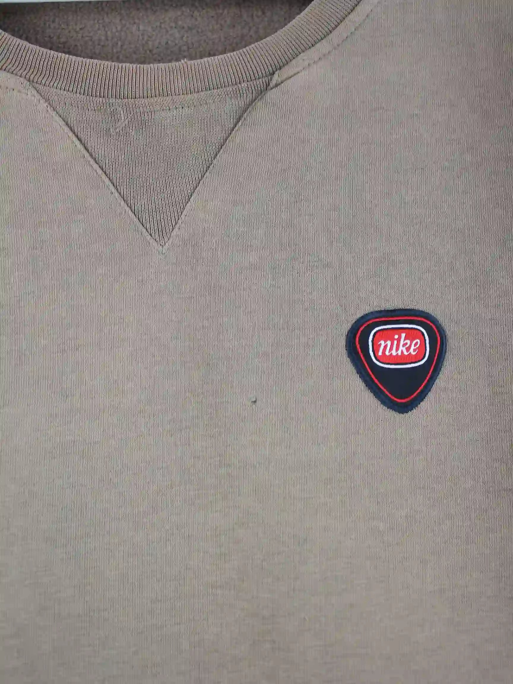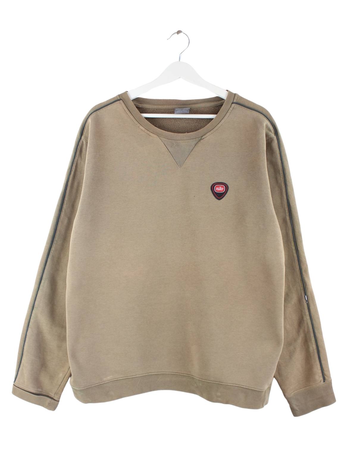 Brauner Sweater mit Stick aus dem Hause Nike in Größe L. Er ist aus einer Baumwollmischung produziert. Den Zustand würden wir als 'In Ordnung' bezeichnen (vergl. Bilder).