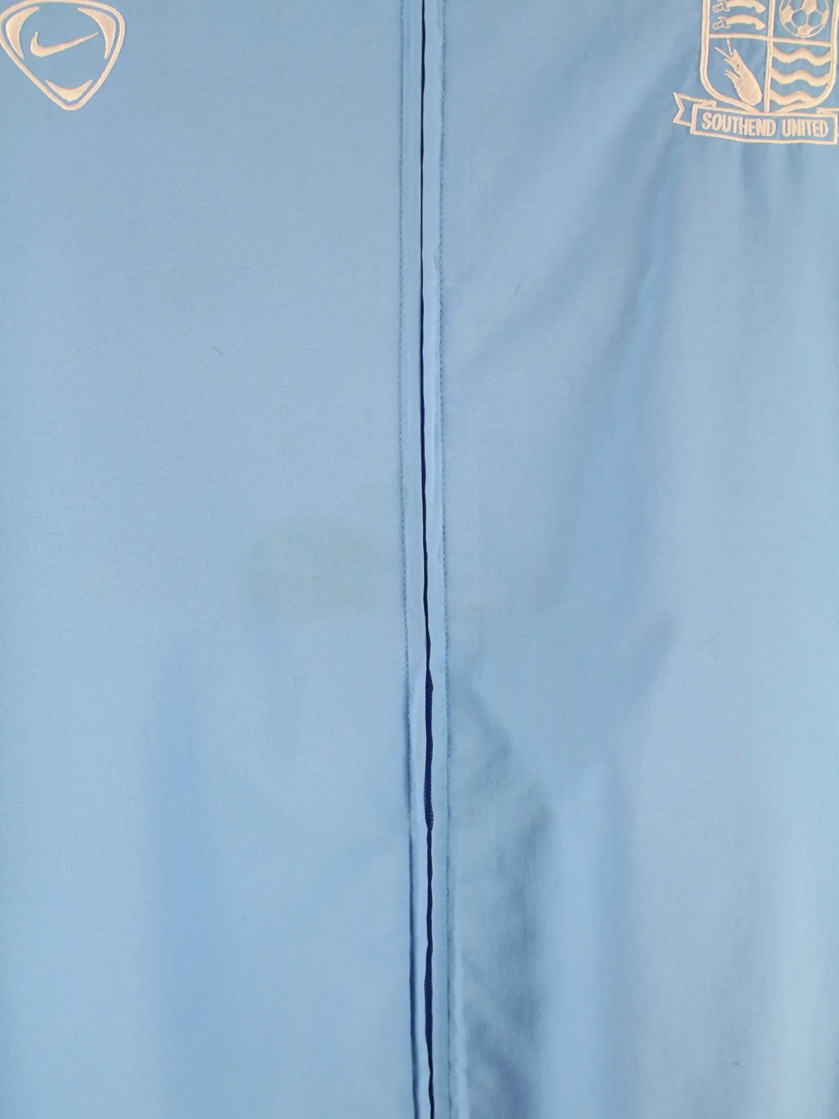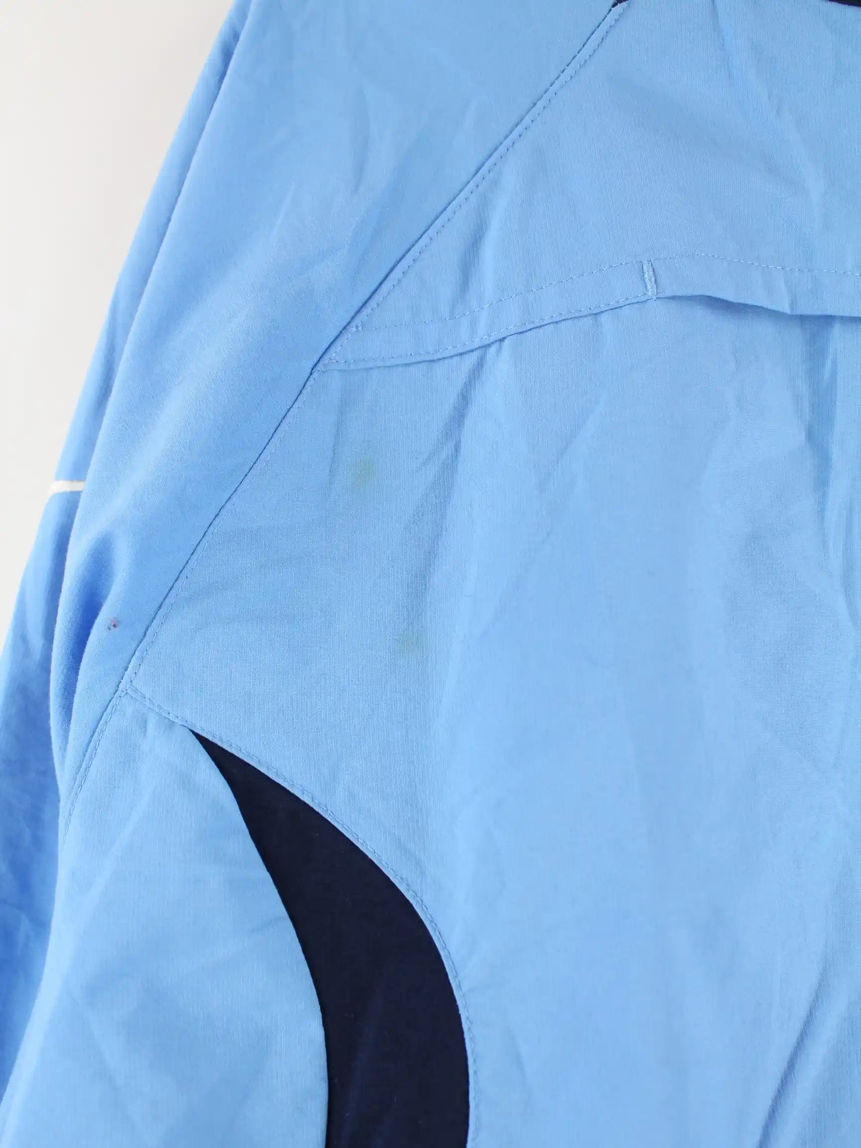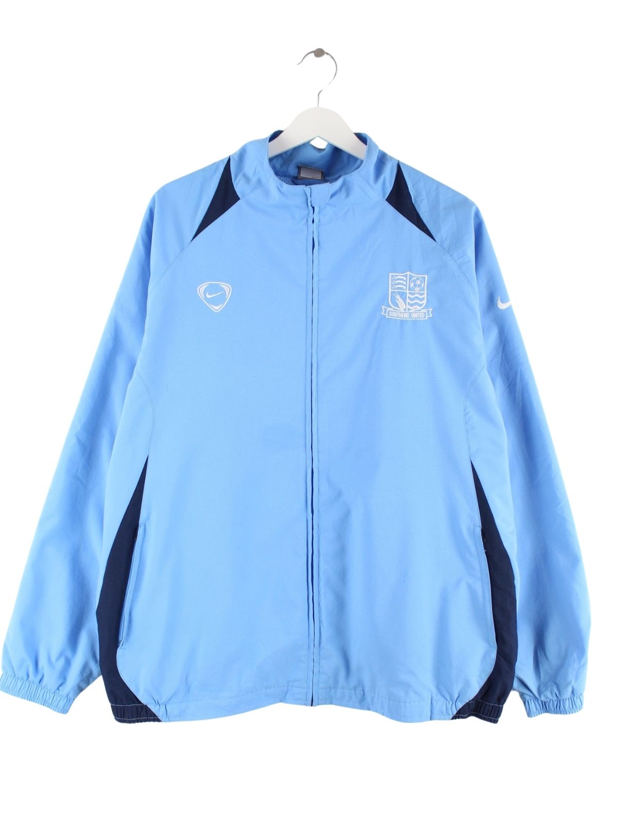 Blaue Trainingsjacke des Labels Nike in Größe L. Sie ist aus Synthetik . Den Zustand würden wir als 'In Ordnung' bezeichnen (vergl. Bilder).