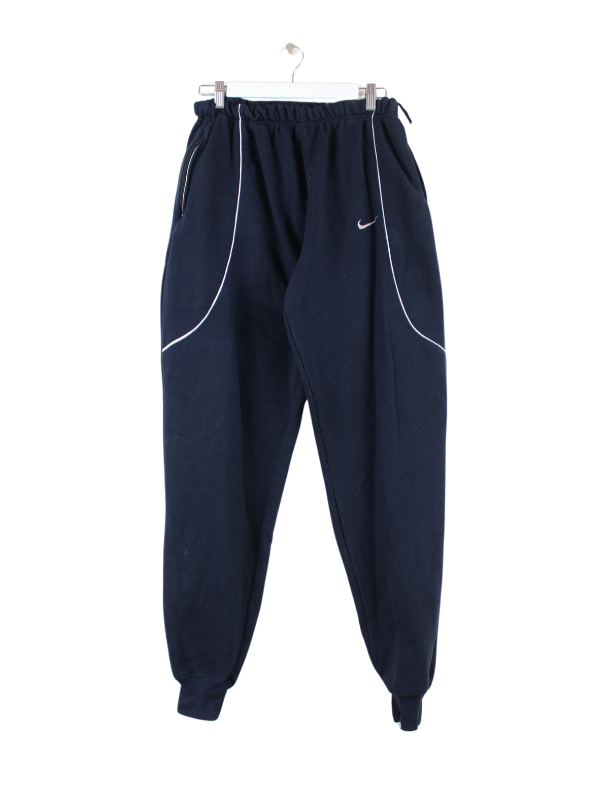 Blue jogging pants from Nike in size L. They are made from a cotton blend and are in good condition.