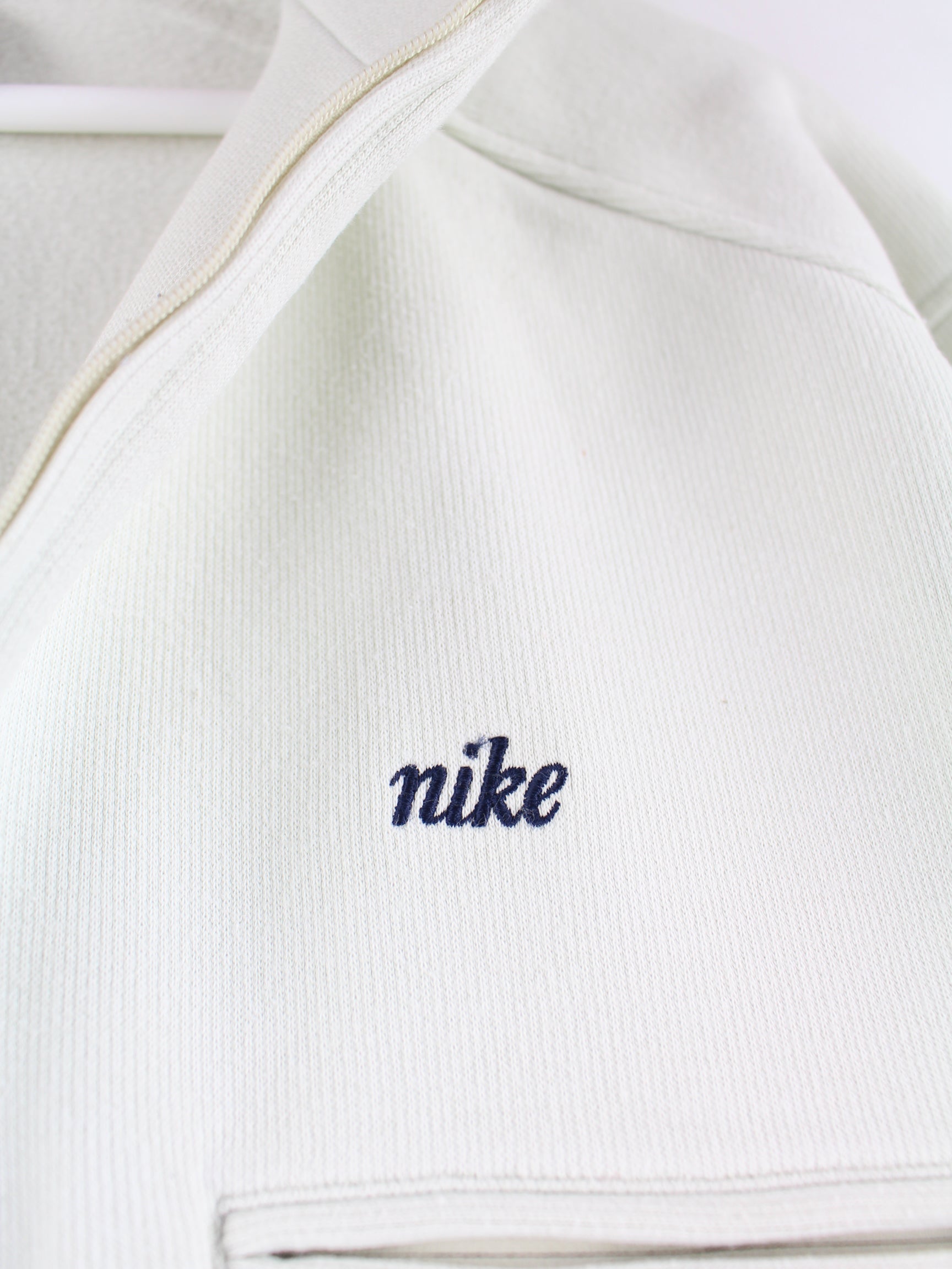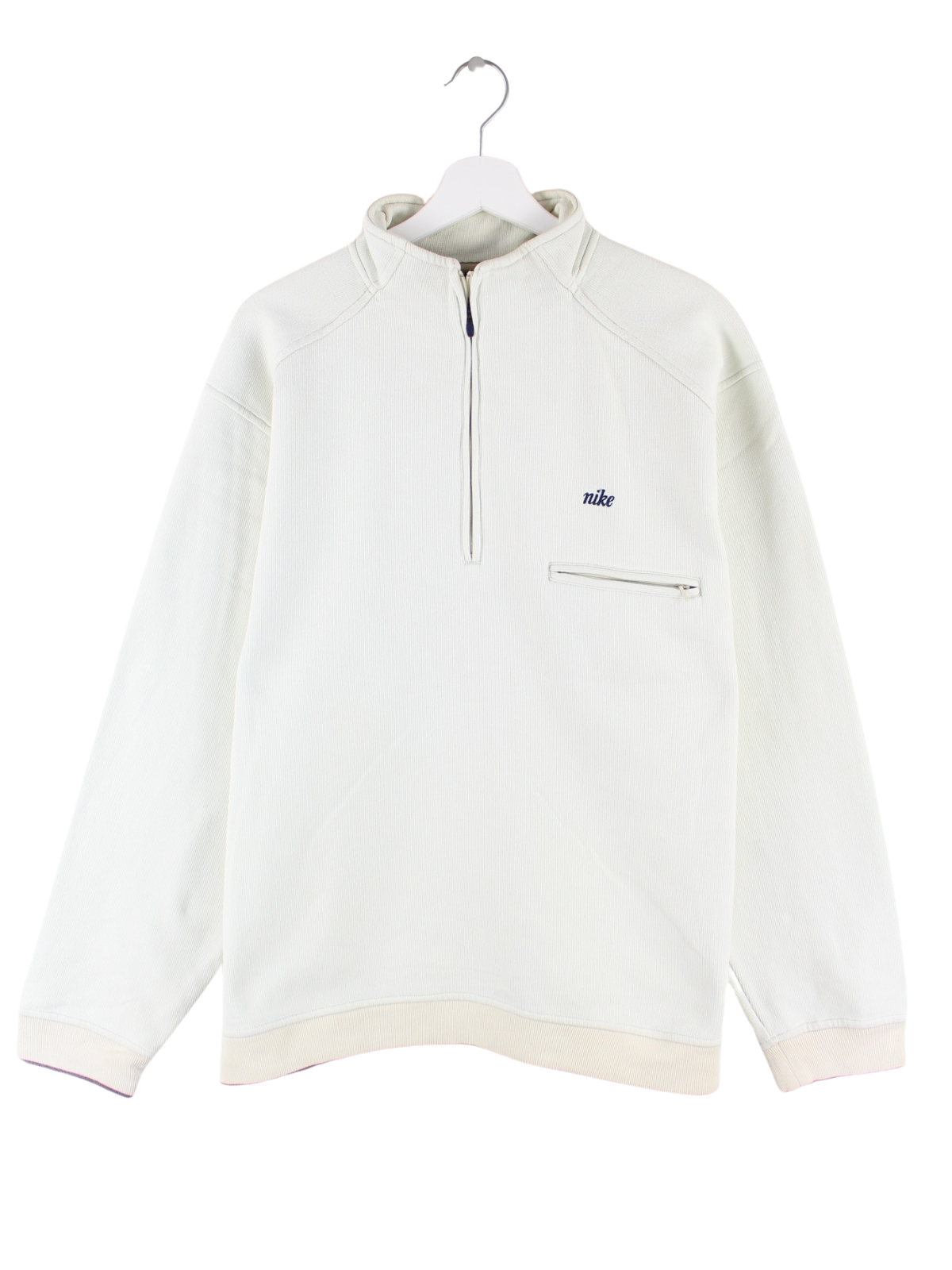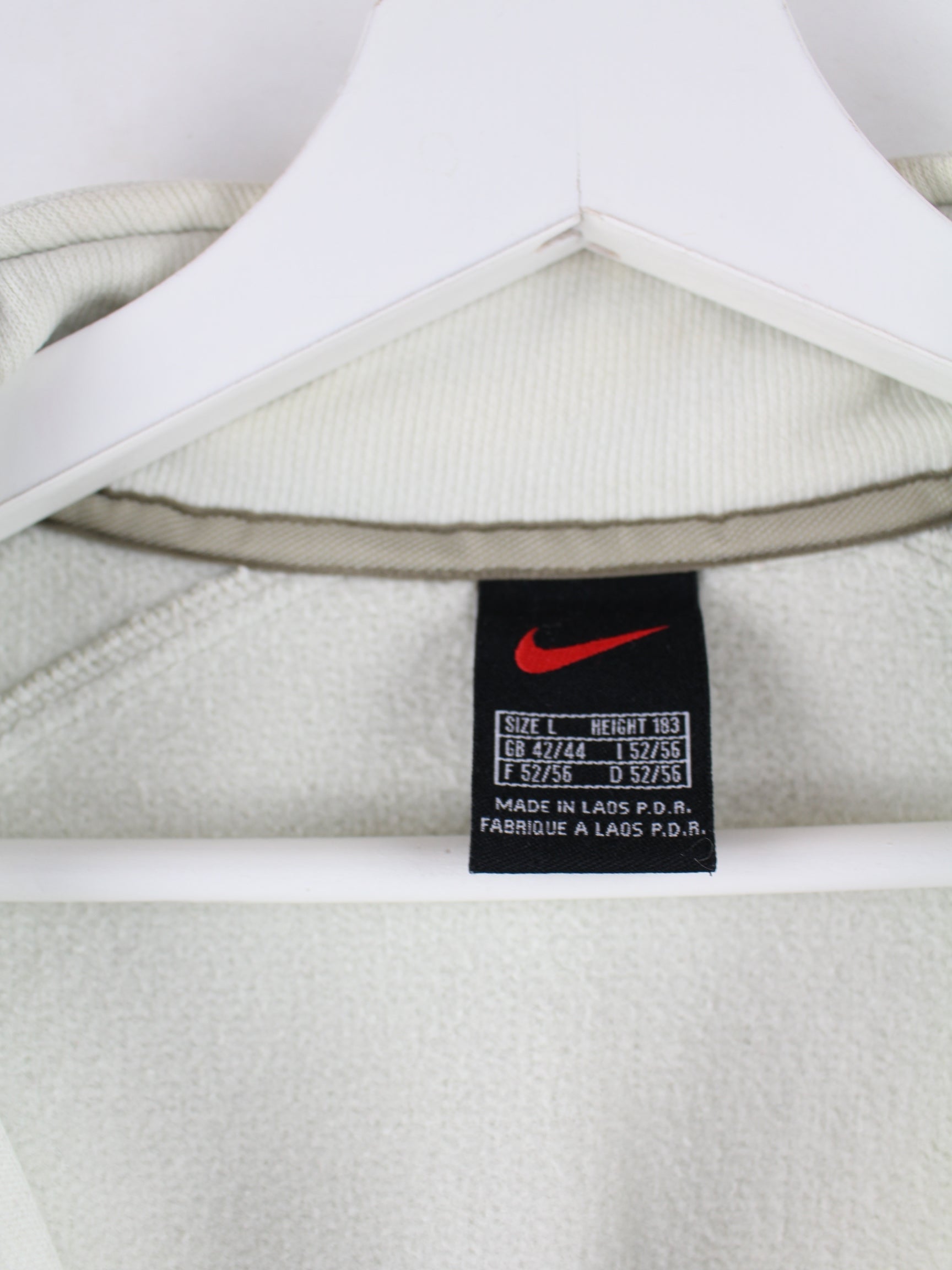 Sweater from Nike with embroidery and short zip in size L from the 90's. It is made from a cotton blend and is available in beige.