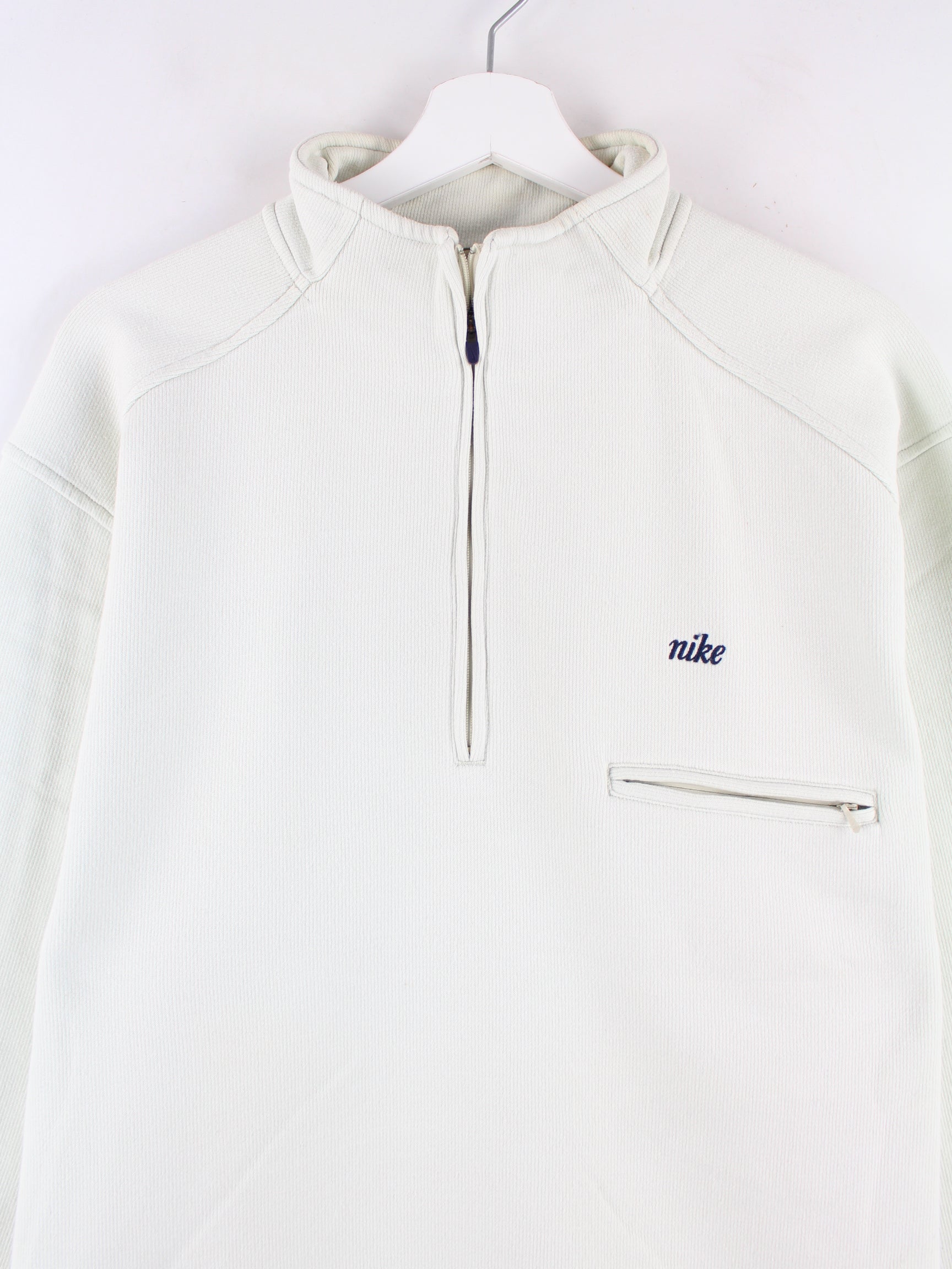 Nike 90s Vintage Embroidered Half Zip Sweater Beige L