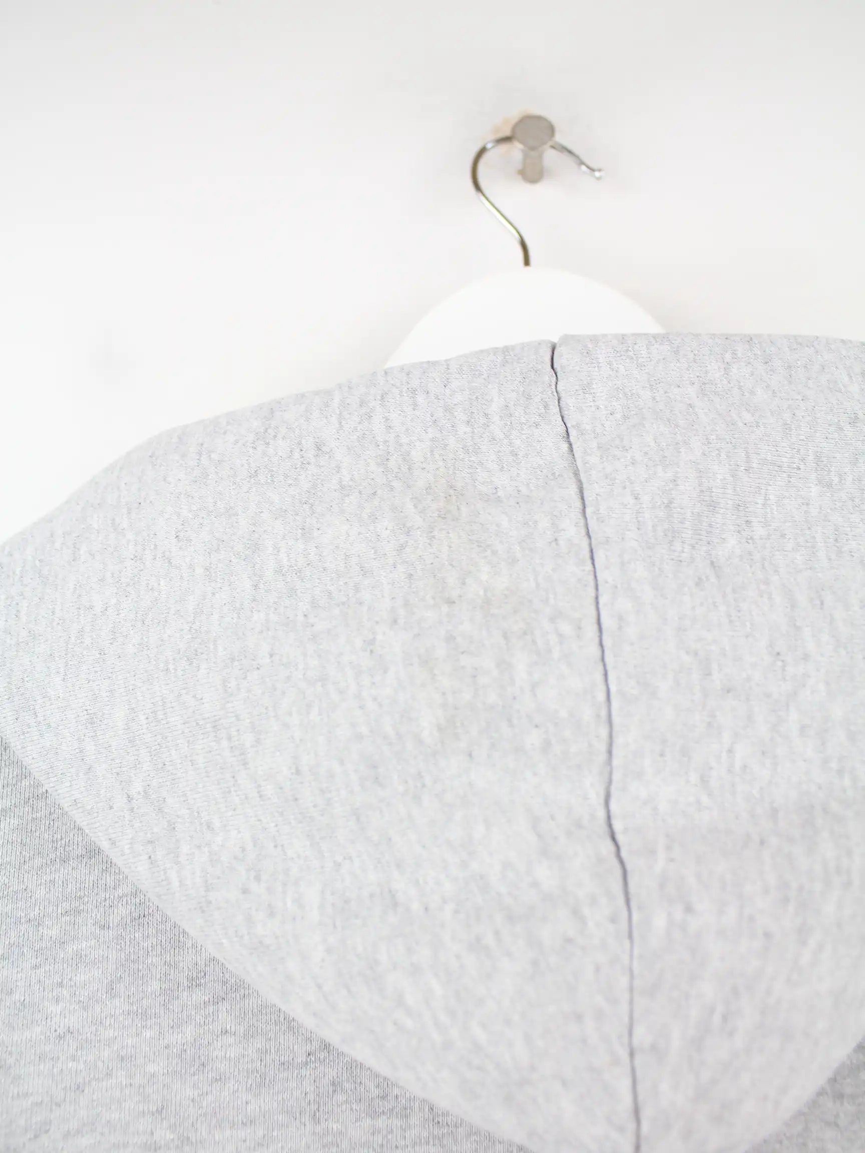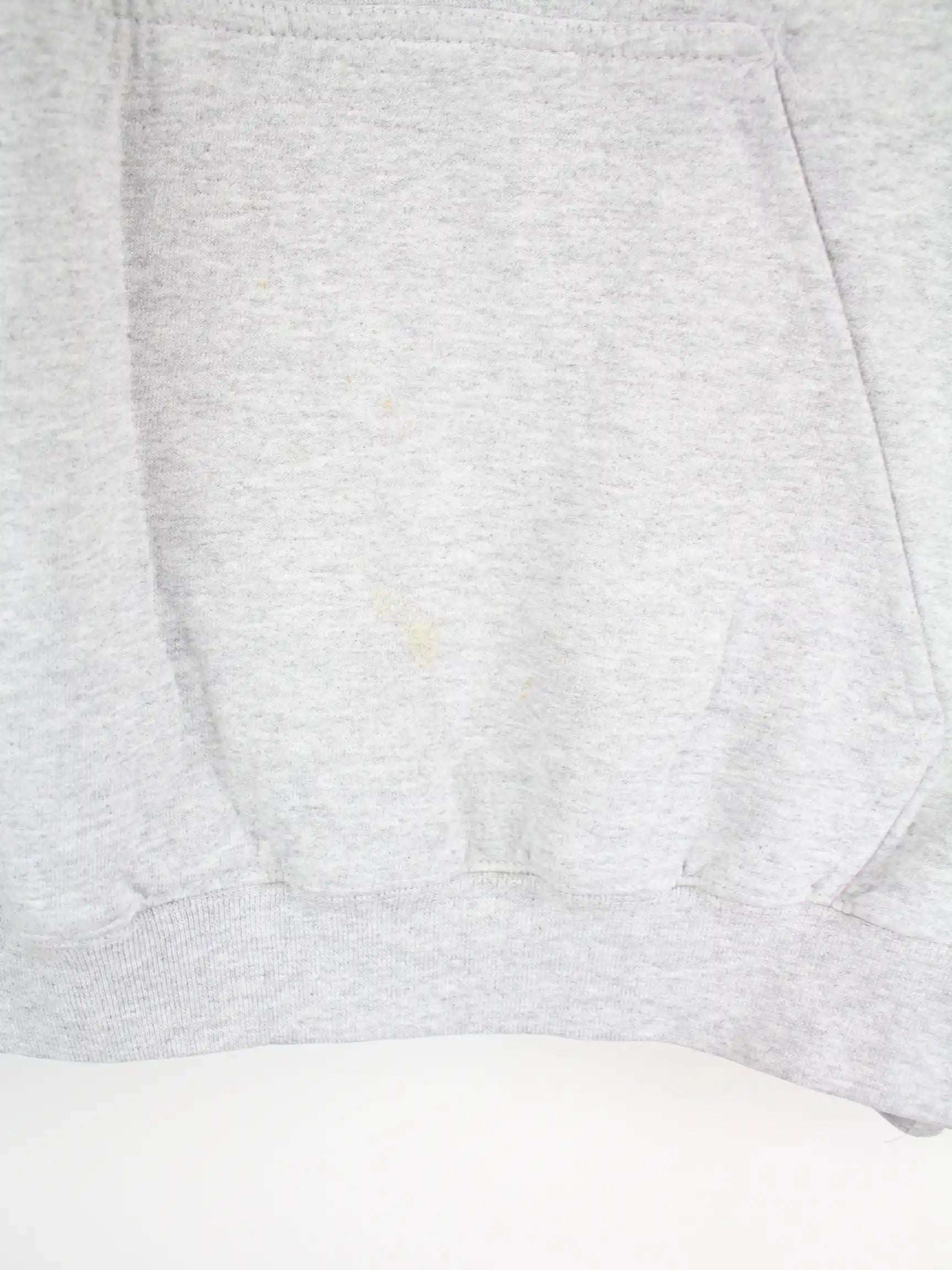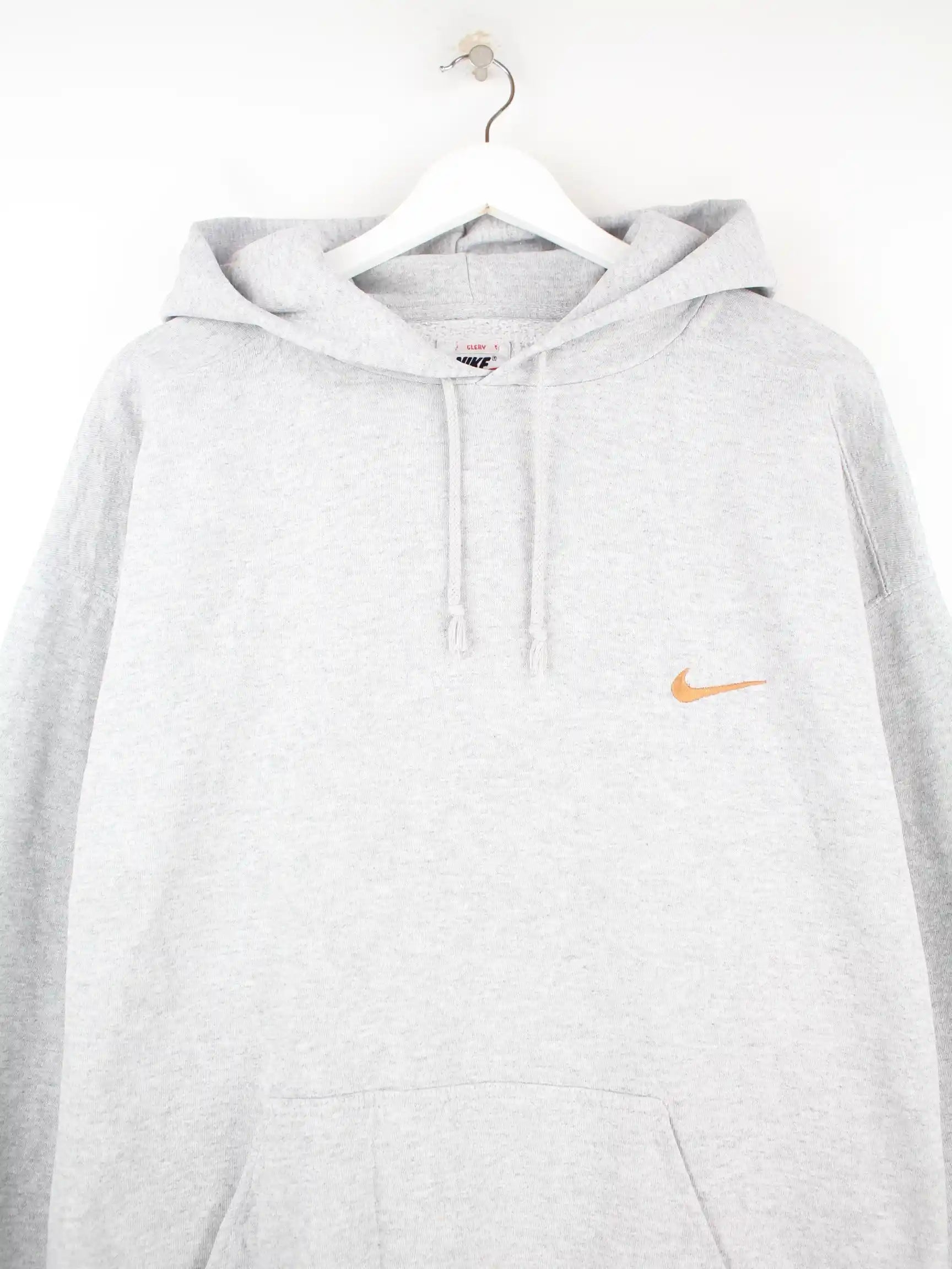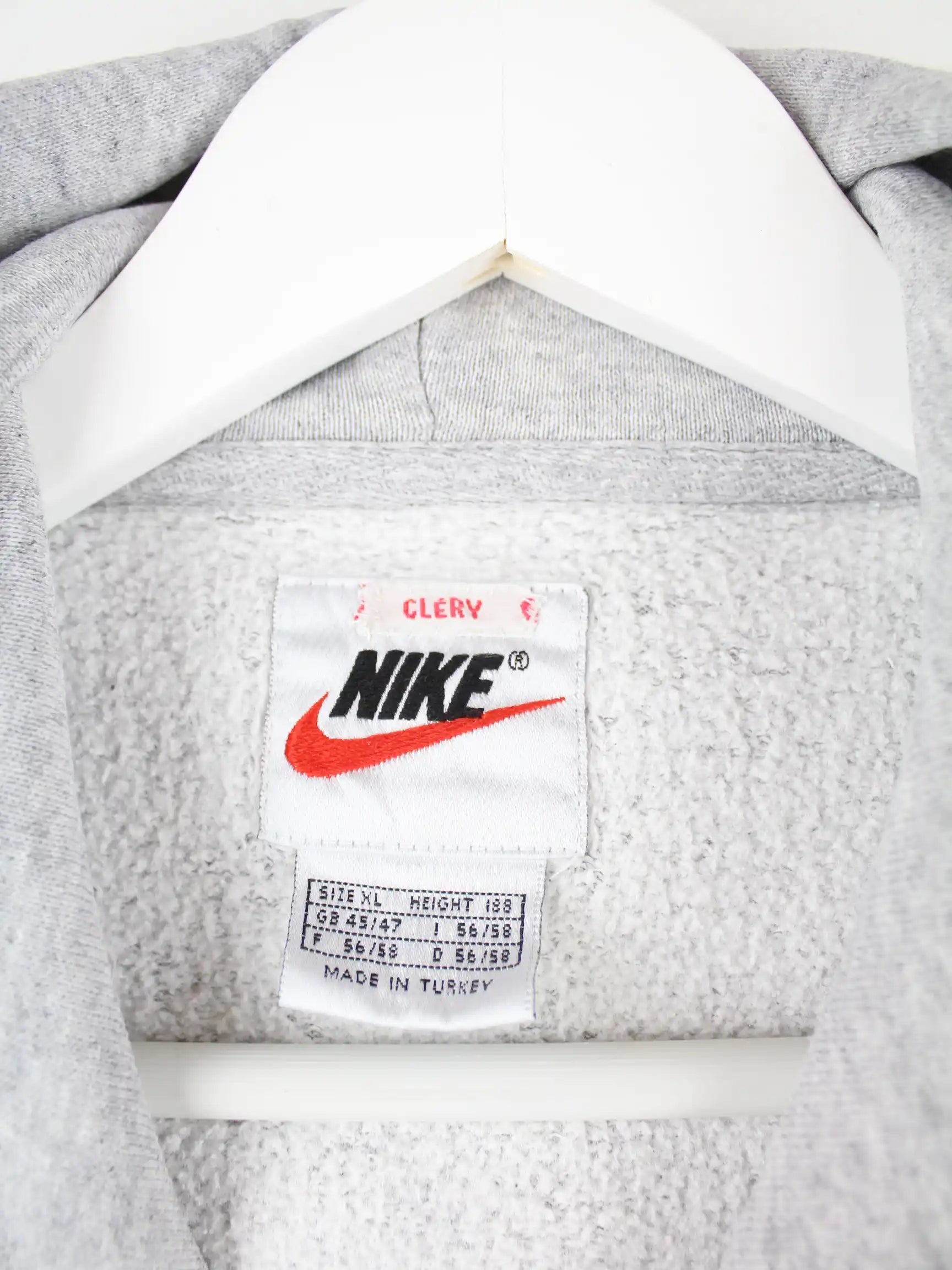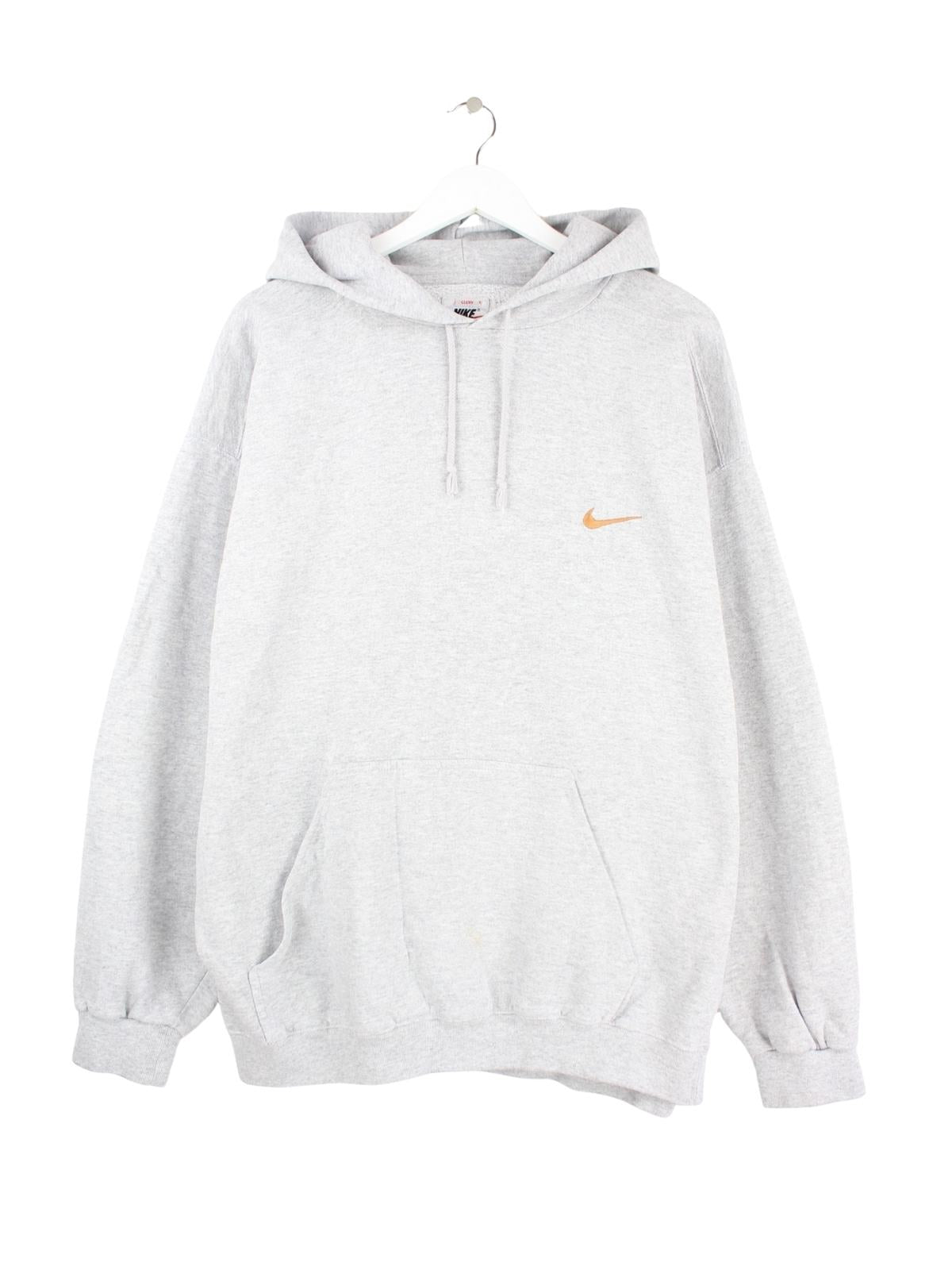 Grauer Hoodie aus dem Hause Nike aus den 90'ern in Größe XL. Er ist aus einer Baumwollmischung und in gutem Zustand vorrätig.