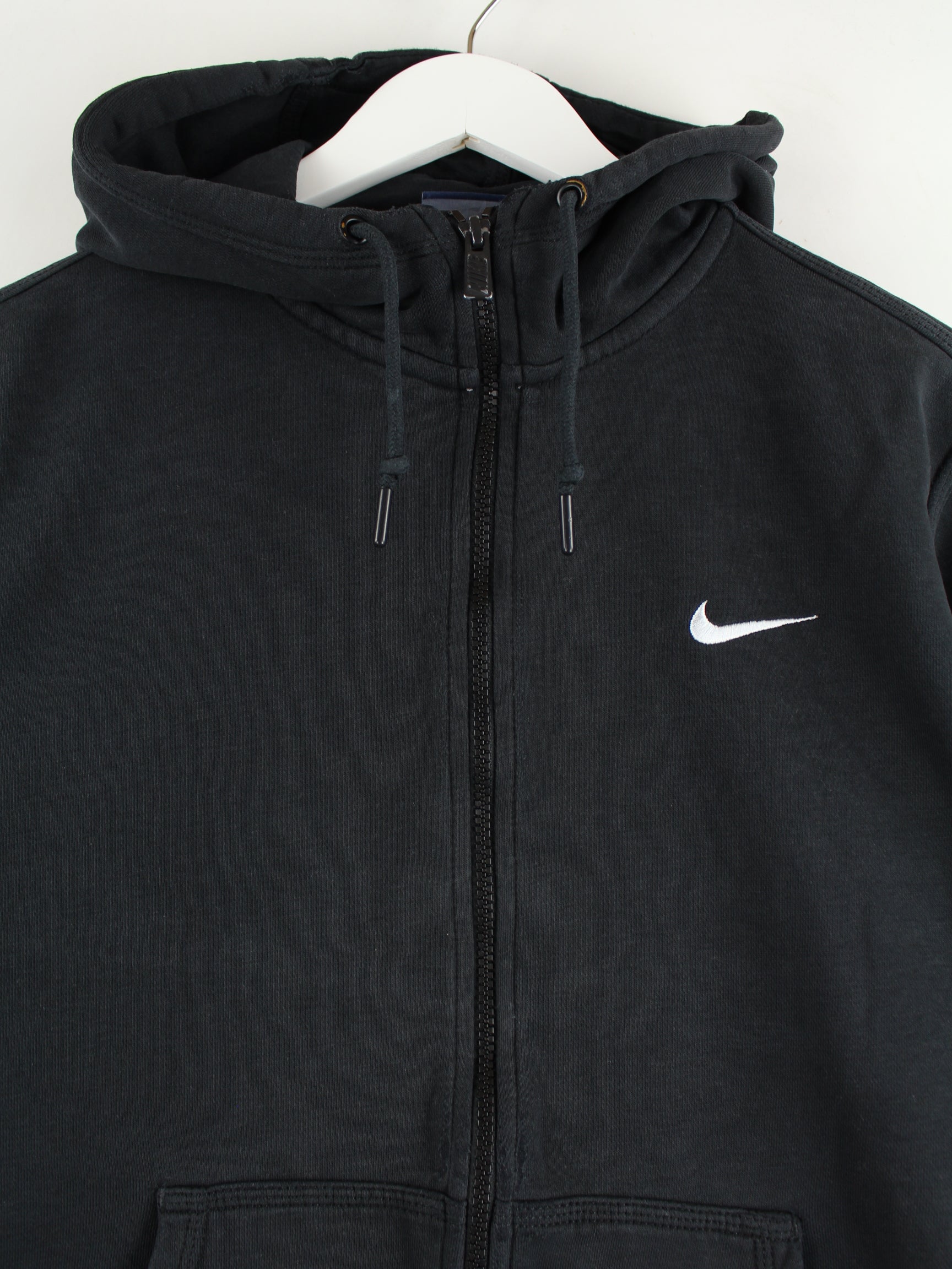 Nike zip-up hoodie in size M. It is made from a cotton blend and is available in black.