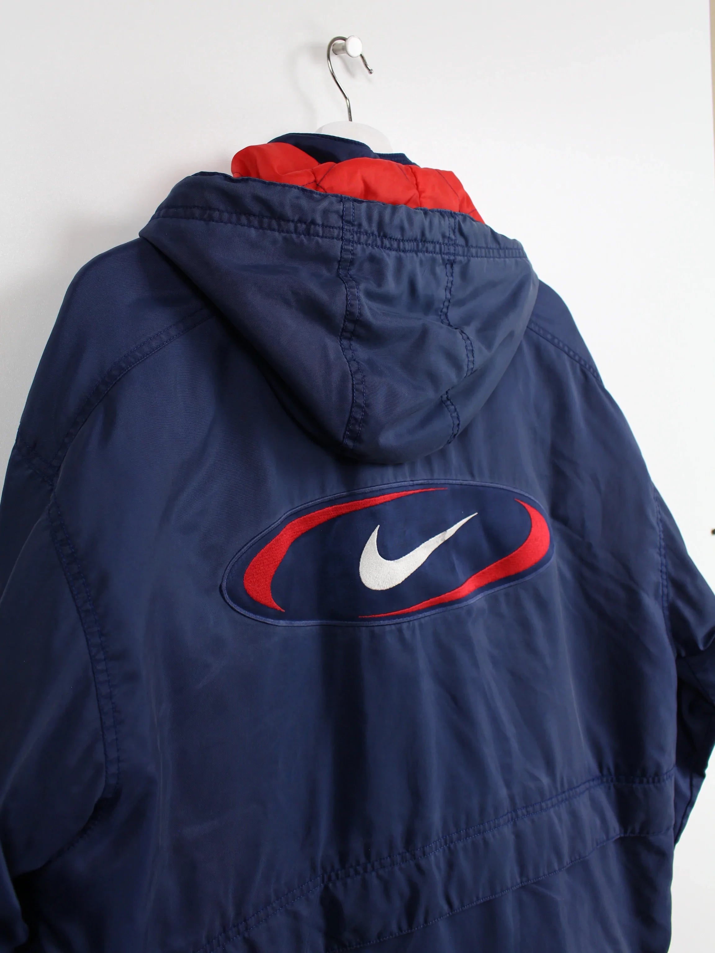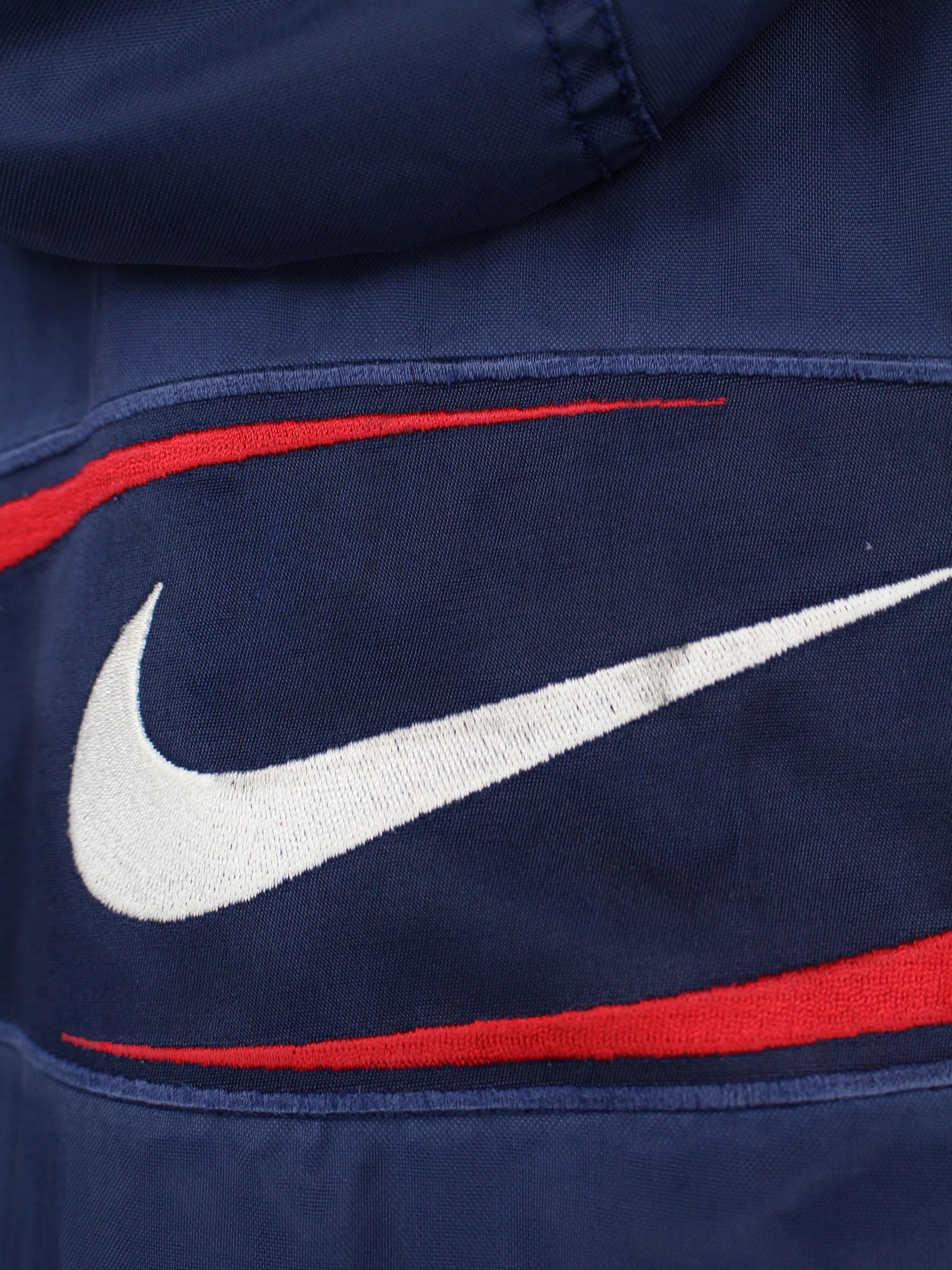 Veste Nike Red Tag bleue avec grand Swoosh dans le dos.