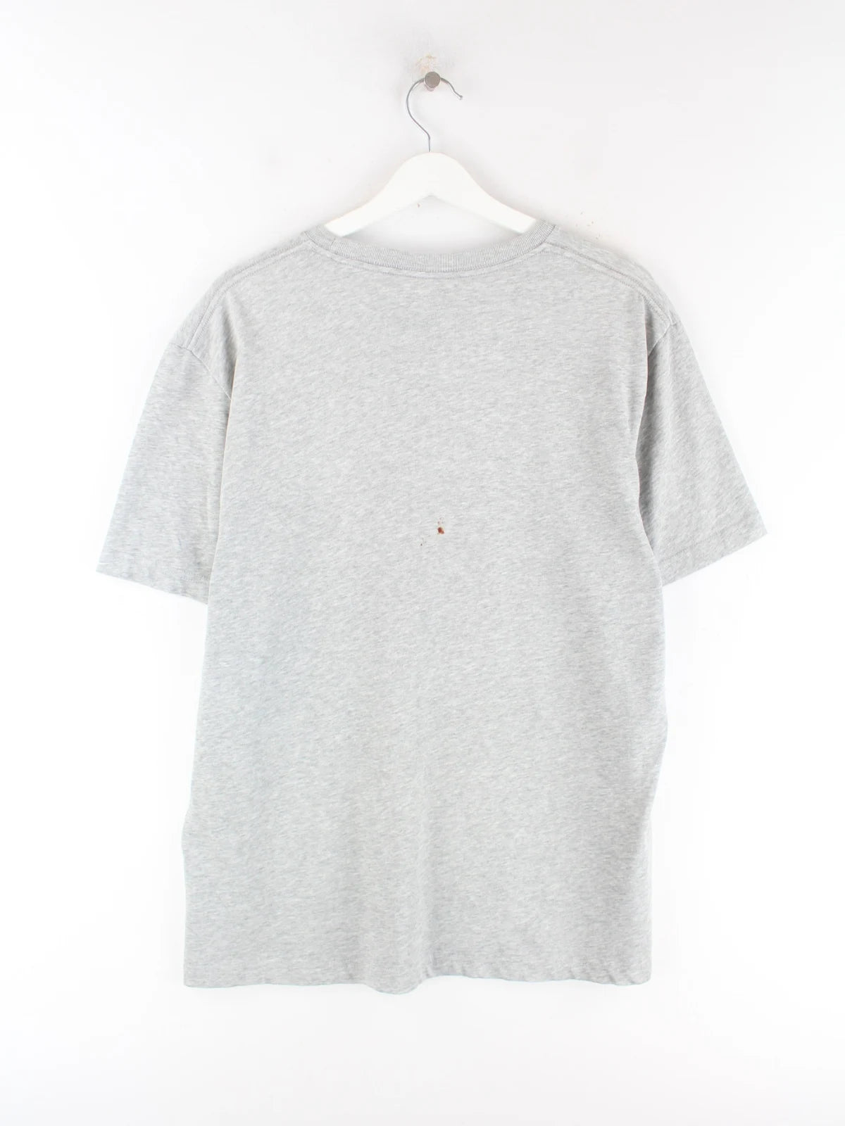 Graues T-Shirt vom Label Nike in Größe L. Es ist aus einer Baumwollmischung produziert. Den Zustand würden wir als 'In Ordnung' bezeichnen (vergl. Bilder).