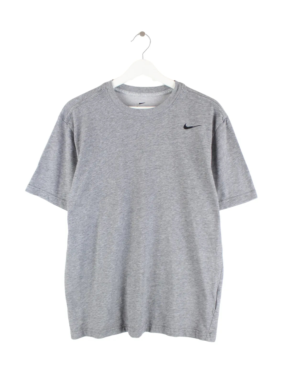 Graues T-Shirt der Brand Nike in Größe L. Es ist aus einer Baumwollmischung gefertigt und in sehr gutem Zustand lieferbar.