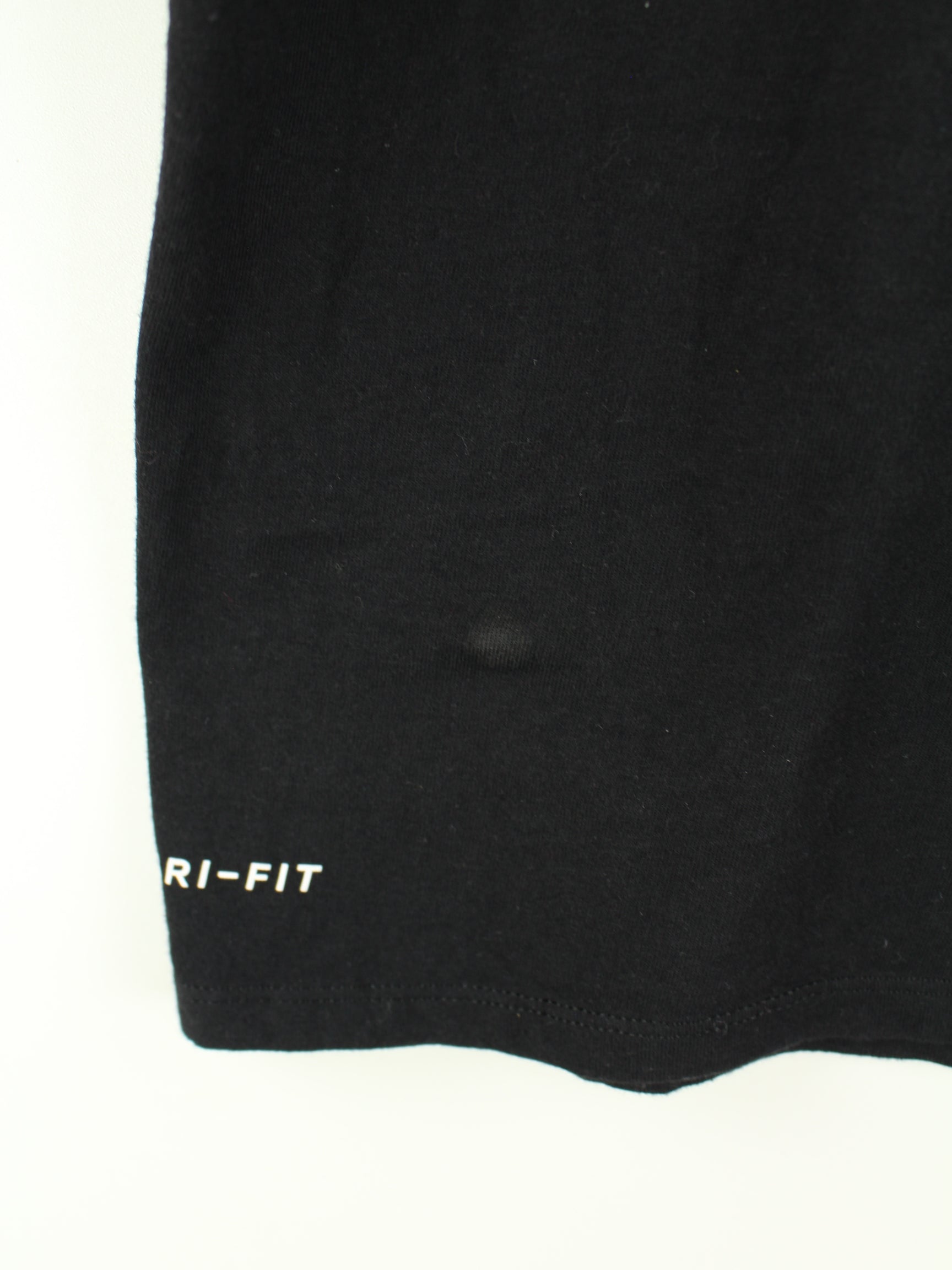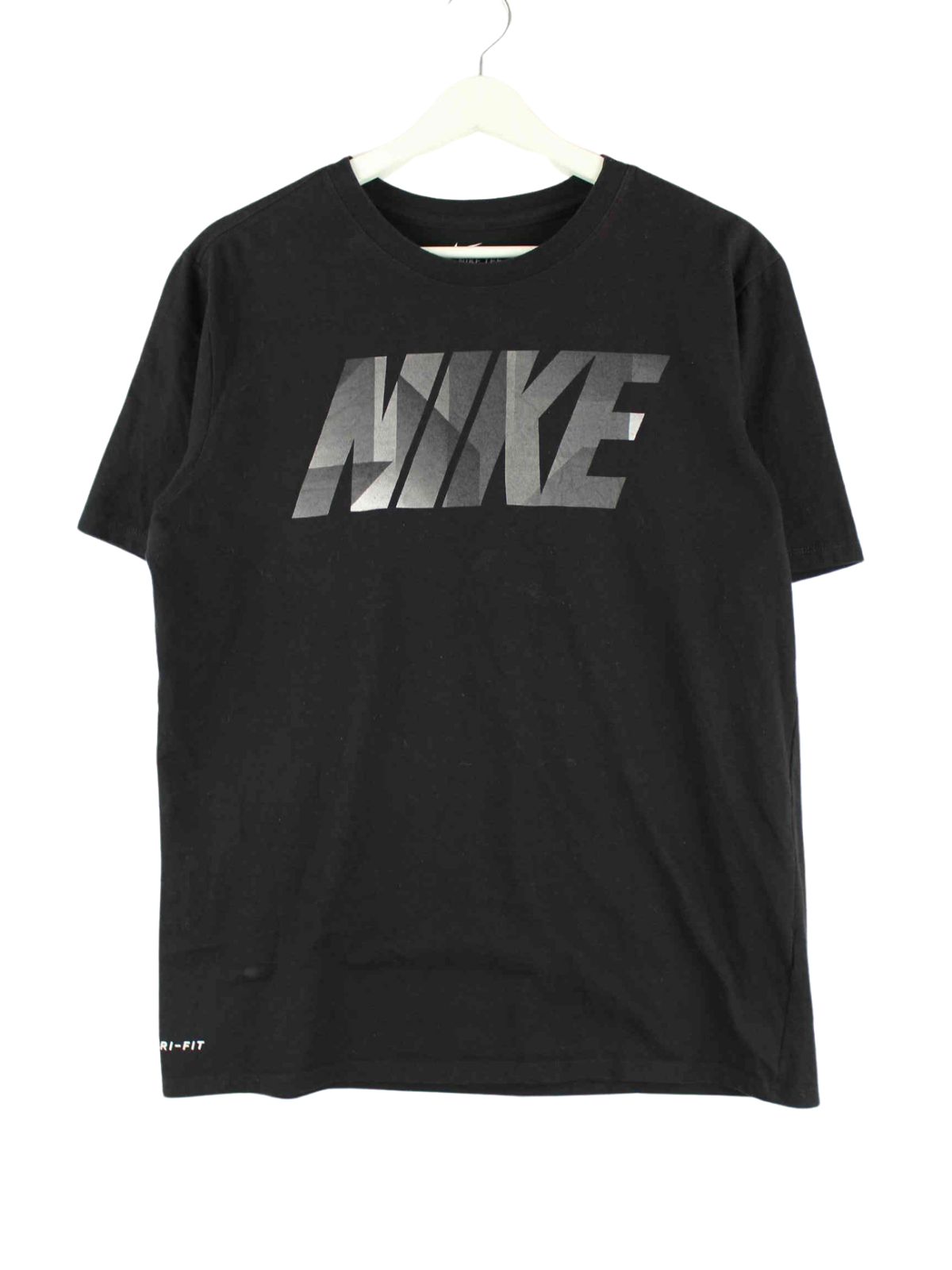 Black T-shirt from Nike in size M. It is made from a cotton blend and is available from us in good condition. With a chic print.
