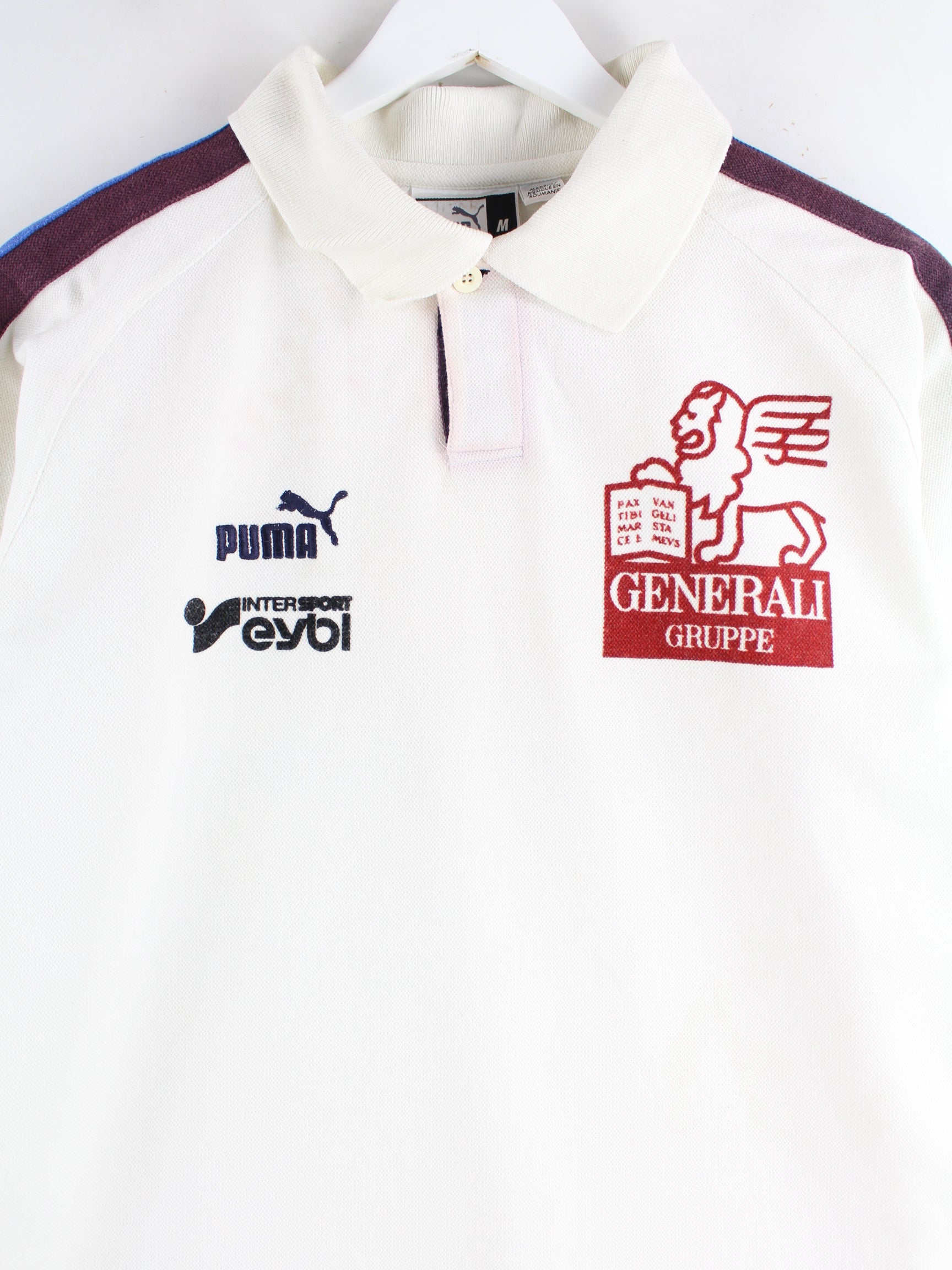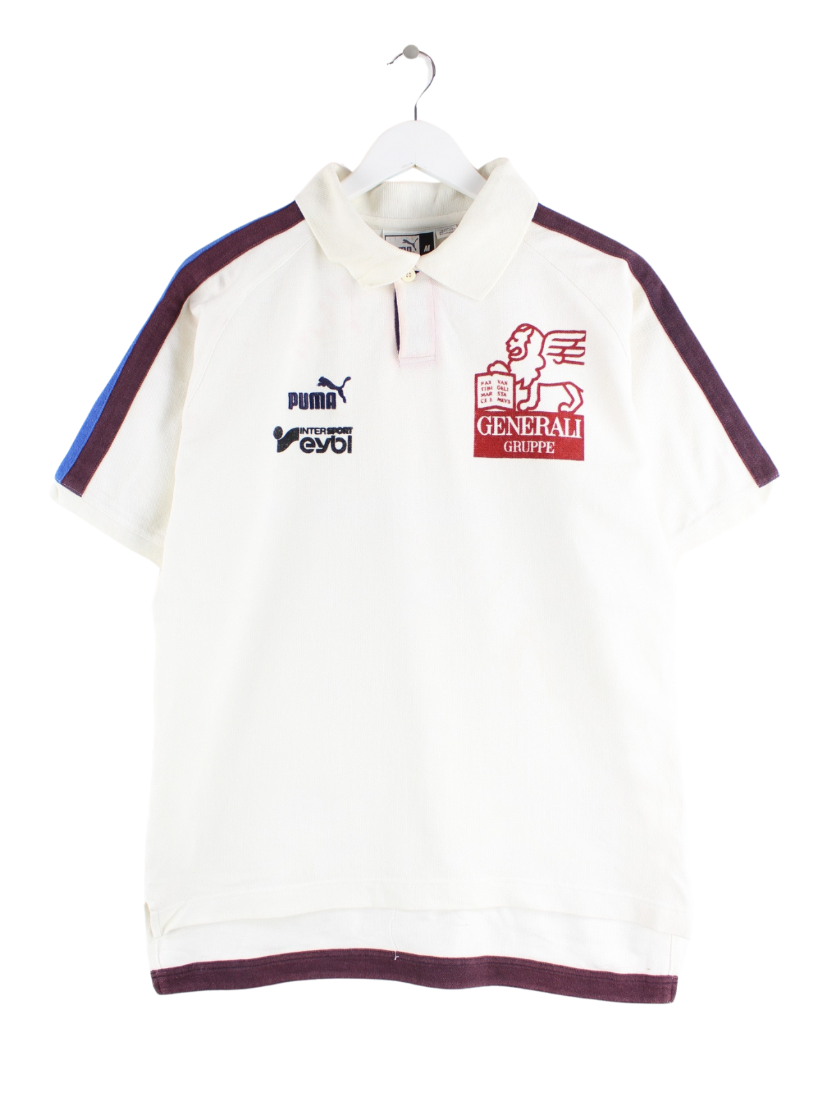 Weißes Poloshirt mit Stick des Labels Puma in Größe M. Es ist aus Baumwolle hergestellt. Den Zustand würden wir als 'In Ordnung' bezeichnen (vergl. Bilder).
