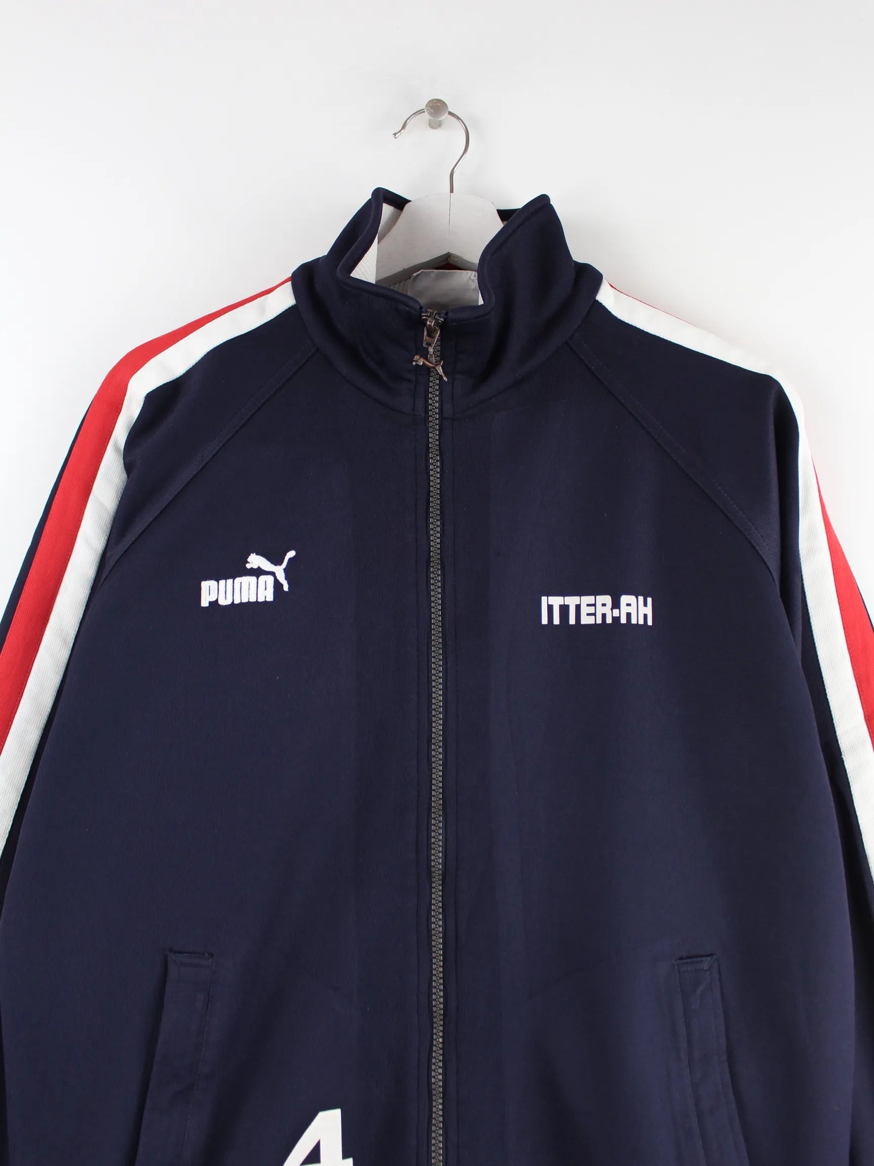 Trainingsjacke des Labels Puma in Größe M. Sie ist aus Synthetik und in Blau im Angebot.
