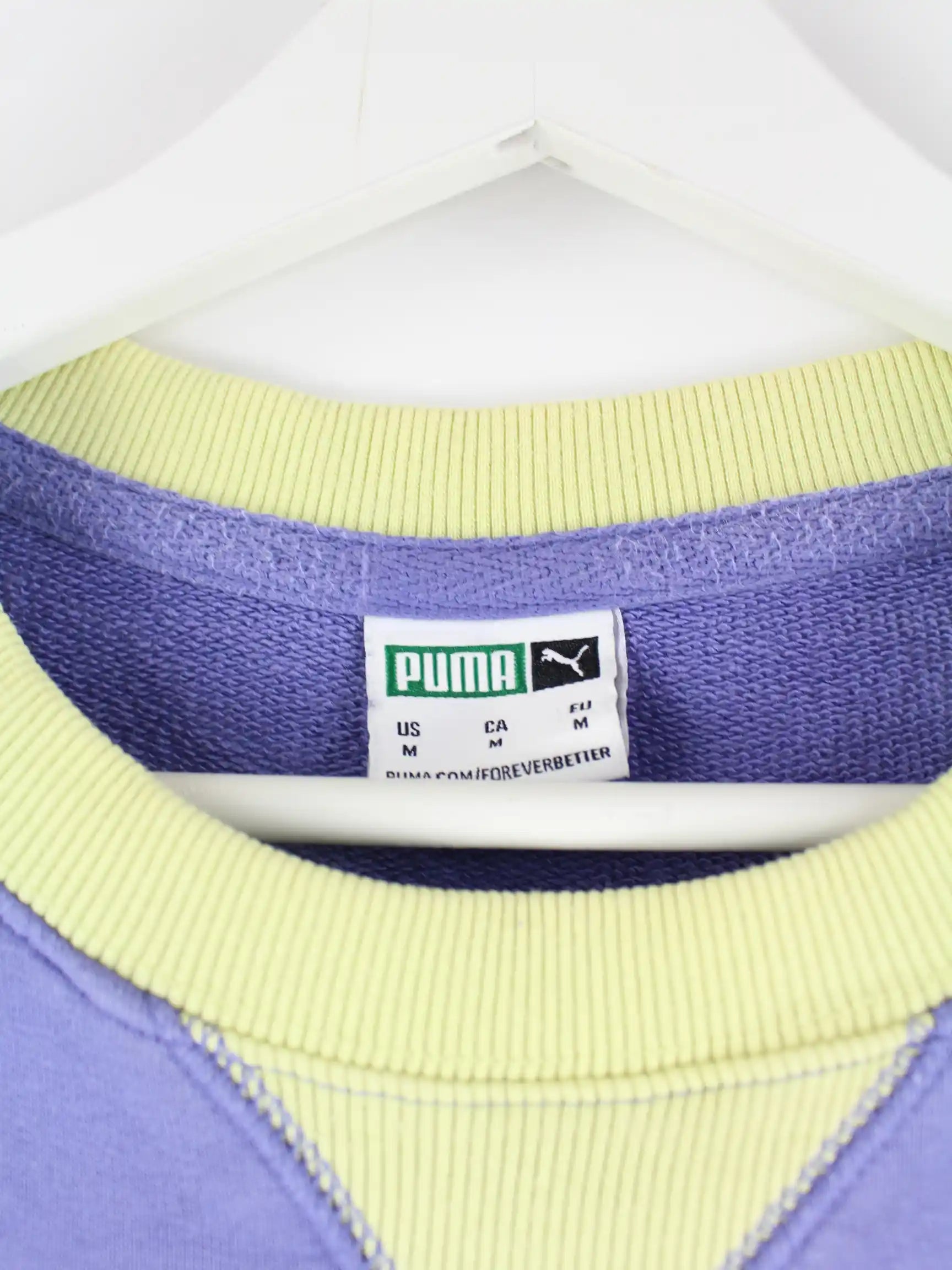 Lilafarbener Sweater der Brand Puma in Größe M. Er ist aus einer Baumwollmischung angefertigt. Den Zustand würden wir als 'In Ordnung' bezeichnen (vergl. Bilder).