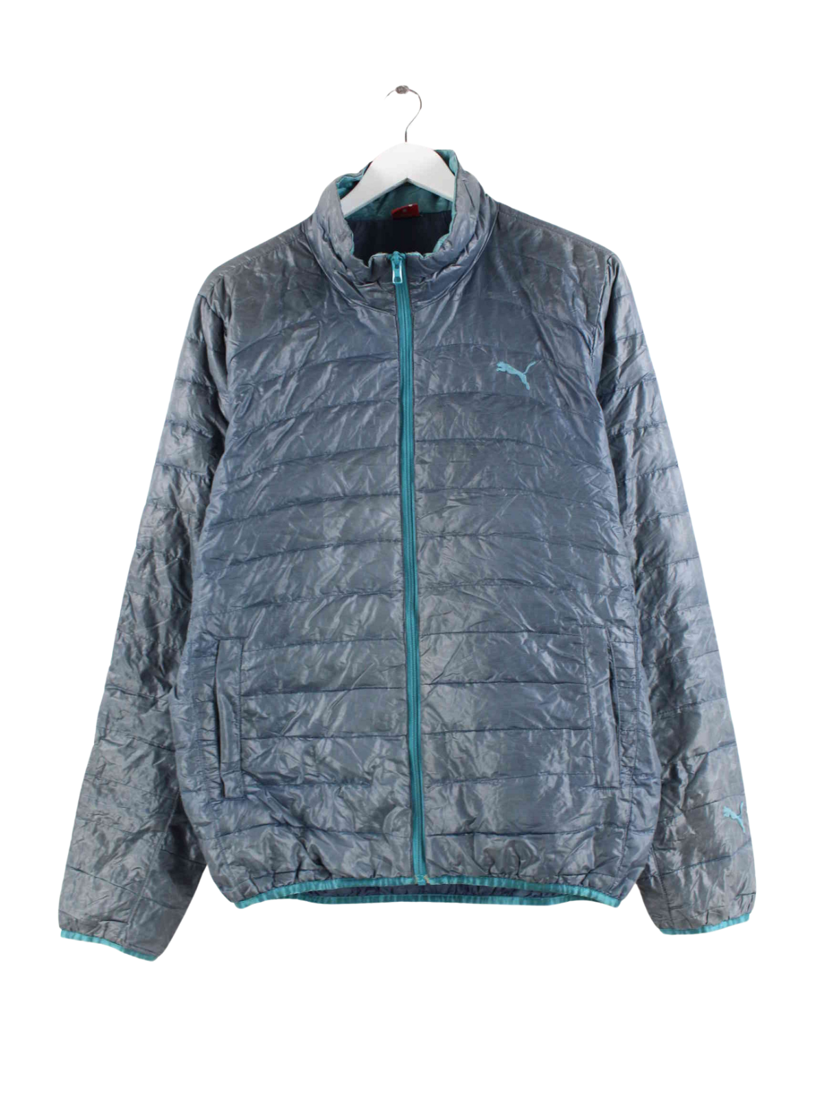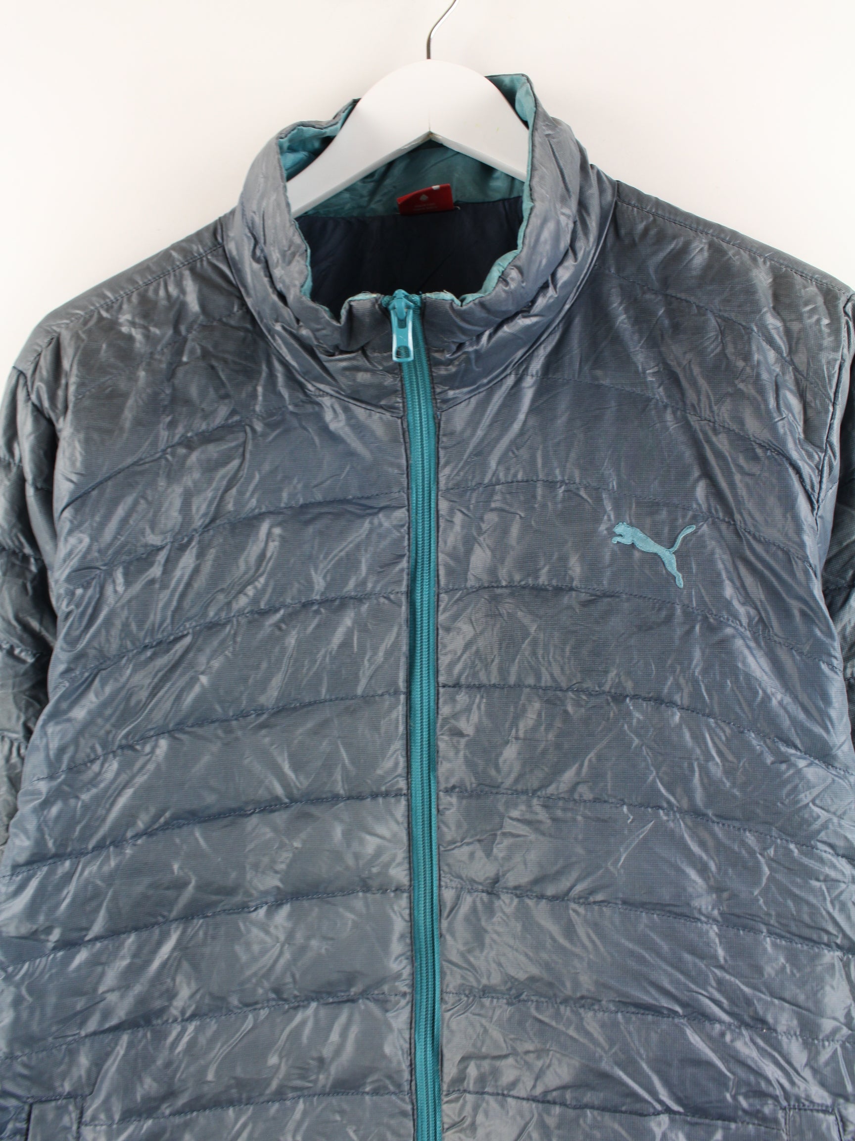 Pleasant jacket from the Puma label in size M. It is made of synthetic material and is available in gray.