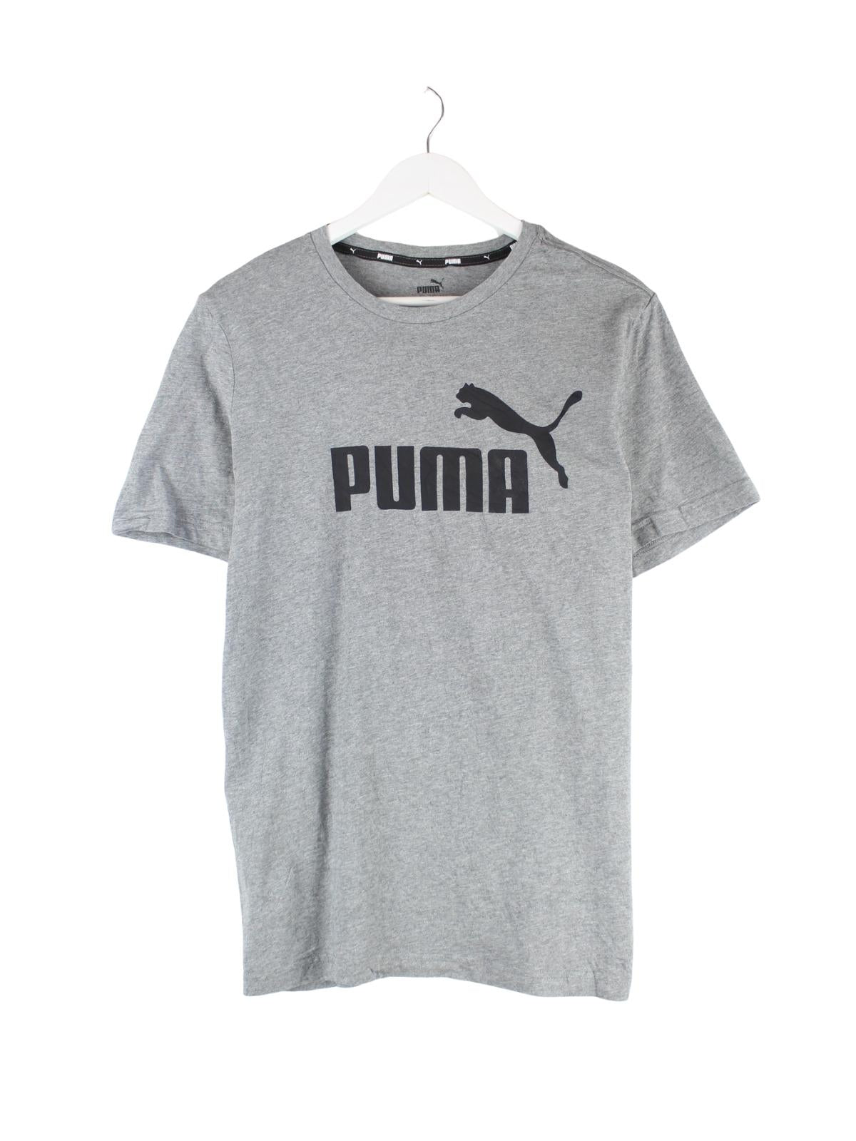 T-Shirt aus dem Hause Puma in Größe M. Es ist aus Baumwolle hergestellt und in Grau lieferbar. Mit seltenem Logo Print.