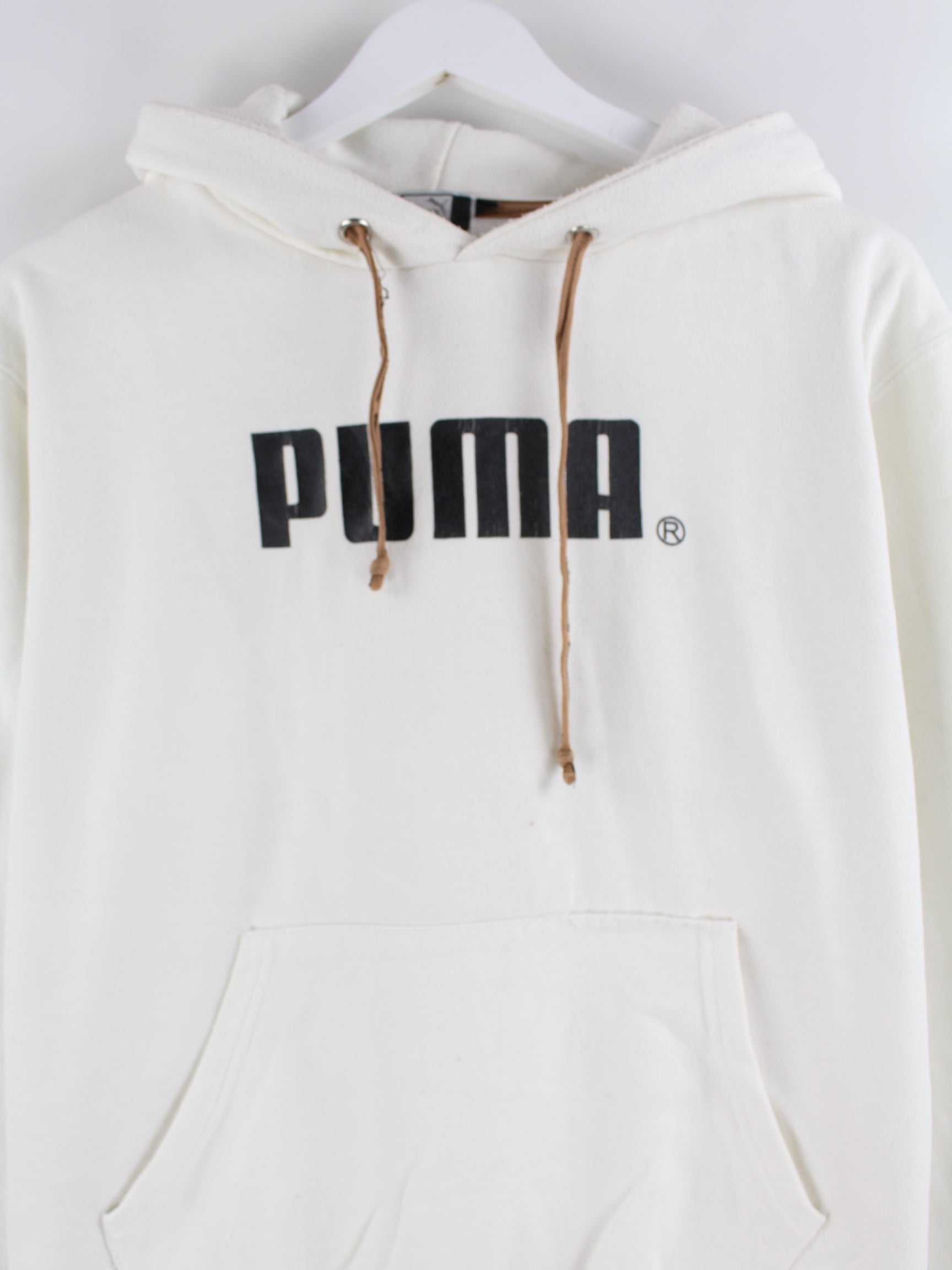 Hoodie from the Puma label in size M. It is made from a cotton blend and is available in white. With rare print.