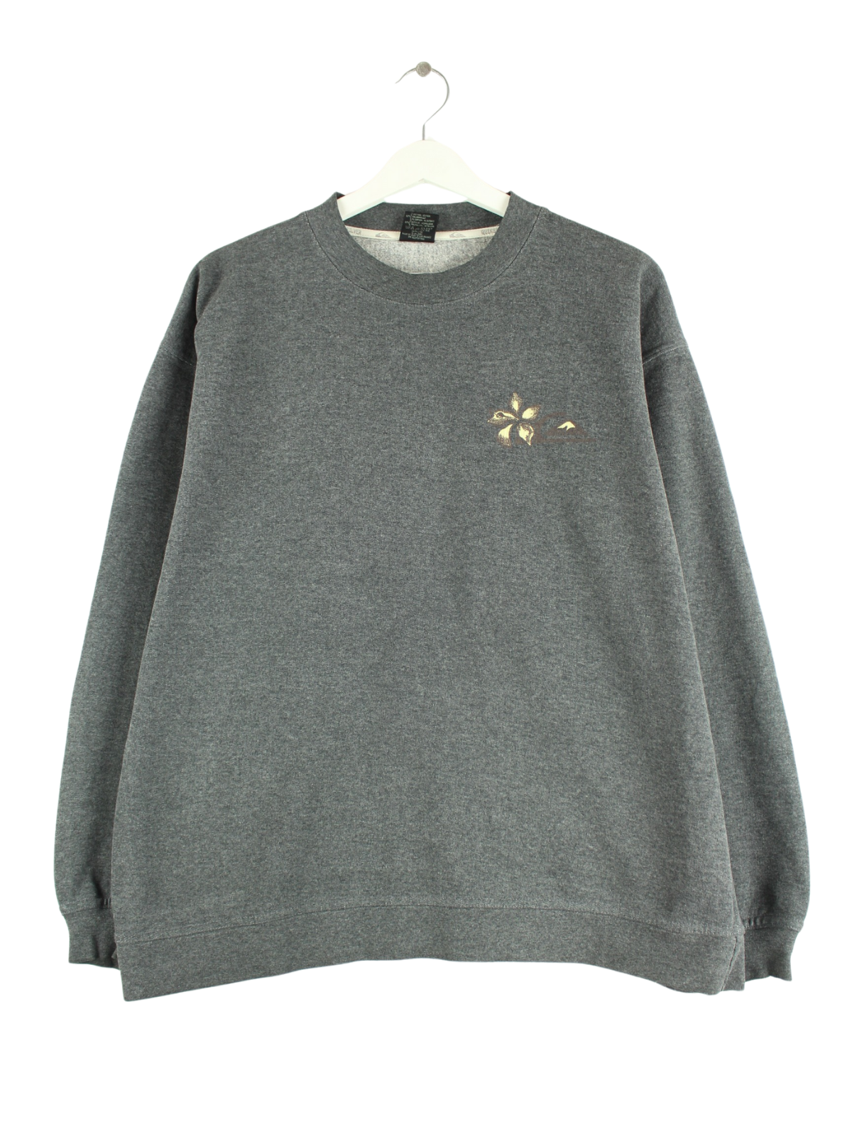 Sweater from the label Quiksilver in size M from the 90's. It is made from a cotton blend and is available in grey. With a chic Hawaii print.