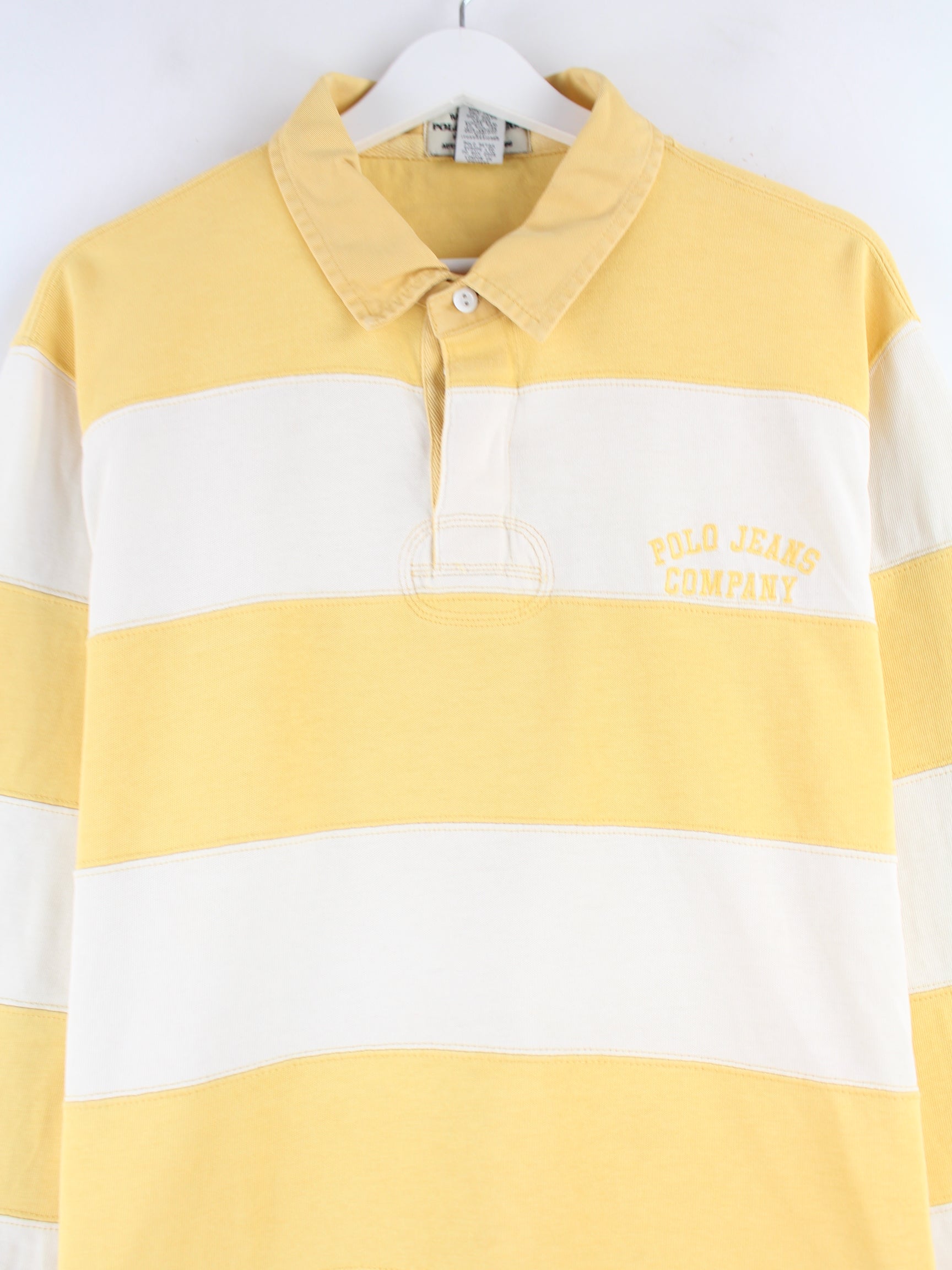 Ralph Lauren 00s Striped Long Sleeve Polo Yellow L