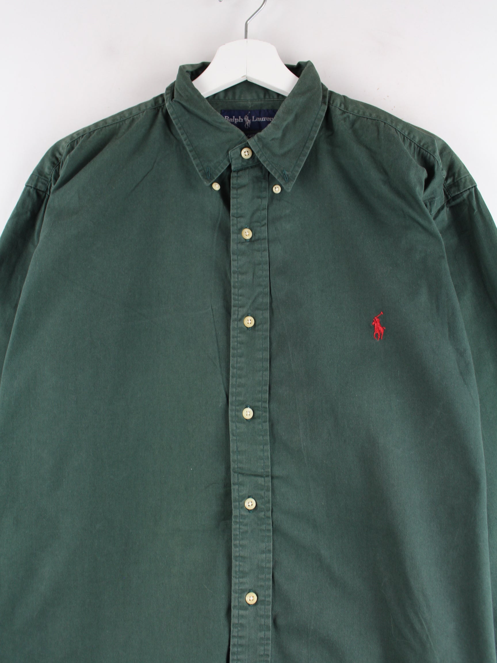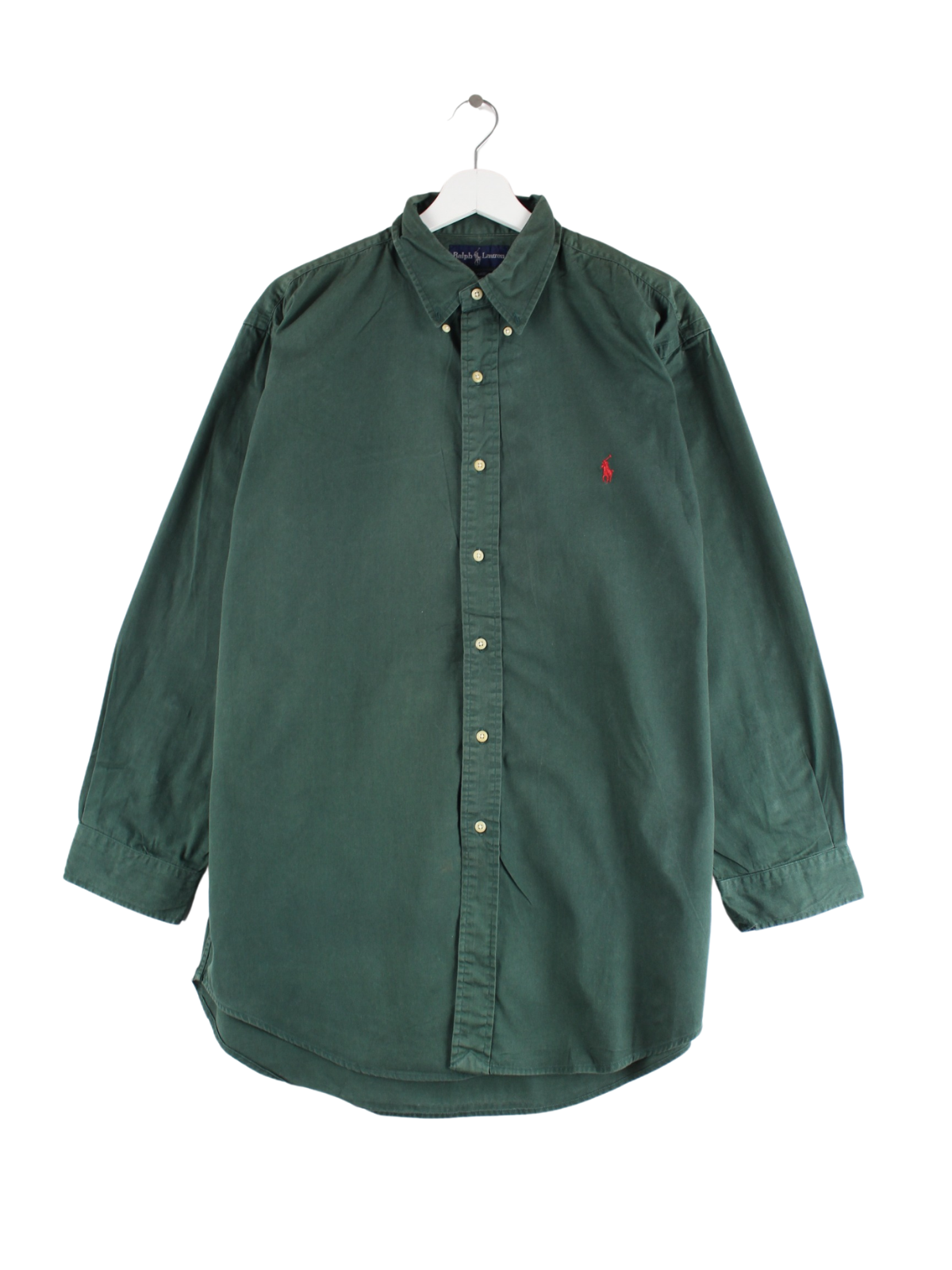 Hemd der Marke Ralph Lauren in Größe L aus den 90'ern. Es ist aus Baumwolle angefertigt und in Grün in Stock.