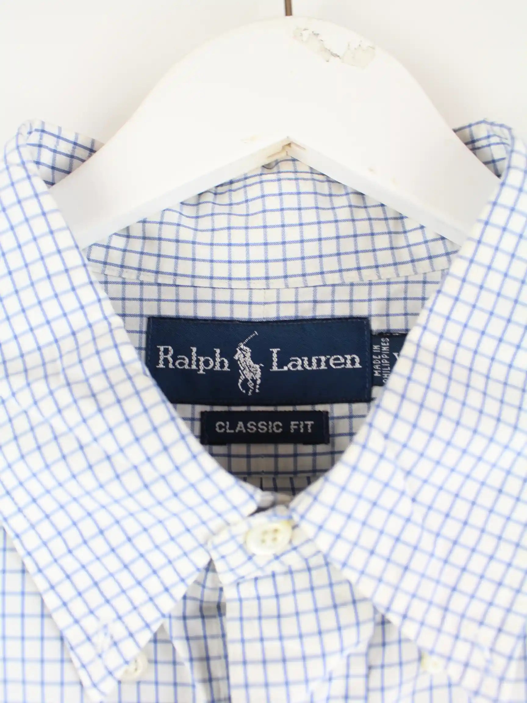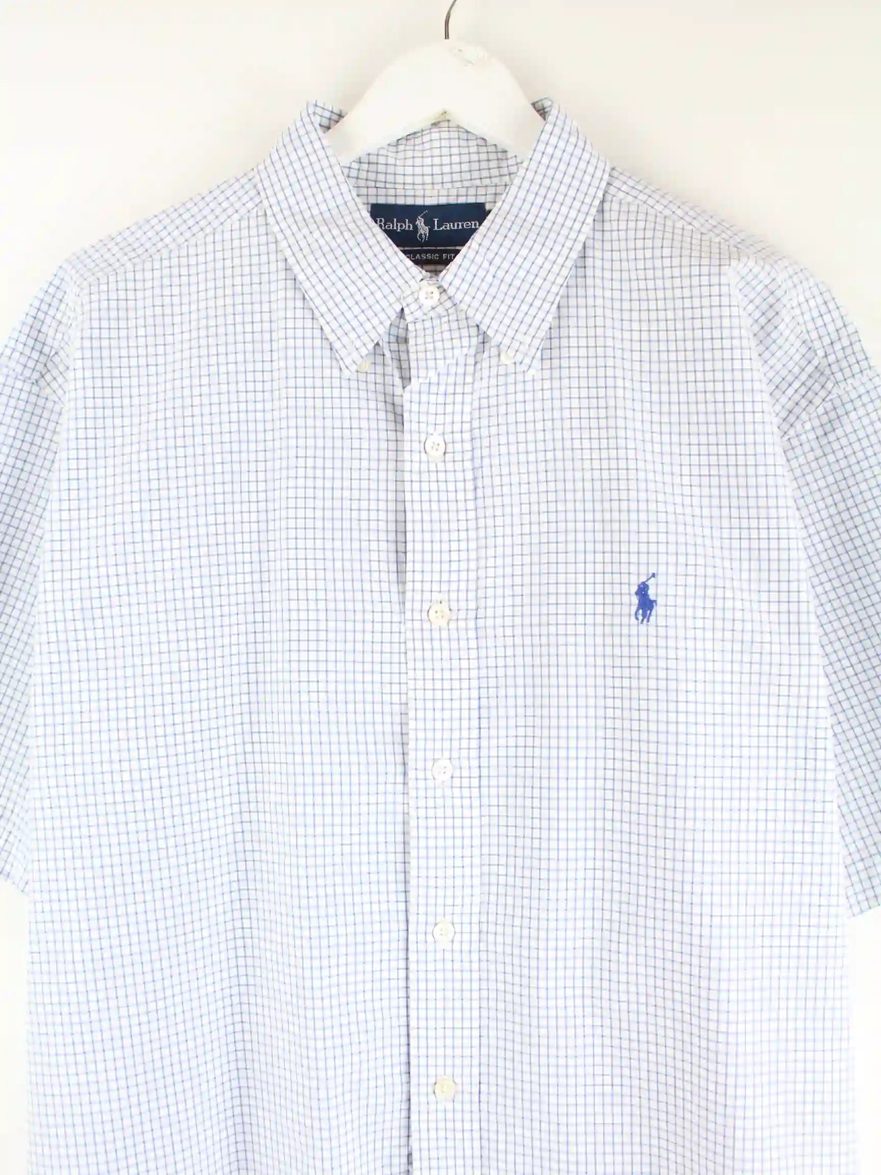 Ralph Lauren 90s Vintage Check Kurzarm Hemd Blau XL