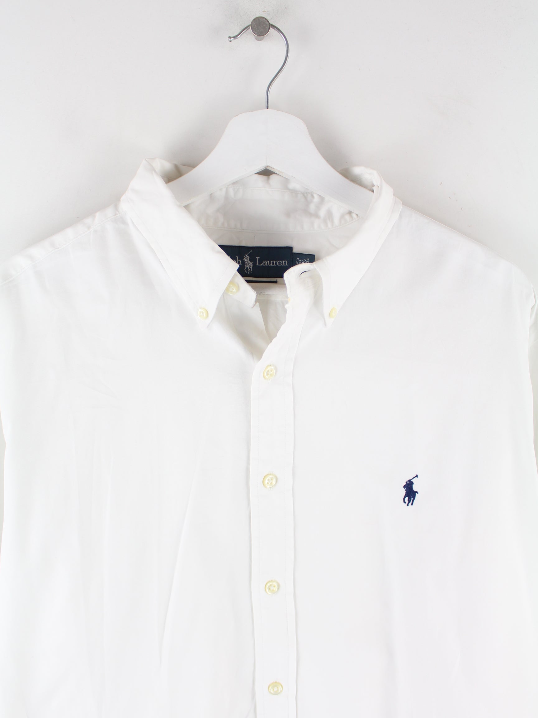White shirt from the Ralph Lauren label from the 90's in size XL. It is made of cotton and in very good condition.
