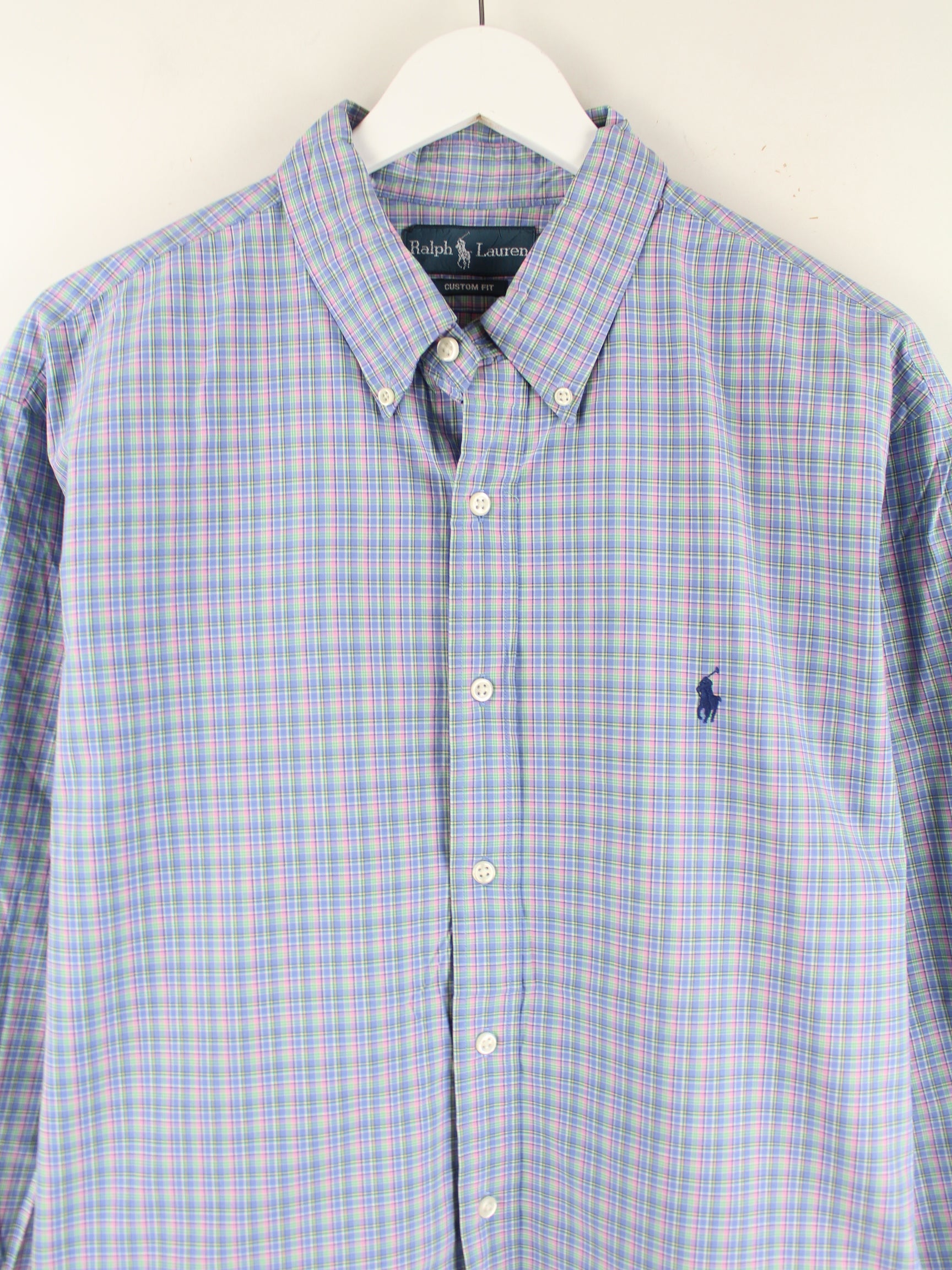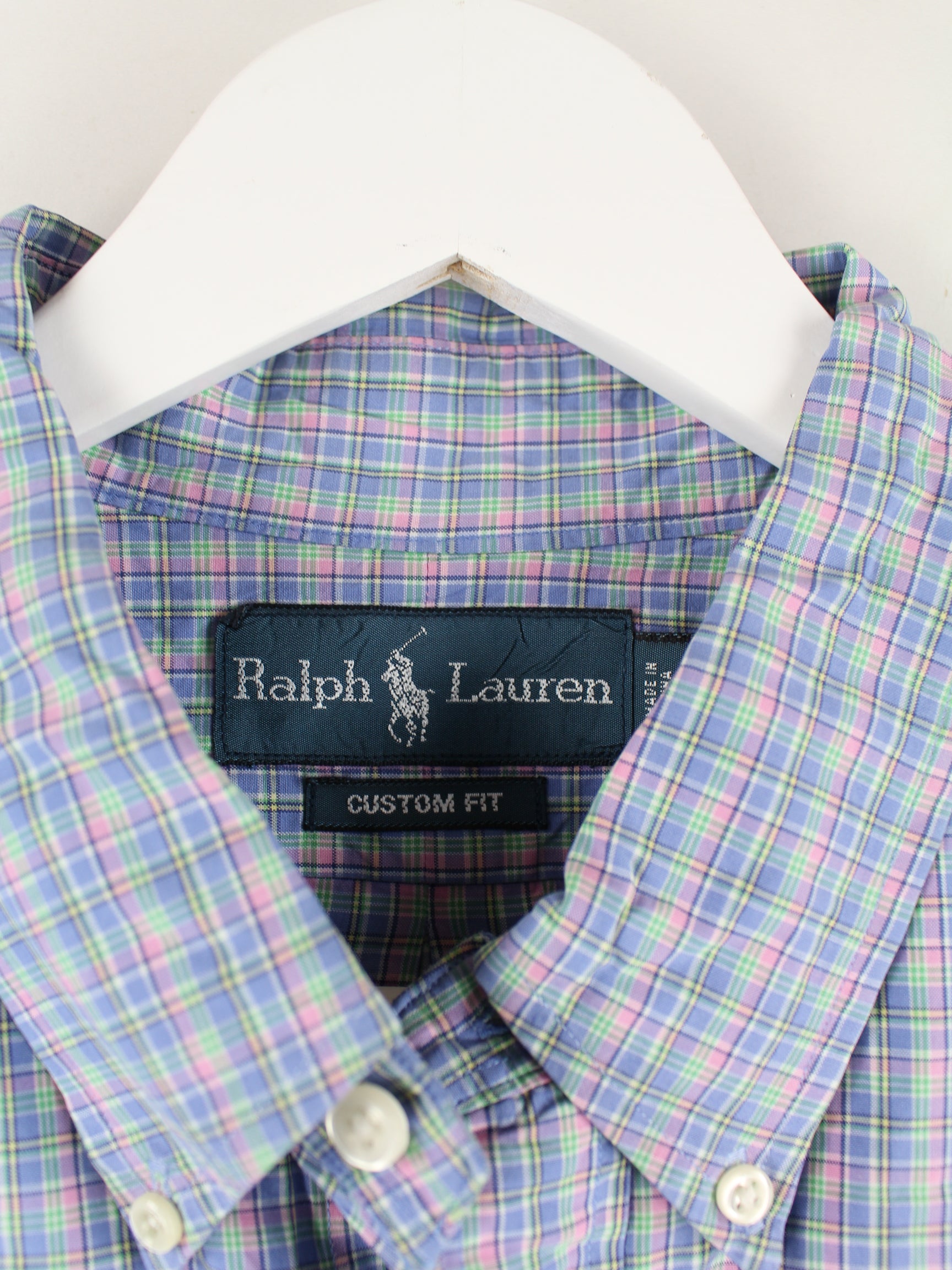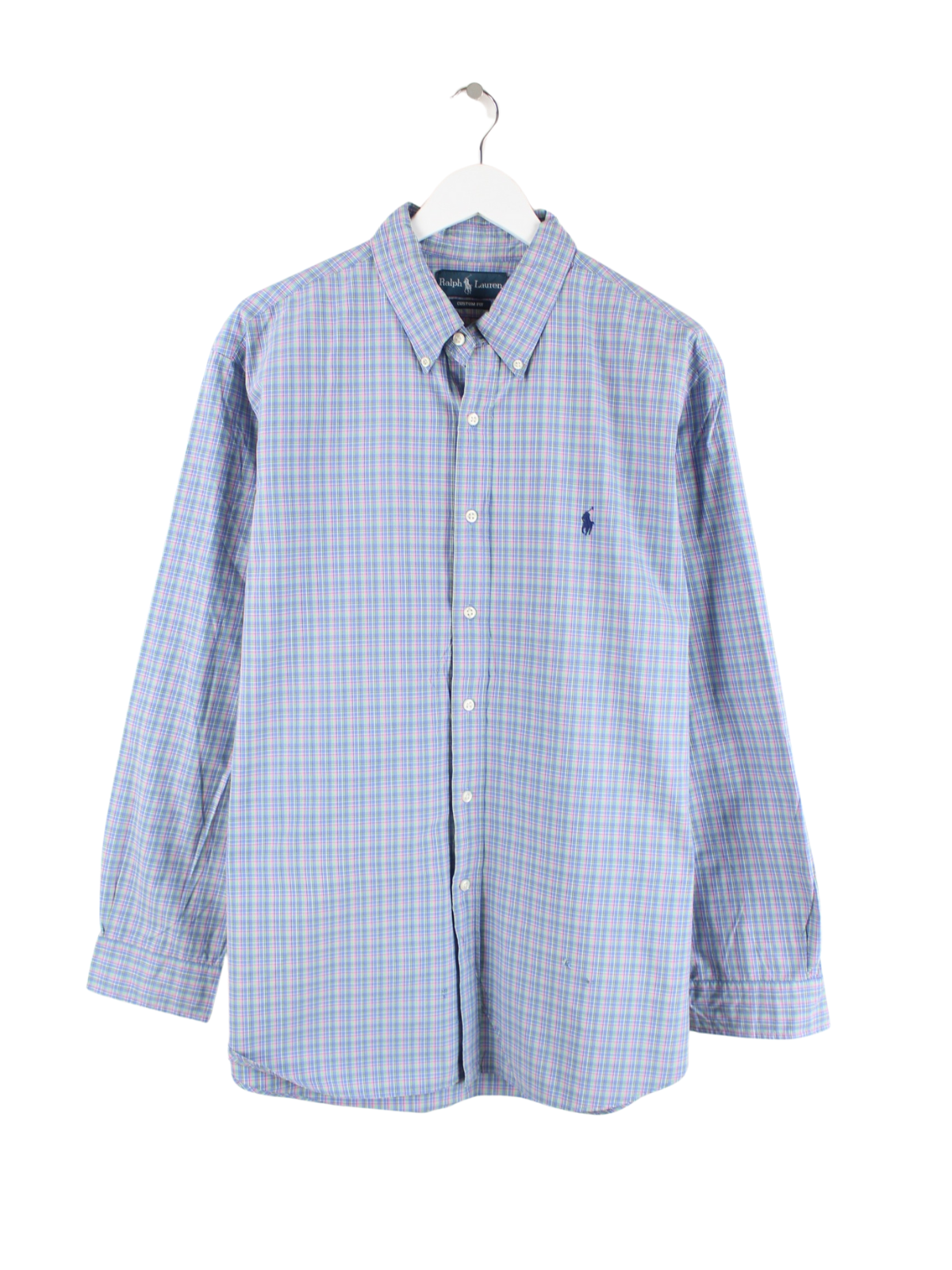 Ralph Lauren 90s Vintage Custom Fit Checked Hemd Blau L