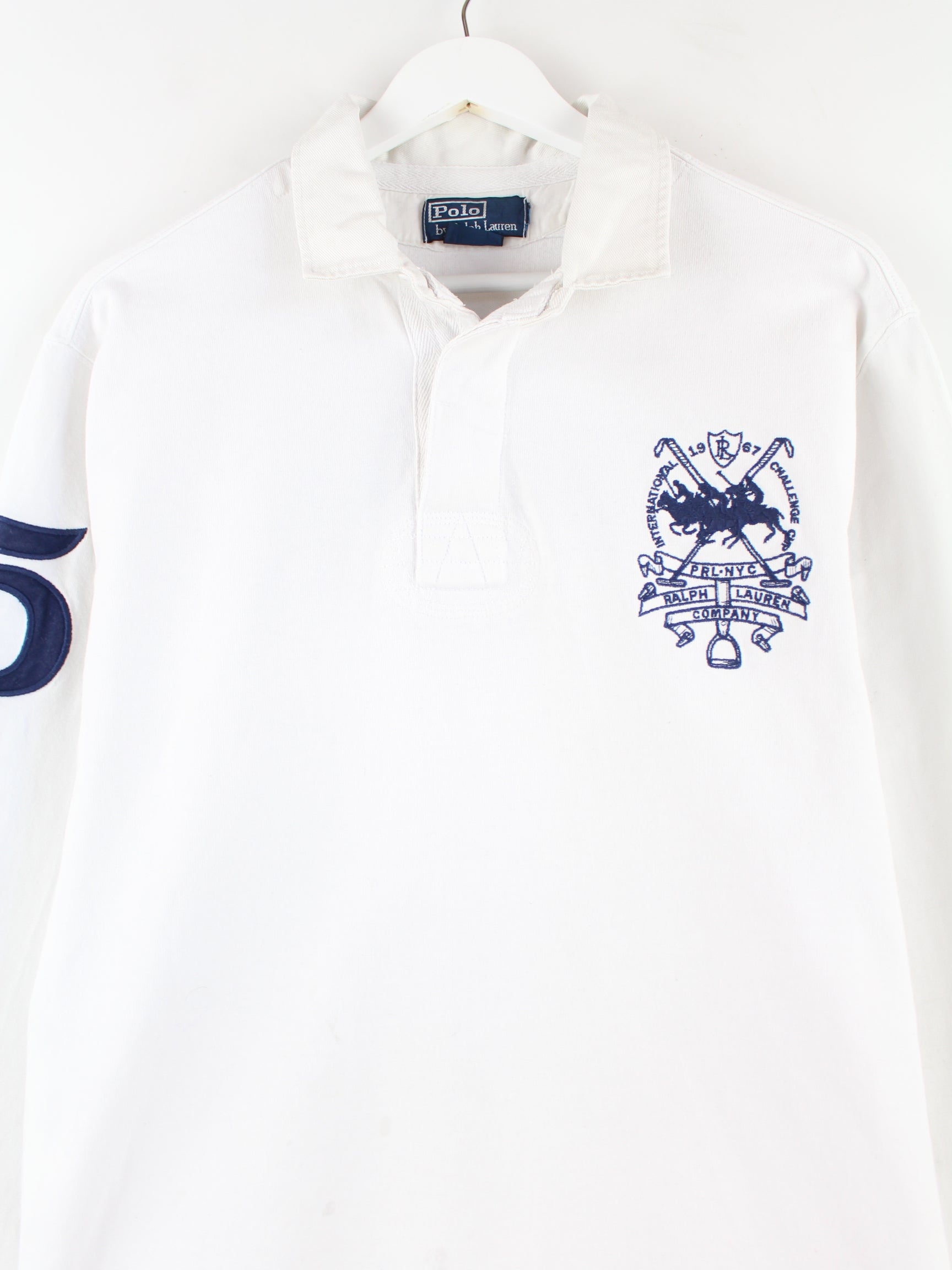 Ralph Lauren 90s Vintage Embroidered Long Sleeve Polo White L