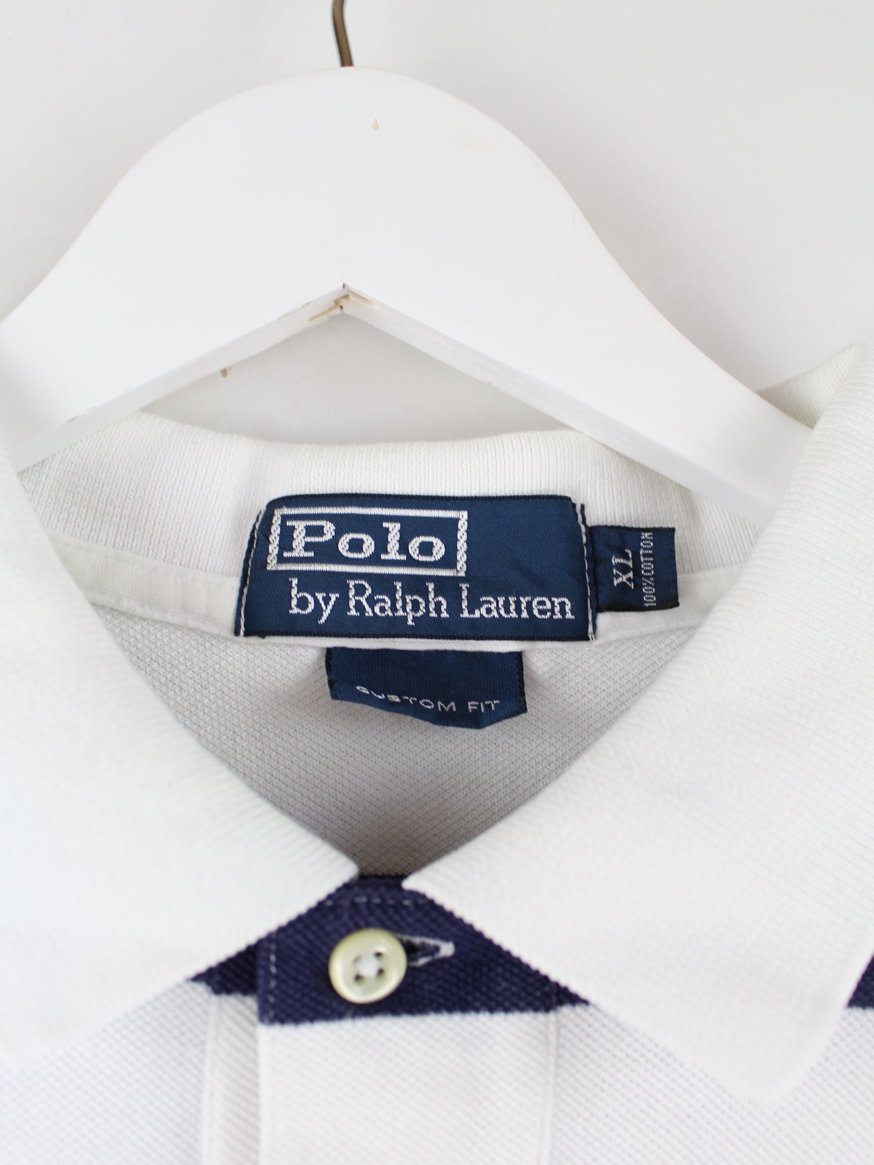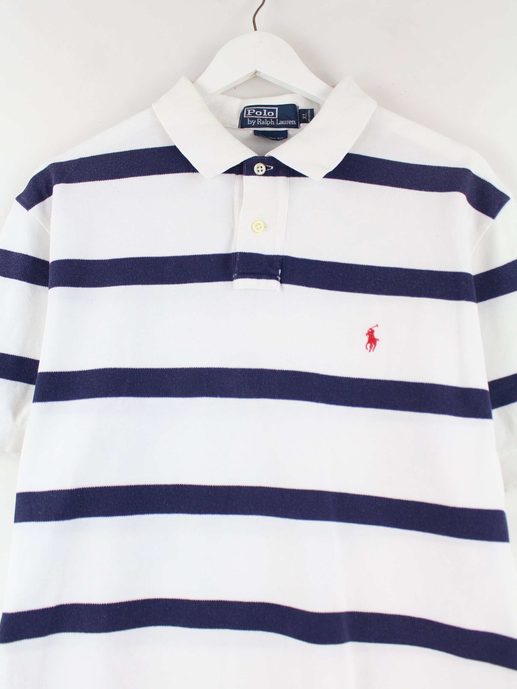Polo shirt from Ralph Lauren in size XL from the 90's. It is made of cotton and available in white.