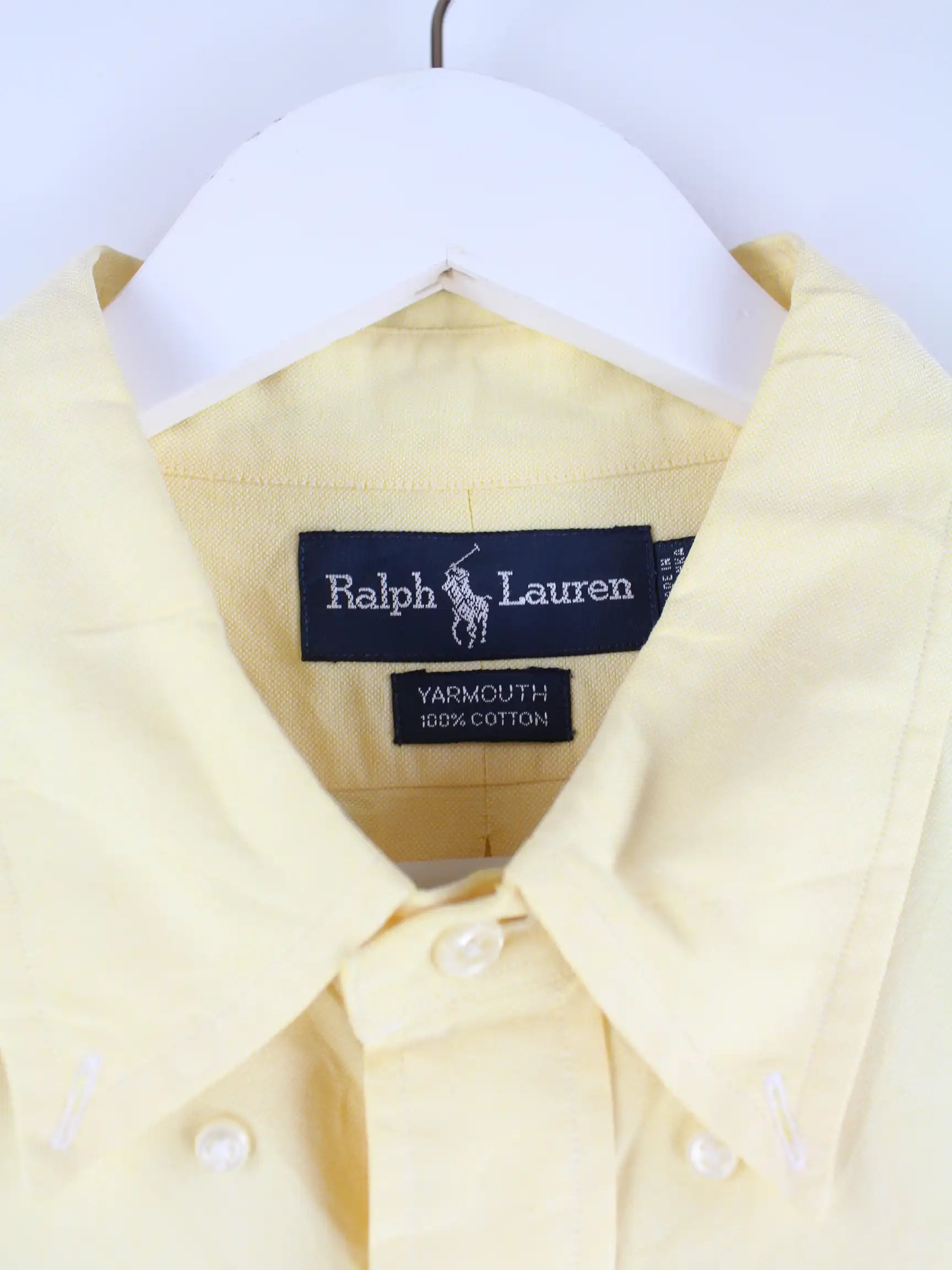 Vintage Hemd des Labels Ralph Lauren in Größe XXL aus den 90'ern. Es ist aus Baumwolle gefertigt und in Gelb in Stock.