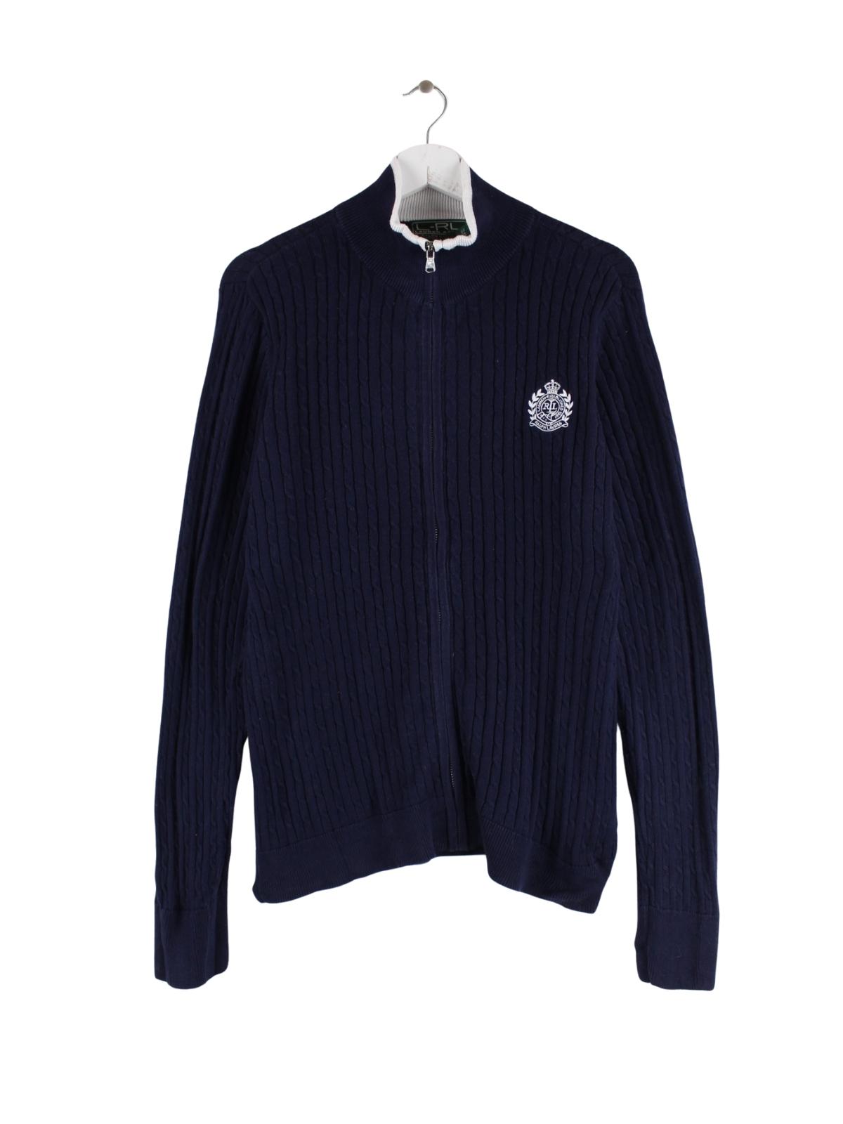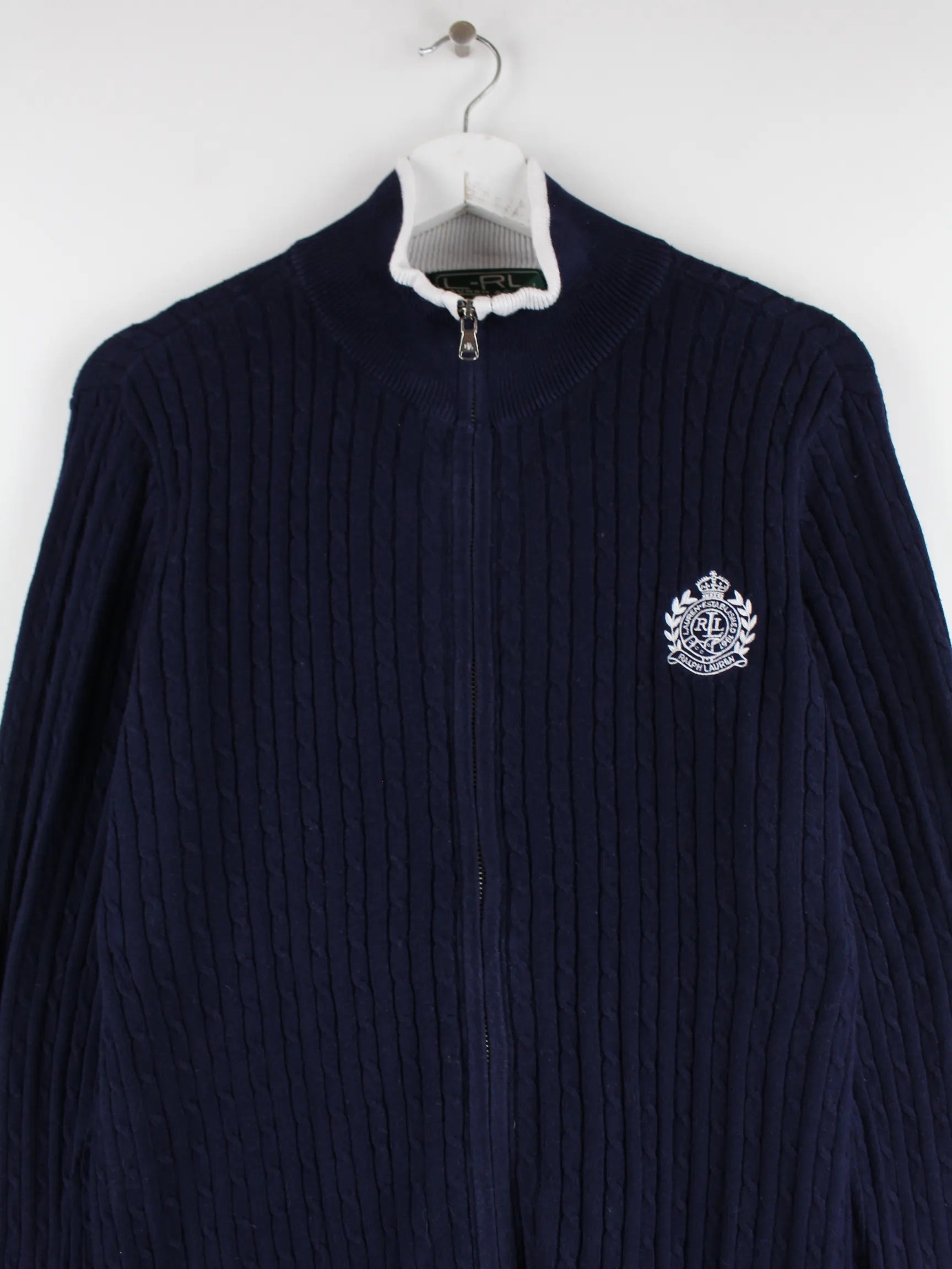 Strickjacke vom Label Ralph Lauren in Größe XL. Sie ist aus Baumwolle gefertigt und in Blau auf Lager.