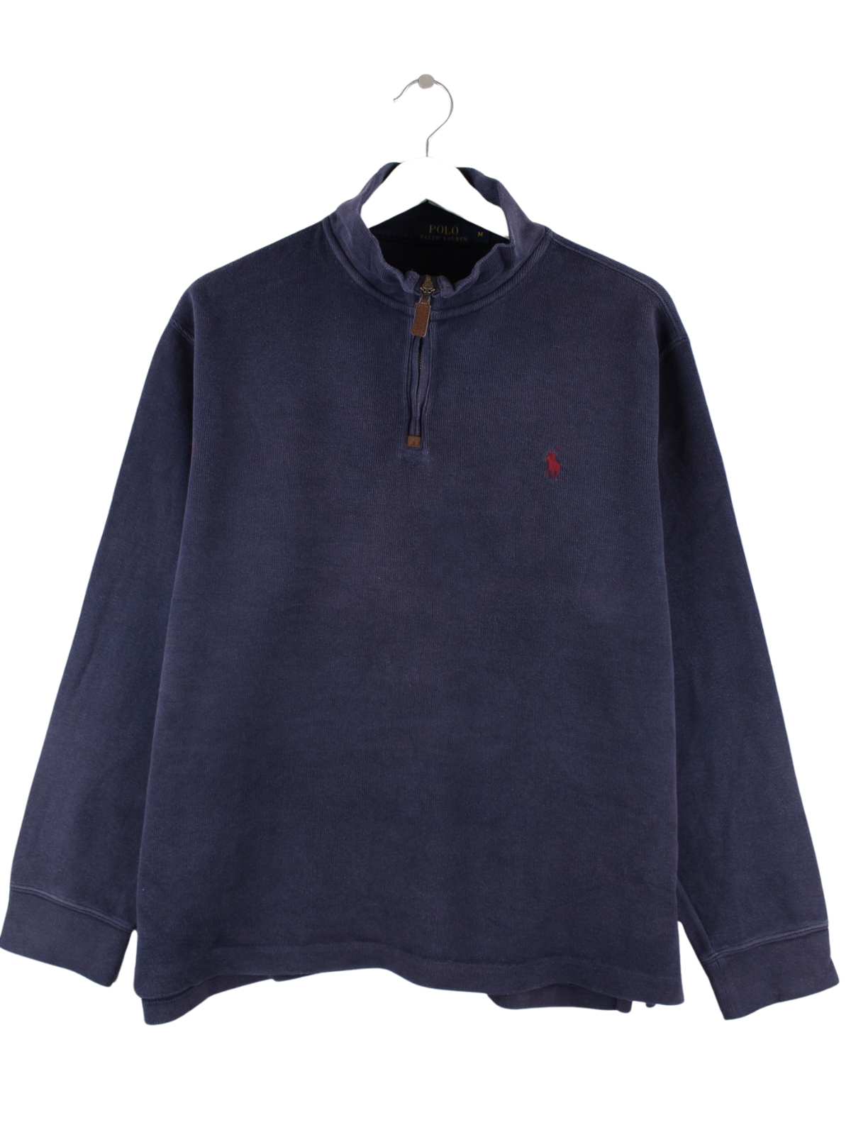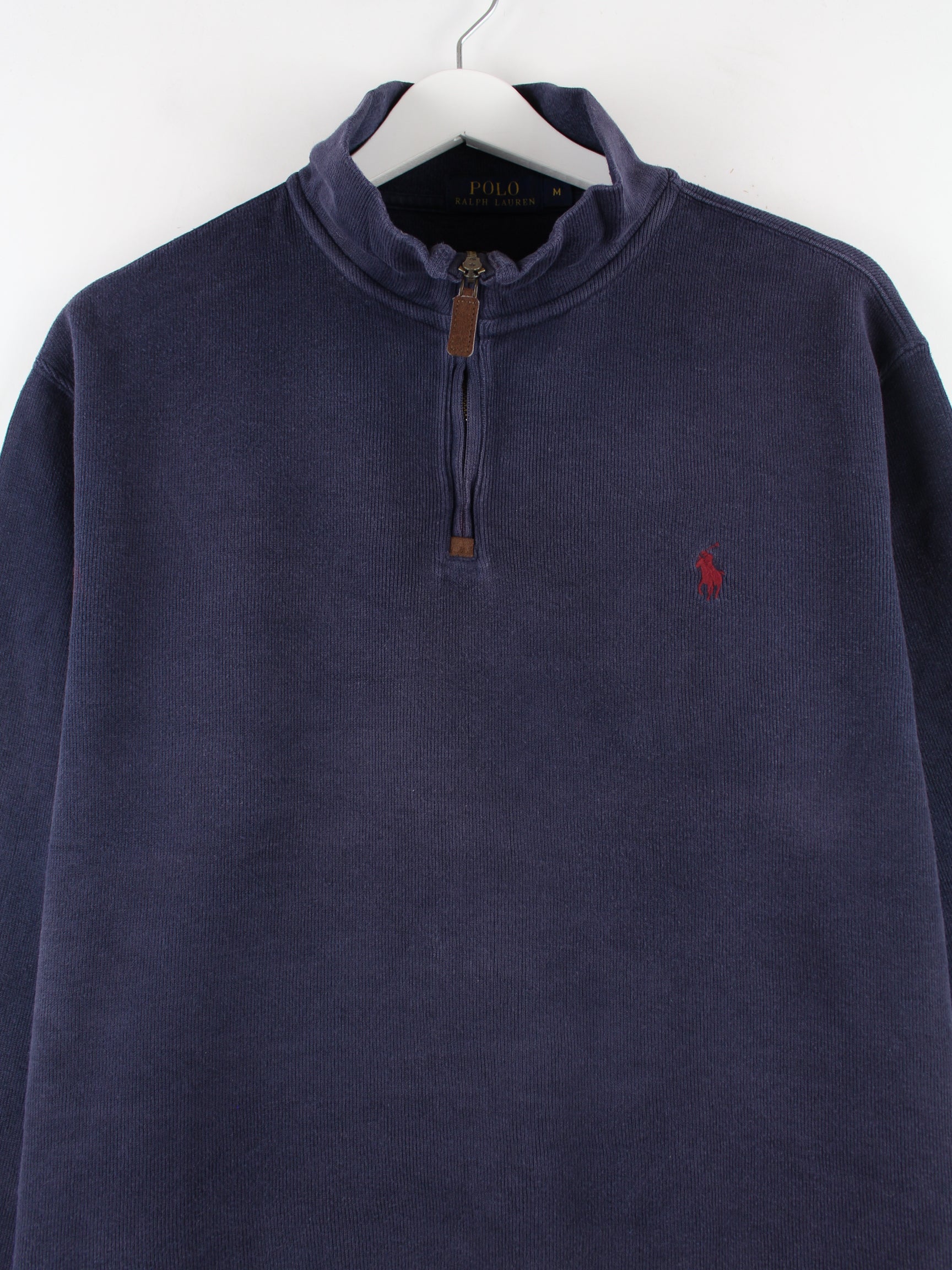 Blue sweater with short zip from the brand Ralph Lauren in size M. It is made of cotton and in very good condition in stock.