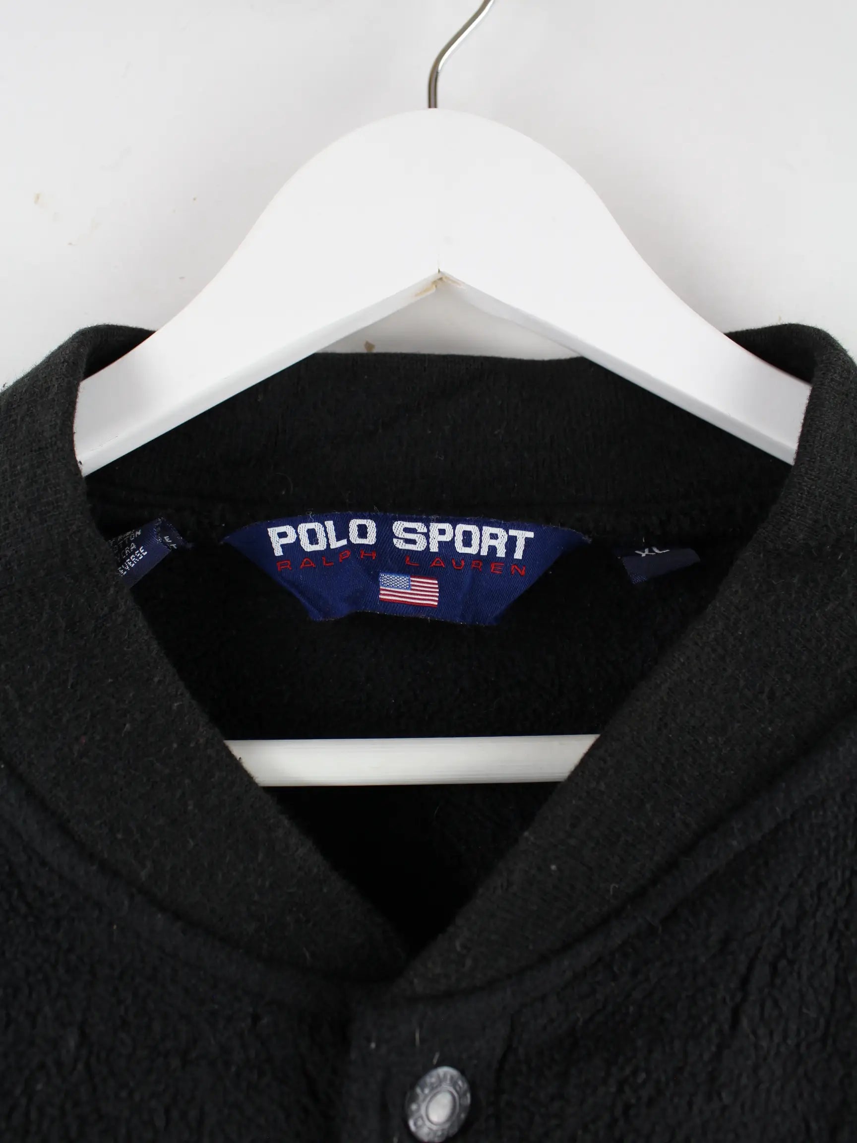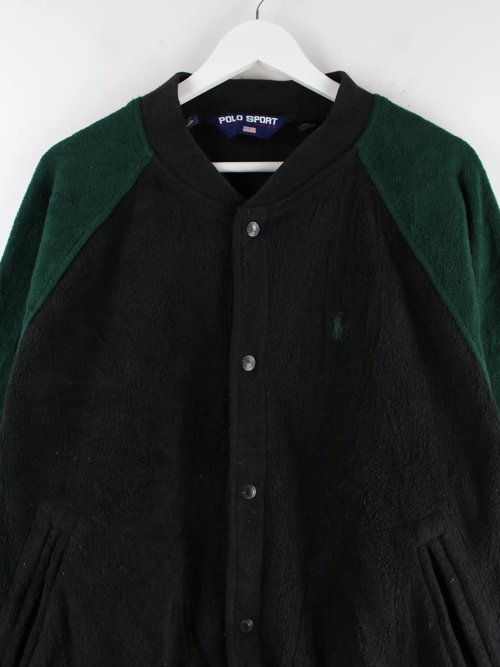 Ralph Lauren Polo Sport 90s Vintage Varsity Fleece Jacke Schwarz XL