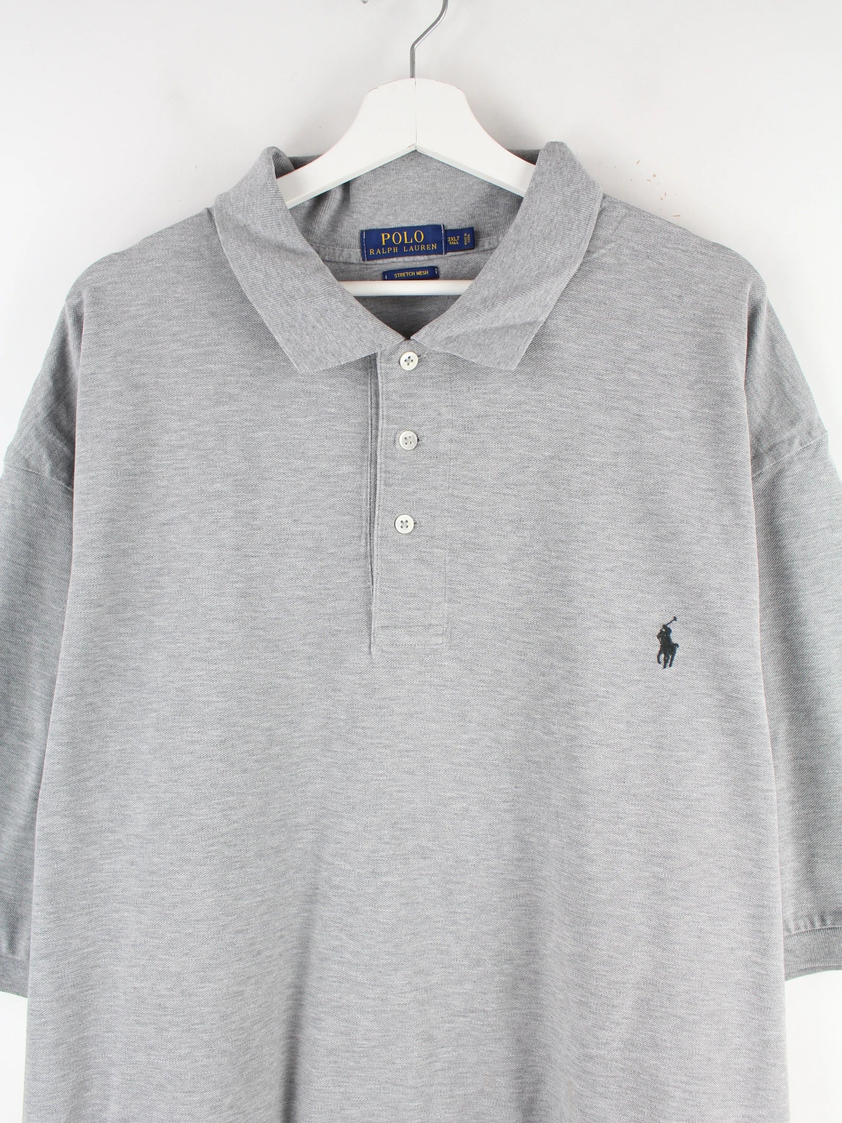 Graues Poloshirt von Ralph Lauren in Größe 4XL. Es ist aus Baumwolle produziert und in sehr gutem Zustand in Stock.