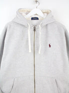 Grauer Hoodie mit durchgehendem Reißverschluß von Ralph Lauren in Größe M. Er ist aus einer Baumwollmischung angefertigt und in sehr gutem Zustand zu haben.
