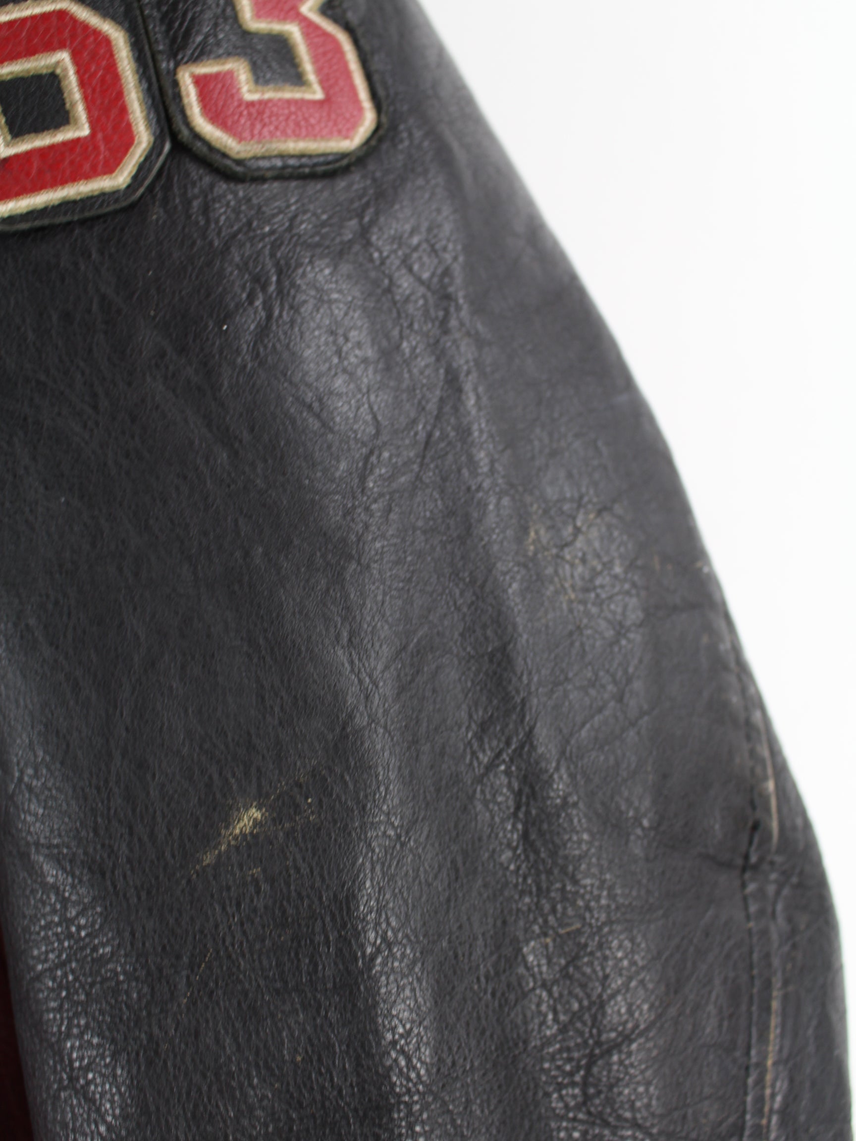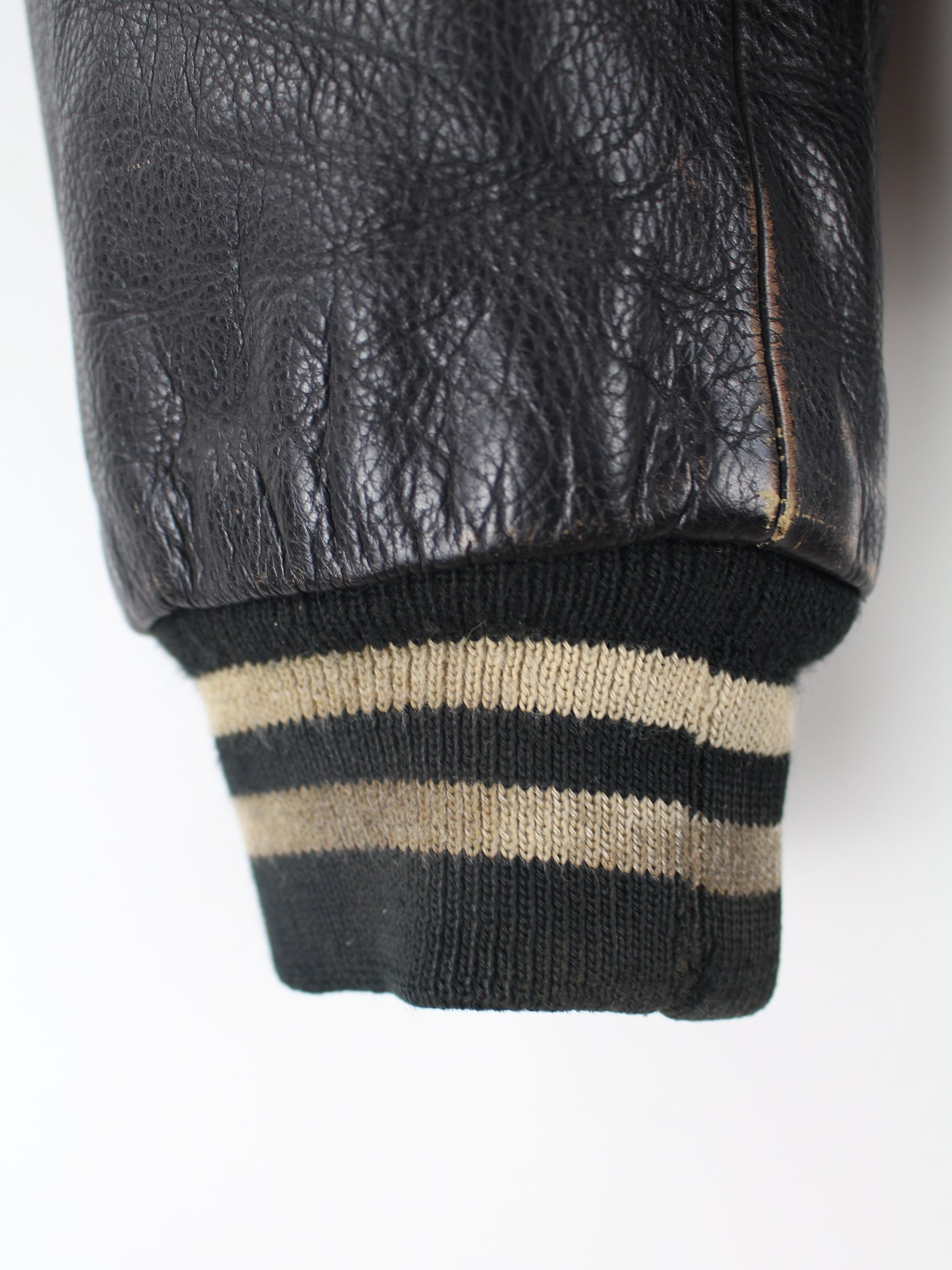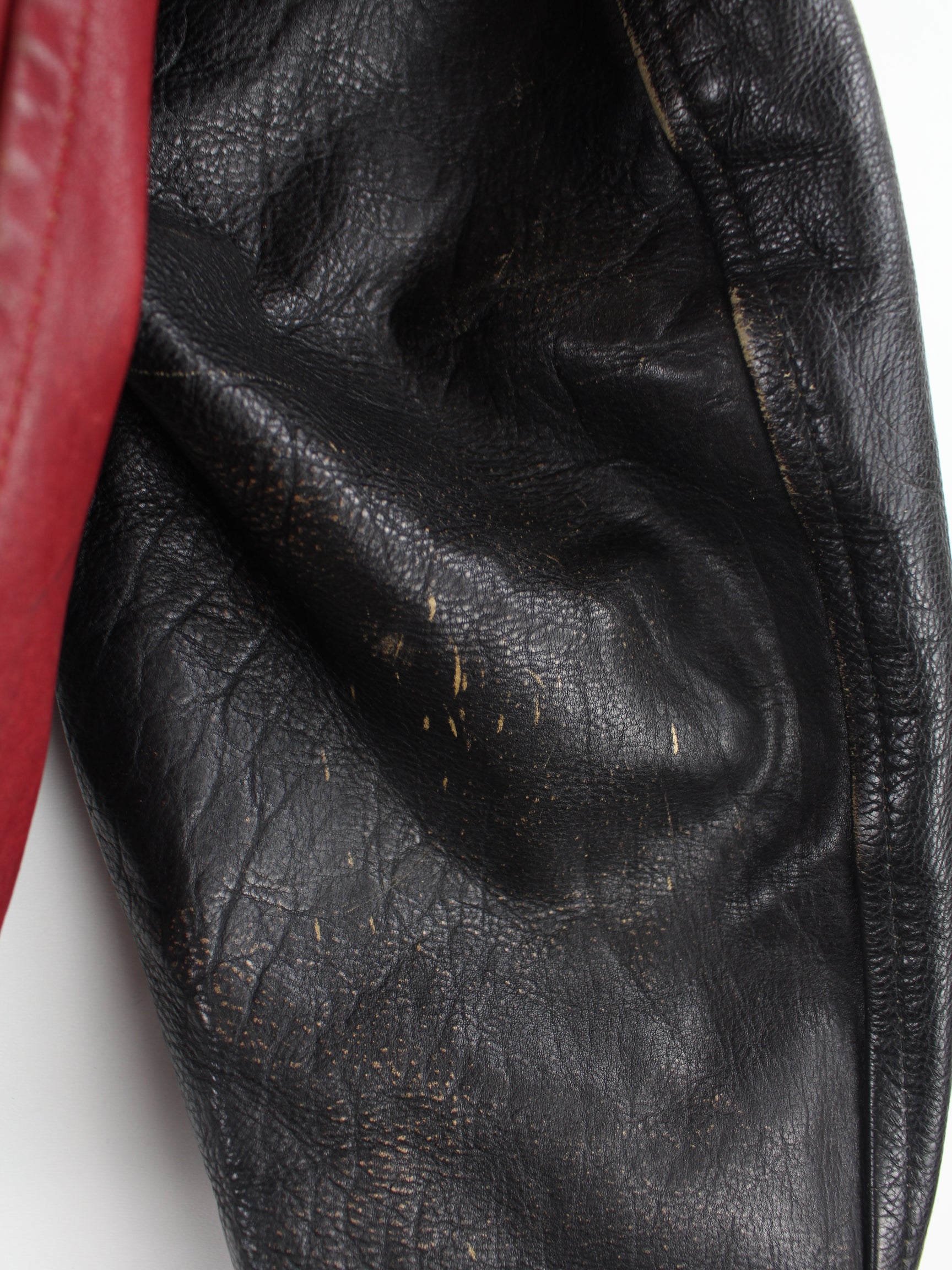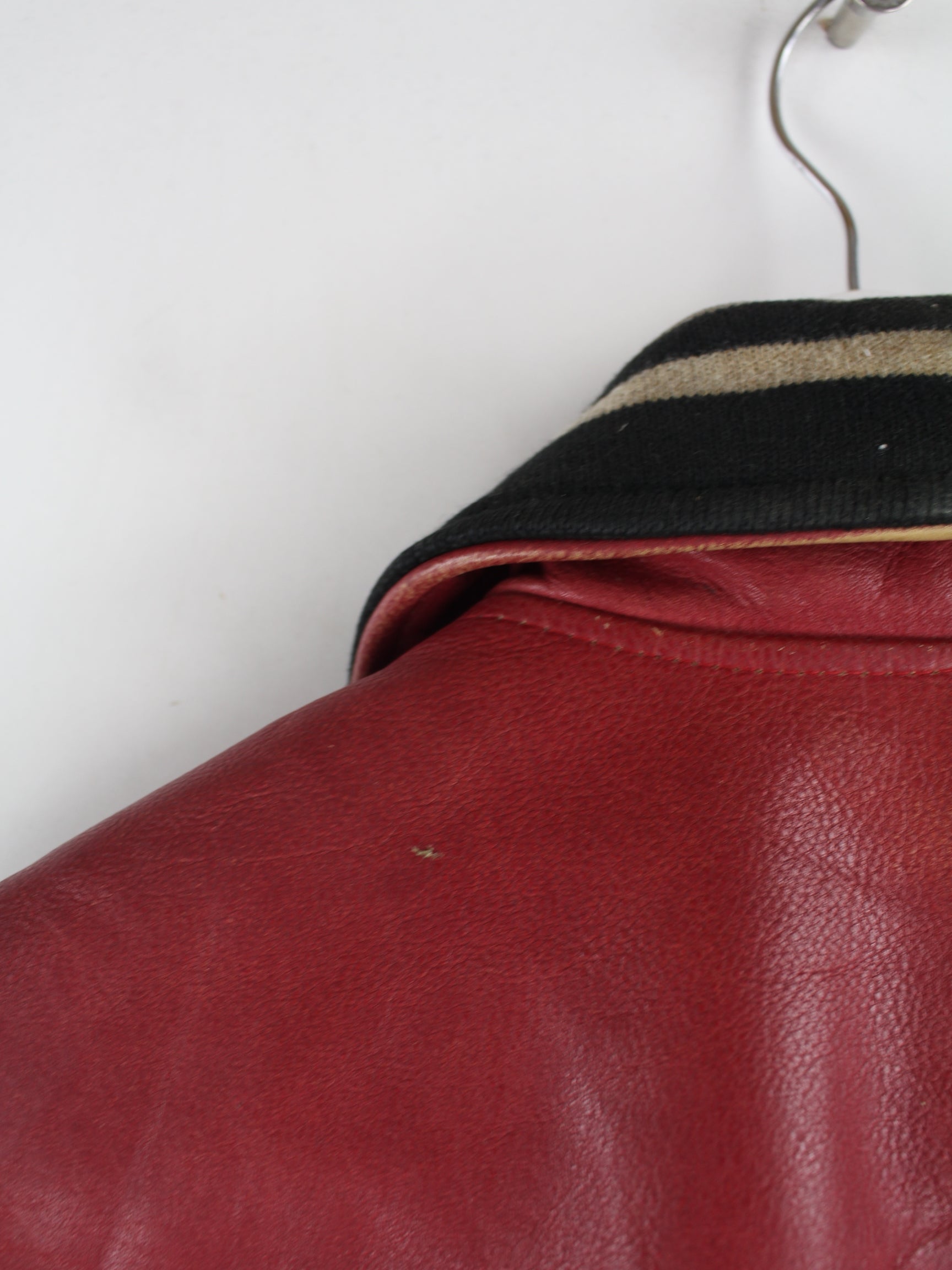 Defects: Wear on leather, a few stains and cuffs and collar slightly discolored (see pictures)