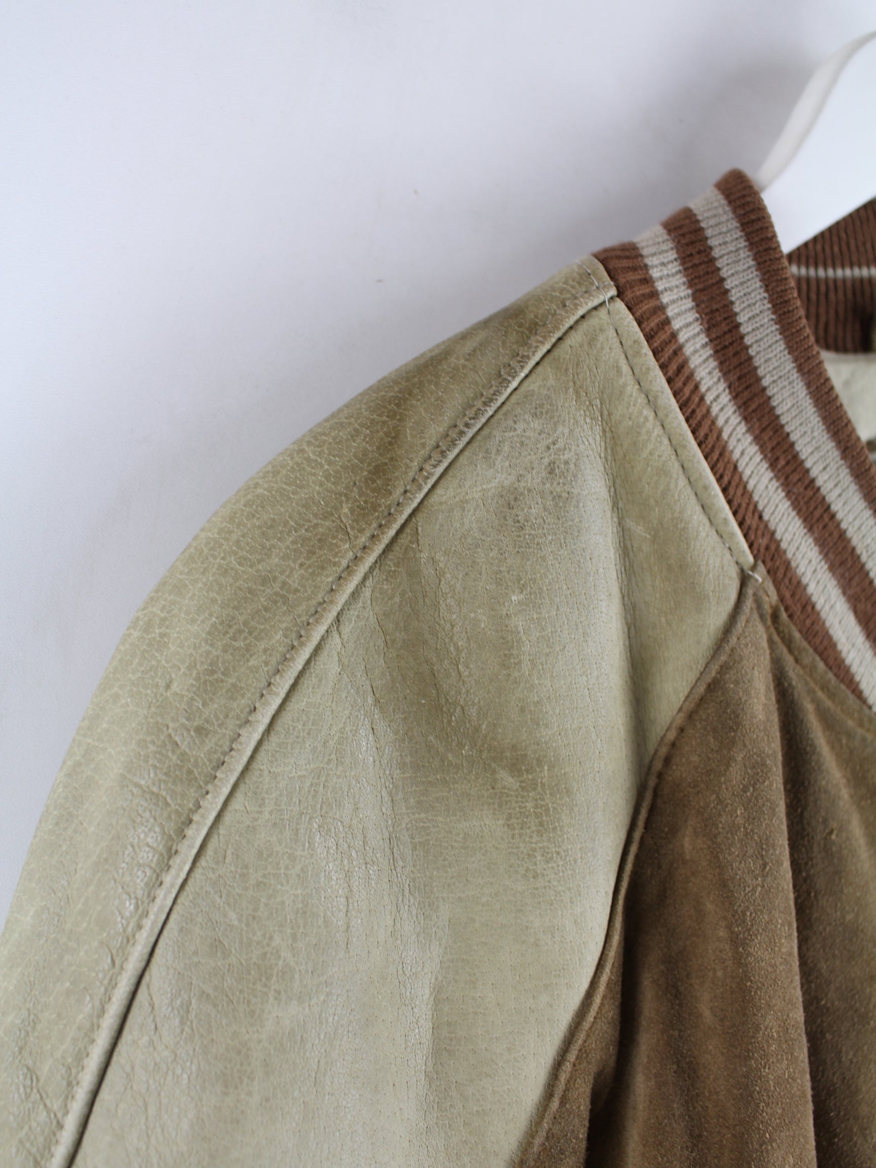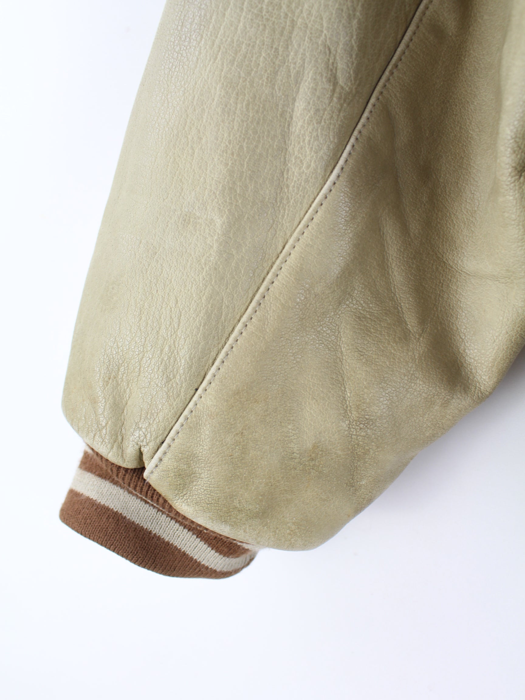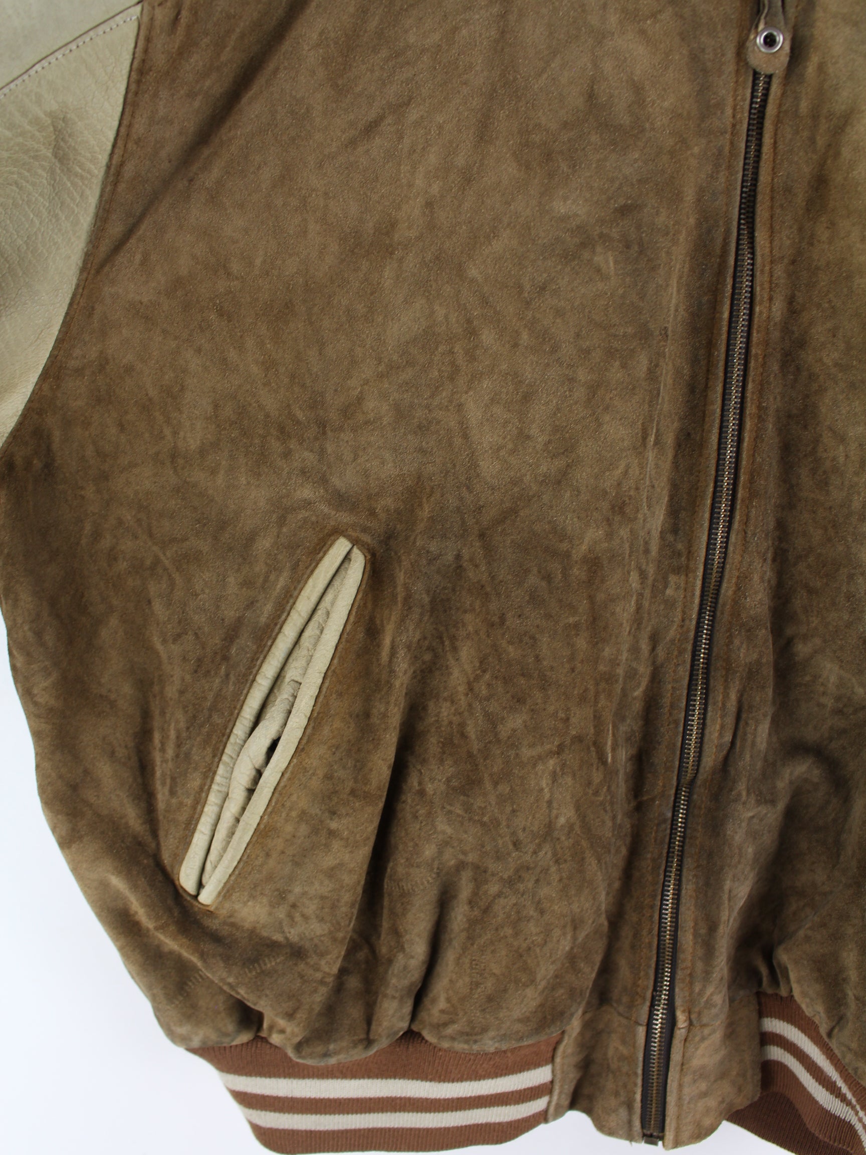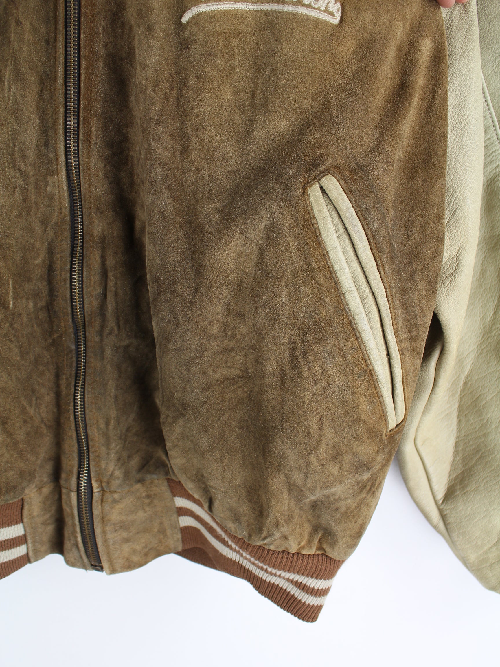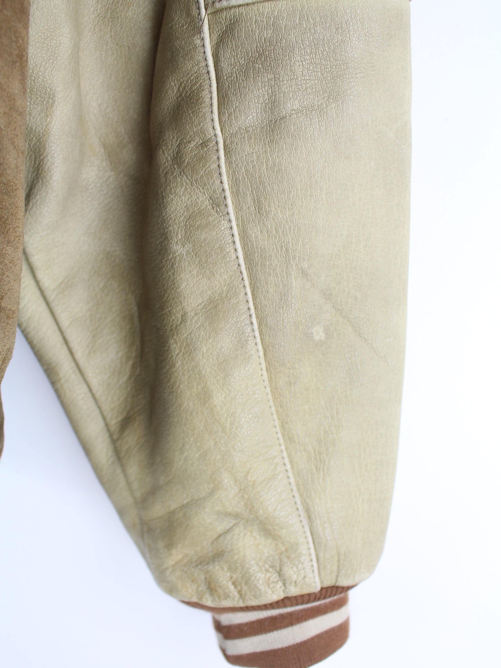 Redskins 90s Vintage Embroidered Leather College Jacket Beige XL