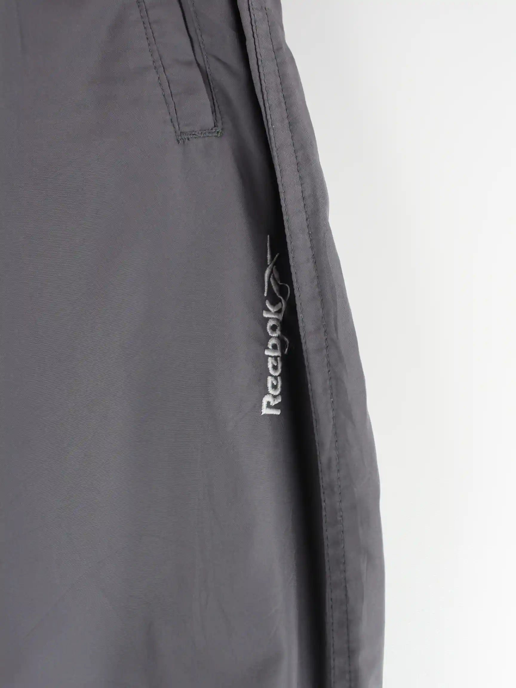 Track Pants aus dem Hause Reebok in Größe M. Sie sind aus Synthetik produziert und in Grau im Bestand.