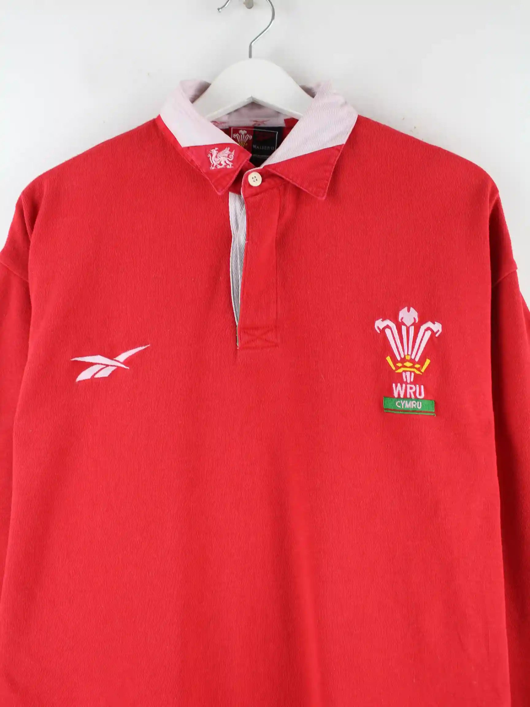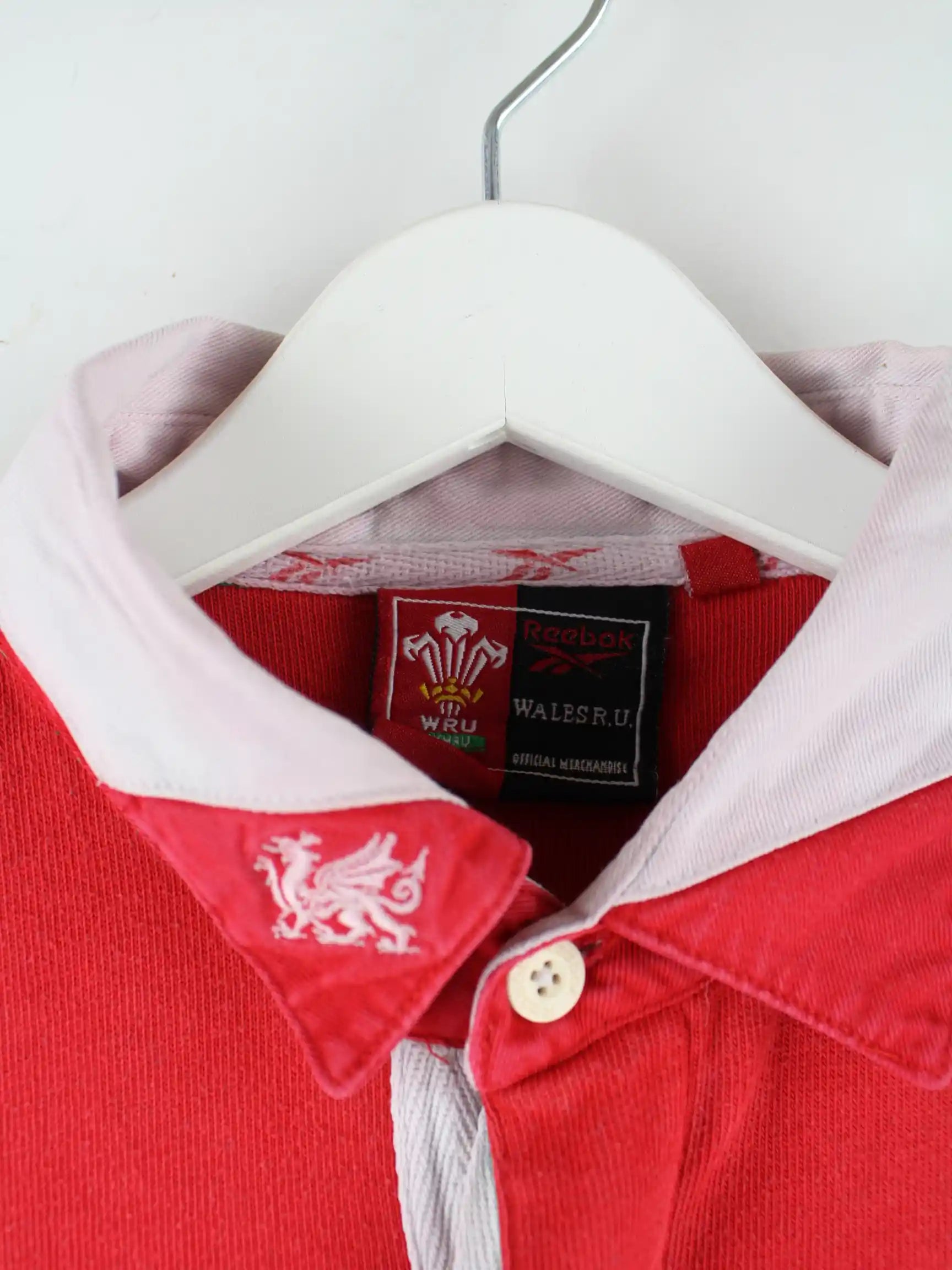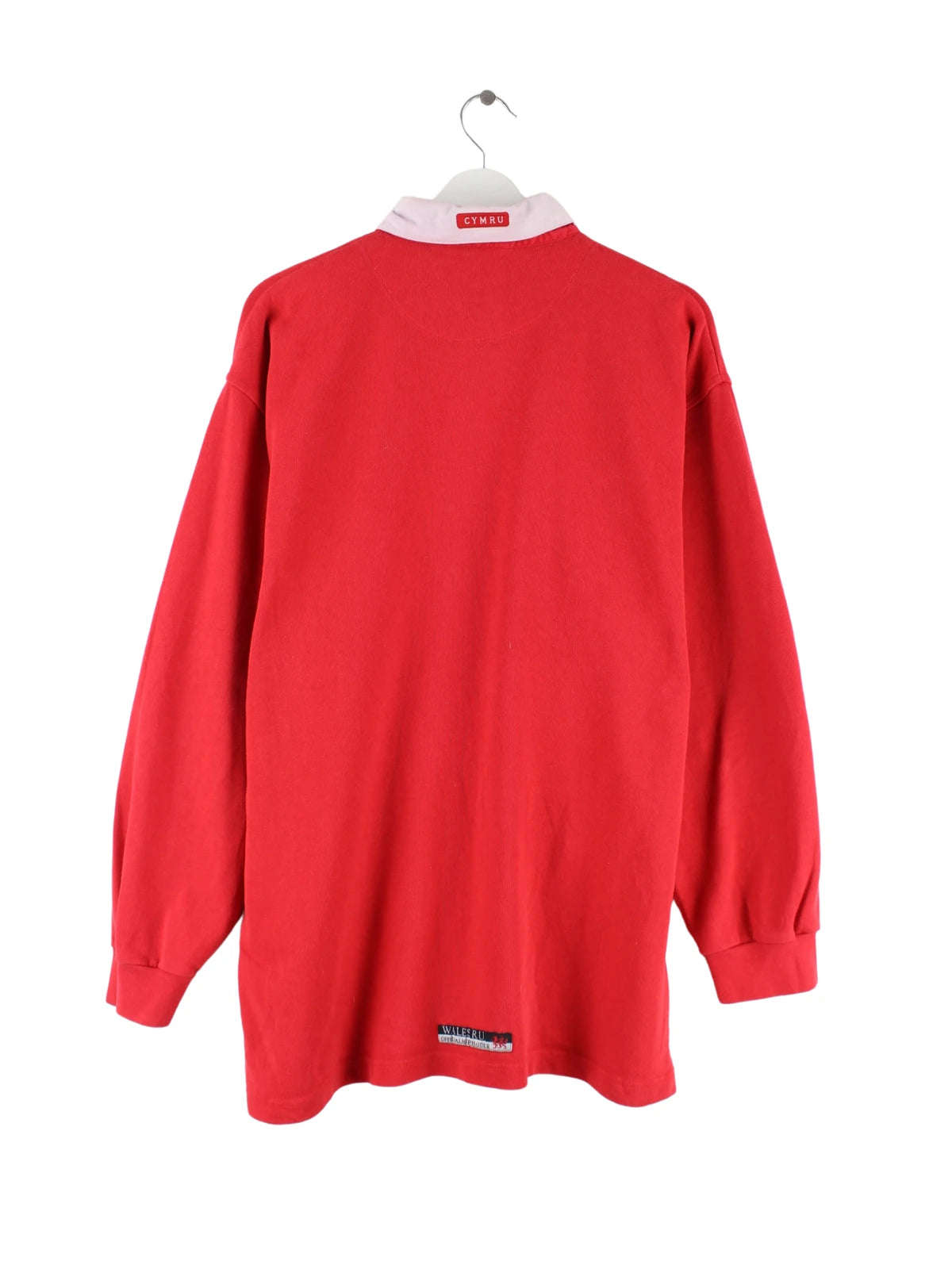 Reebok 90s Vintage Wales Rugby Langarm Polo Rot XXL