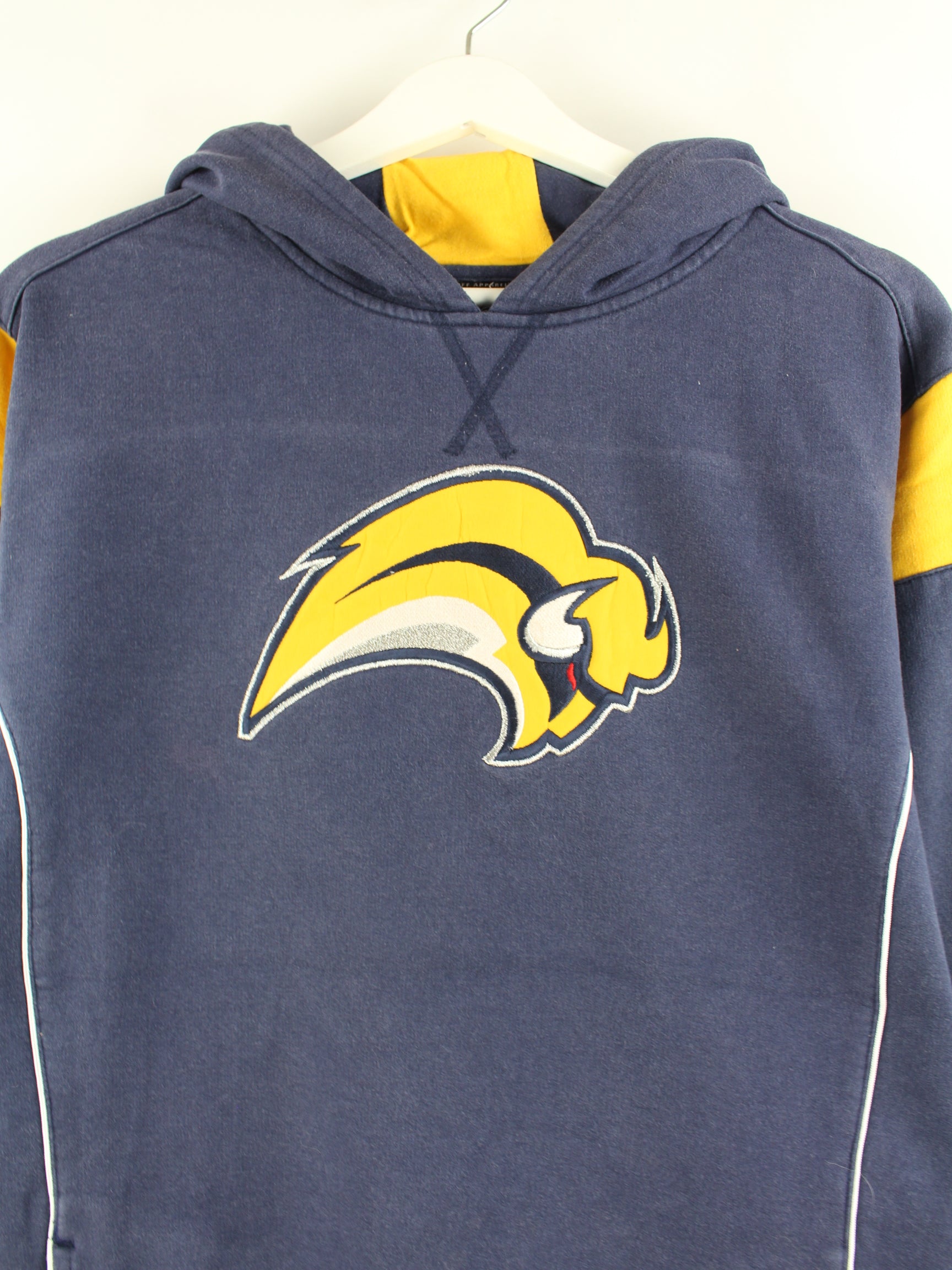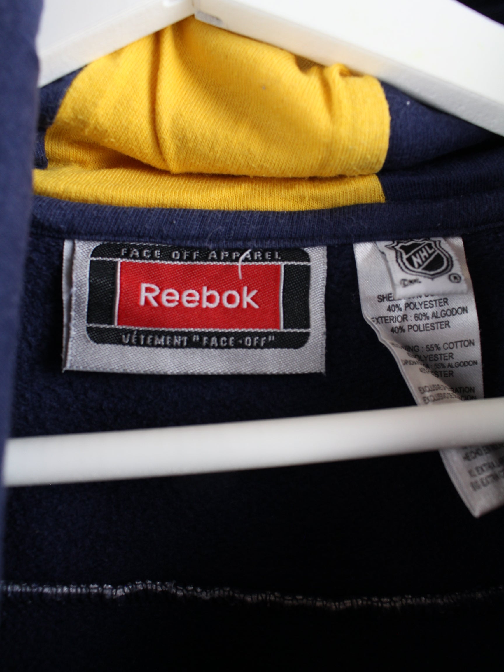 Blue hoodie with embroidered logo from Reebok in size S. It is made from a cotton blend and is available from us in good condition.
