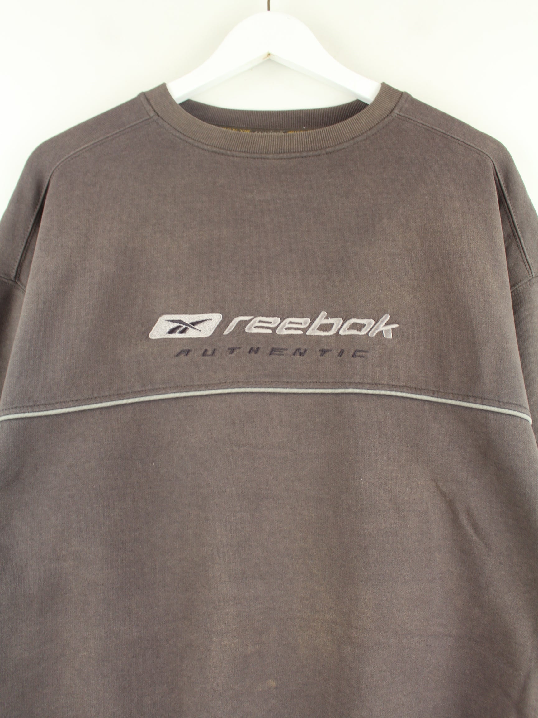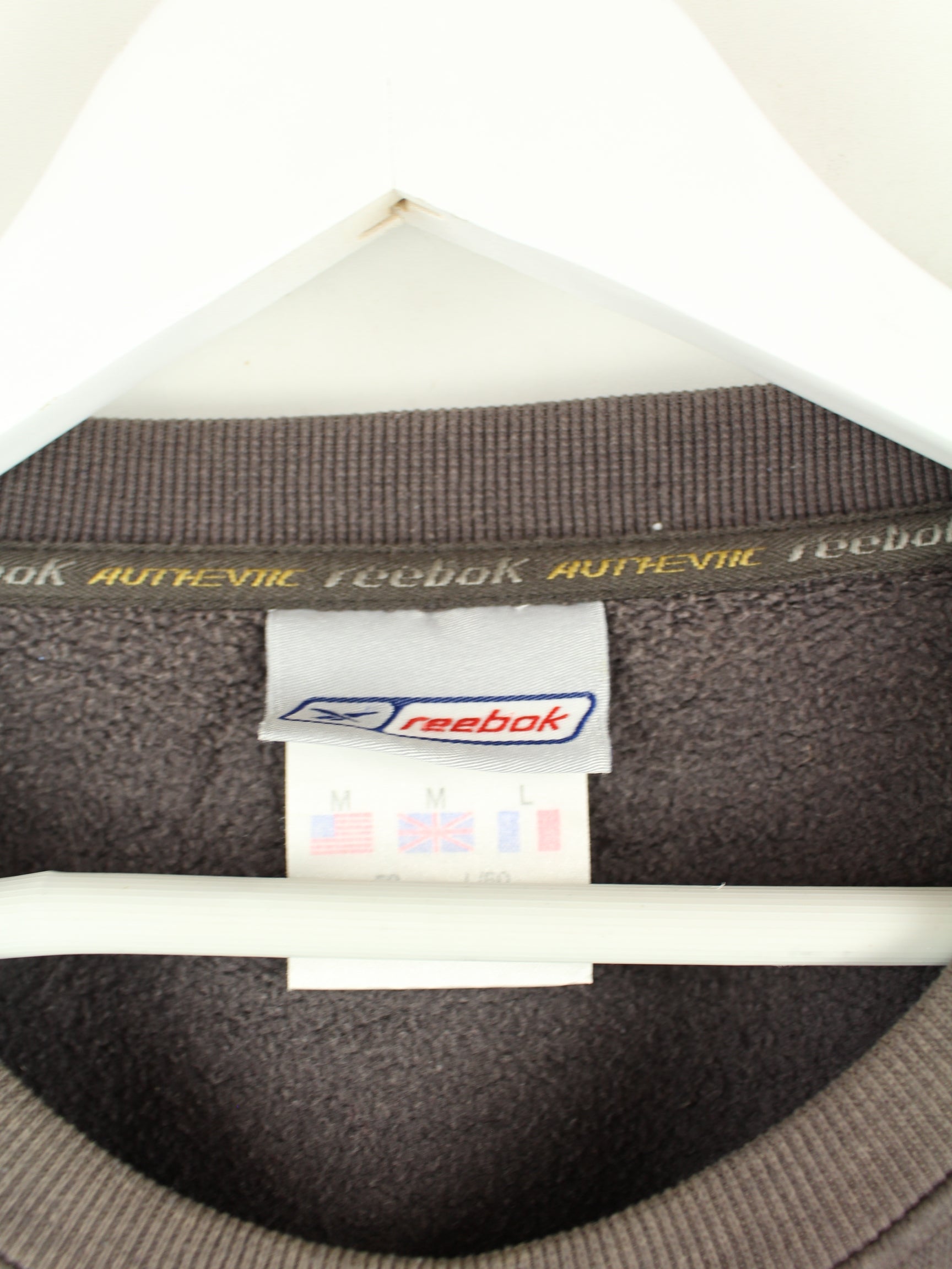 Brown sweater with embroidery by Reebok from the early 2000s in size M. It is made from a cotton blend and is in good condition.