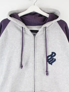 Grauer Hoodie mit Stick und Reißverschluß vom Brand Roca Wear aus Anfang der 2000'er in Größe 9XL. Er ist aus einer Baumwollmischung und in gutem Zustand zu bekommen.