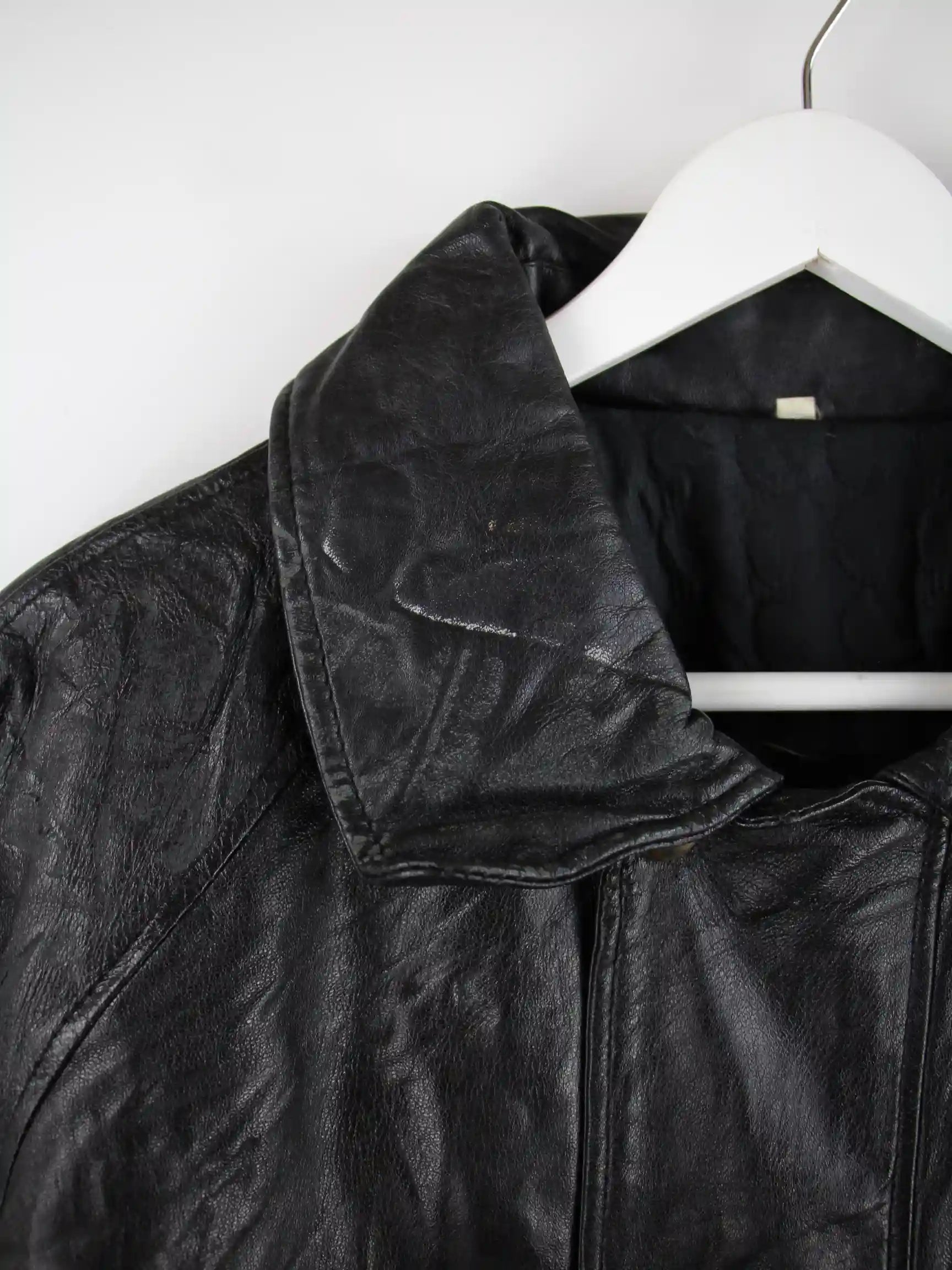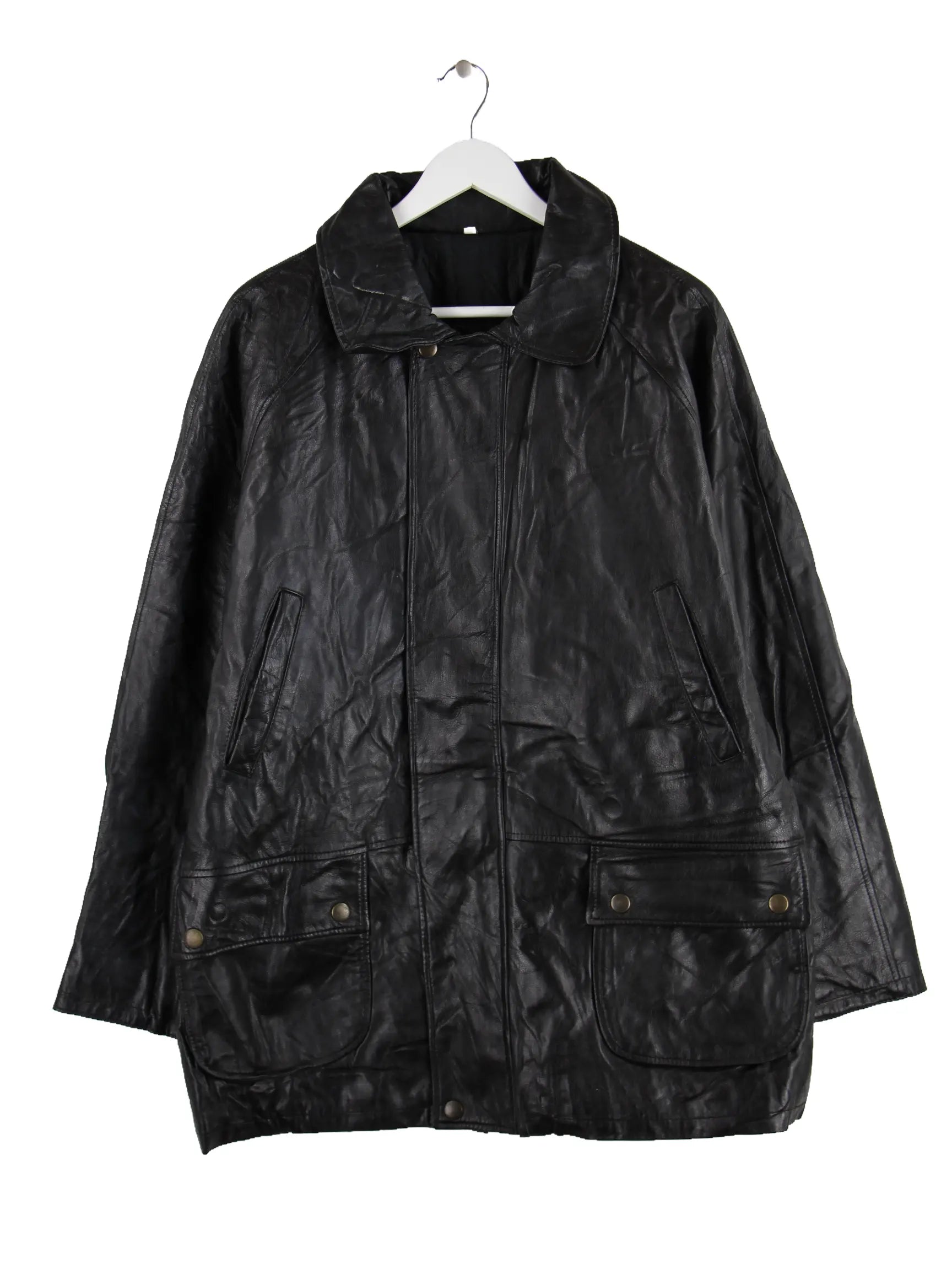 Schwarze Jacke der Marke Rover & Lakes aus den 90'ern in Größe L. Sie ist aus Leder gefertigt und in gutem Zustand bei uns zu bekommen.