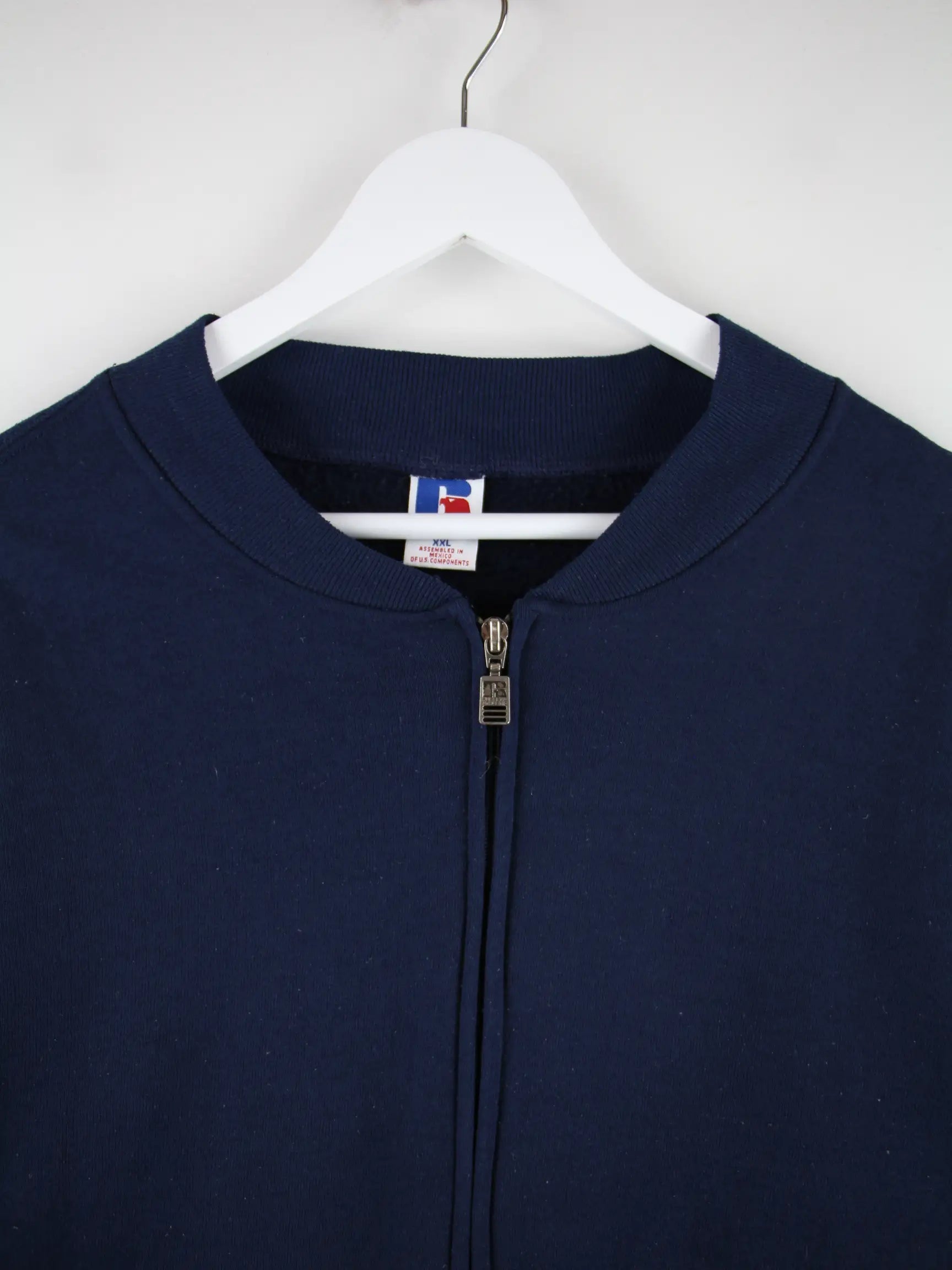 Blaue Sweatjacke vom Brand Russell Athletic in Größe XXL. Sie ist aus einer Baumwollmischung gemacht und in gutem Zustand bei uns vorrätig.