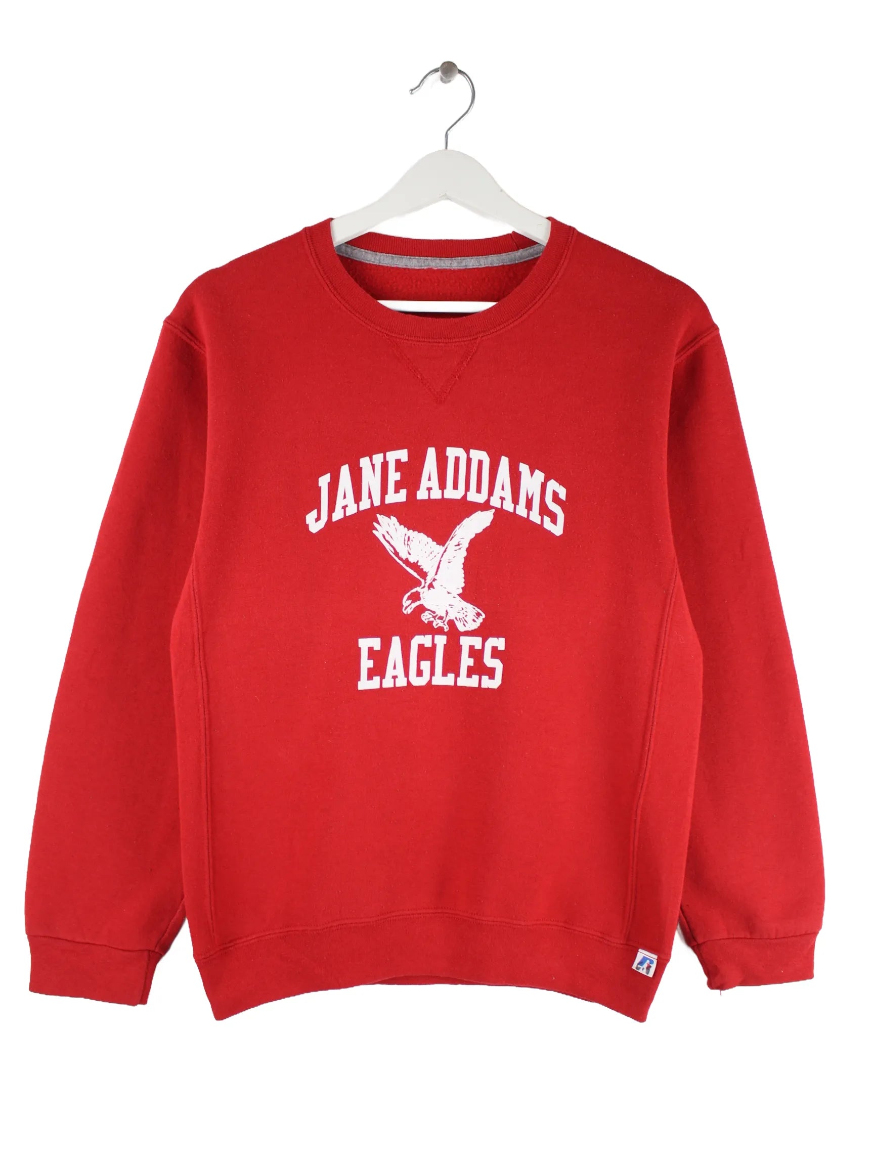 Roter Sweater der Marke Russell Athletic in Größe S. Er ist aus einer Baumwollmischung und in gutem Zustand im Angebot. Mit schönem Eagle Print.