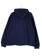 Blauer Hoodie der Brand Russell Athletic in Größe L. Er ist aus einer Baumwollmischung gefertigt und in gutem Zustand vorrätig. Mit schickem Soccer Print.