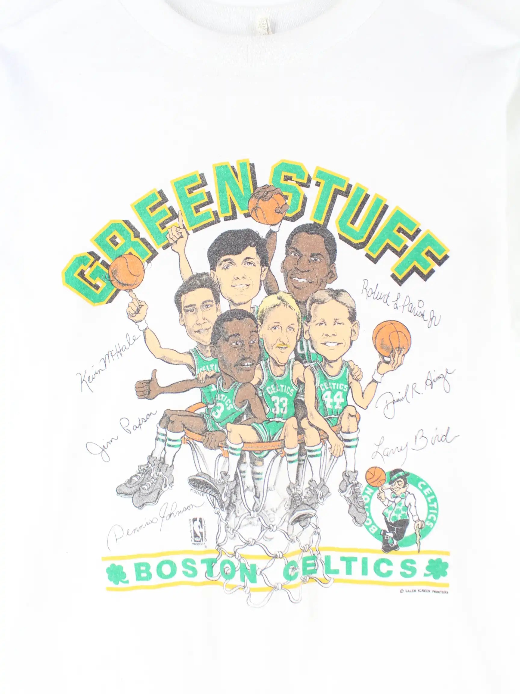 Salem Sportswear 90s Boston Celtics Print Single Stitch T-Shirt Weiß M