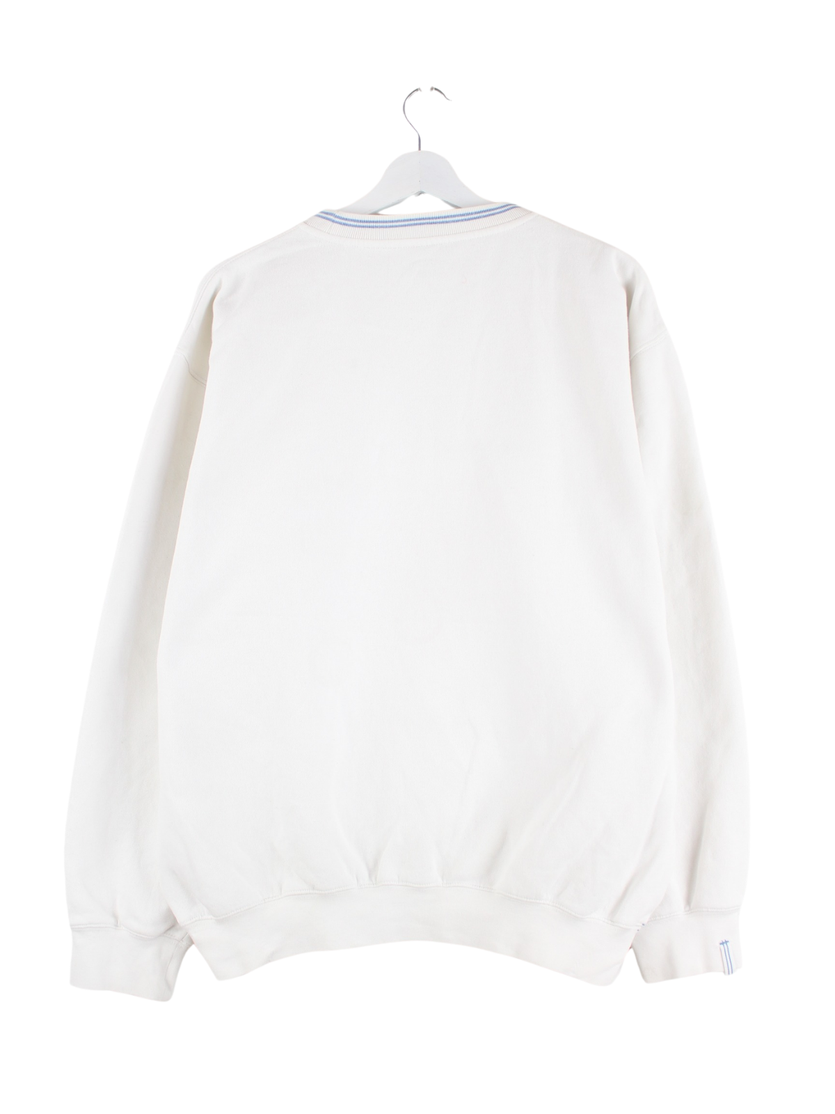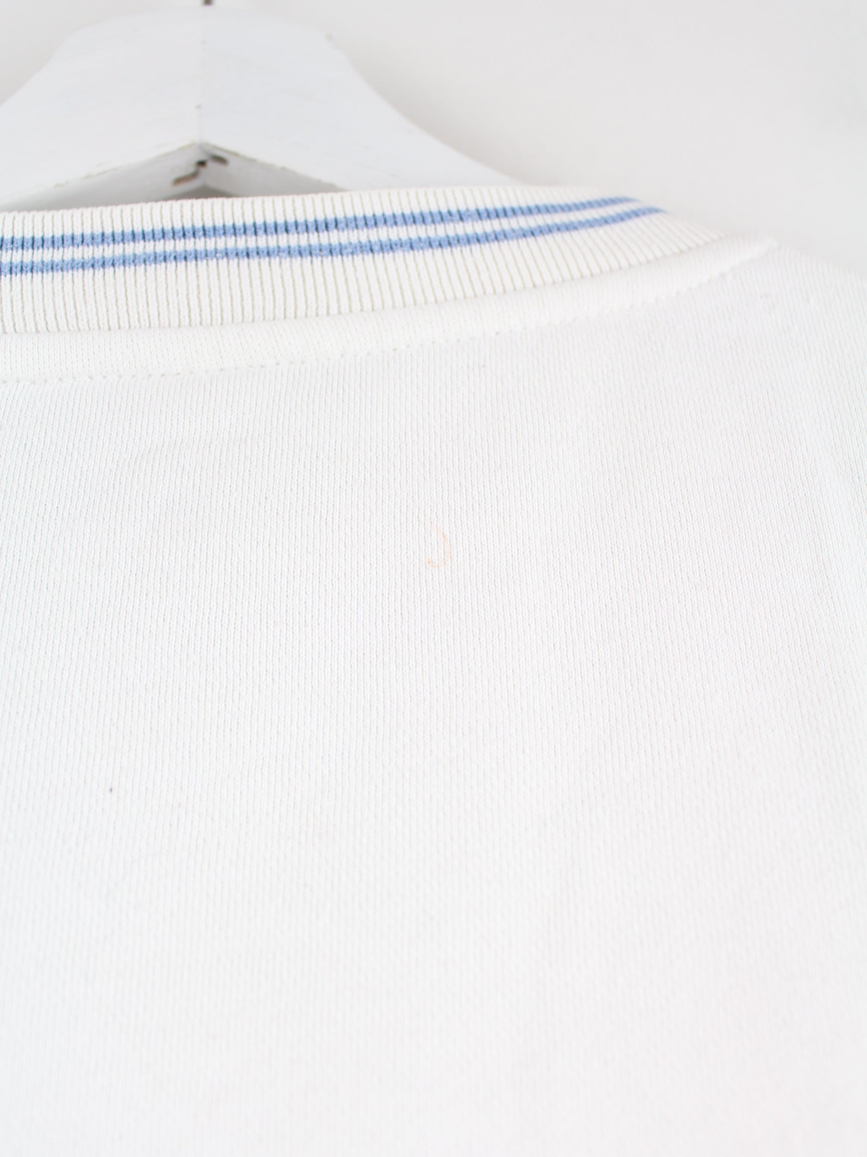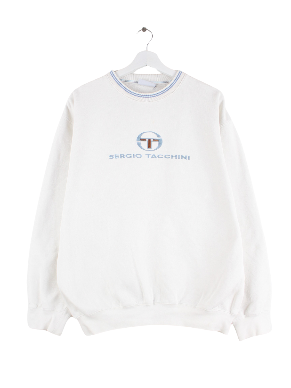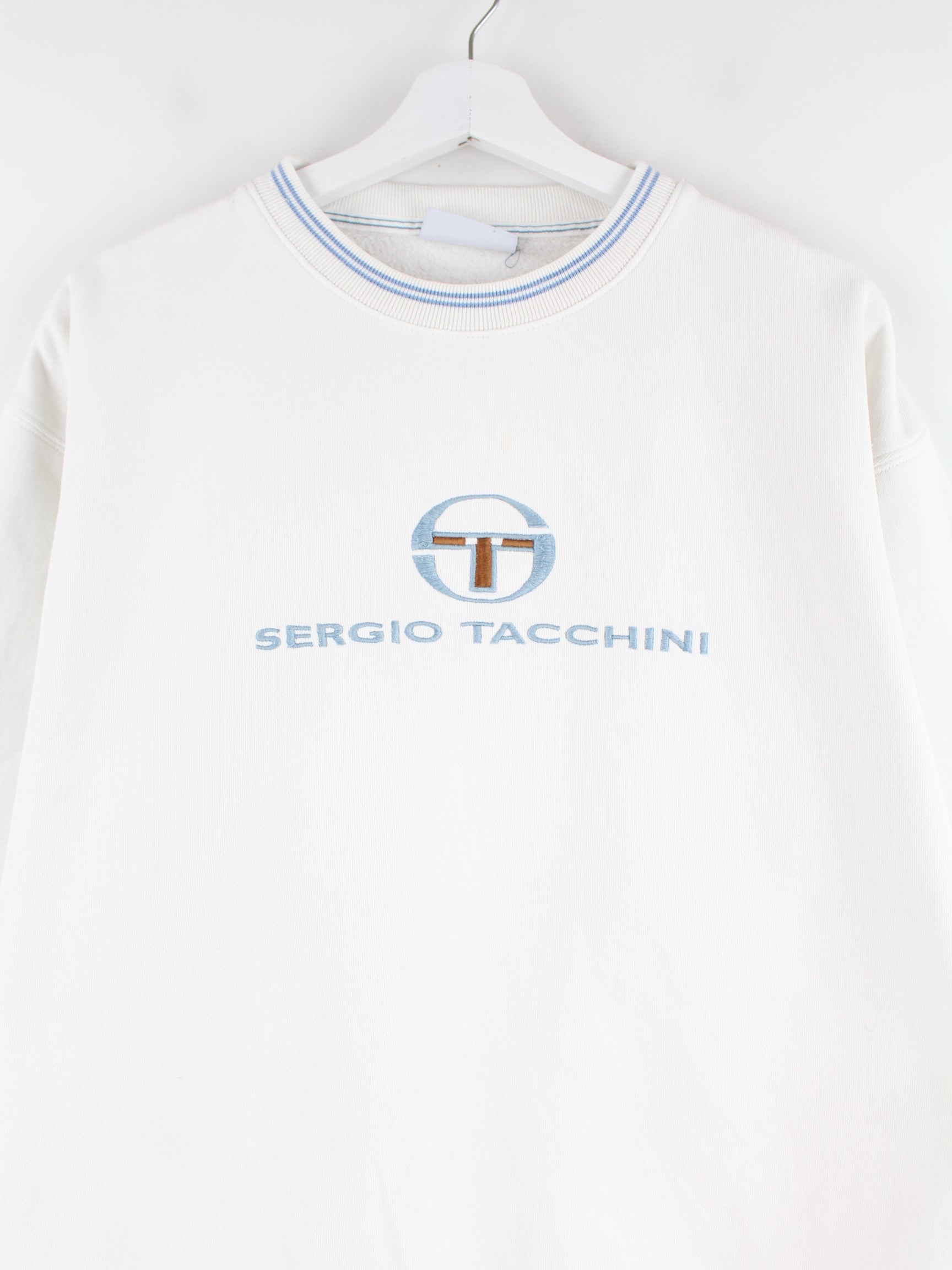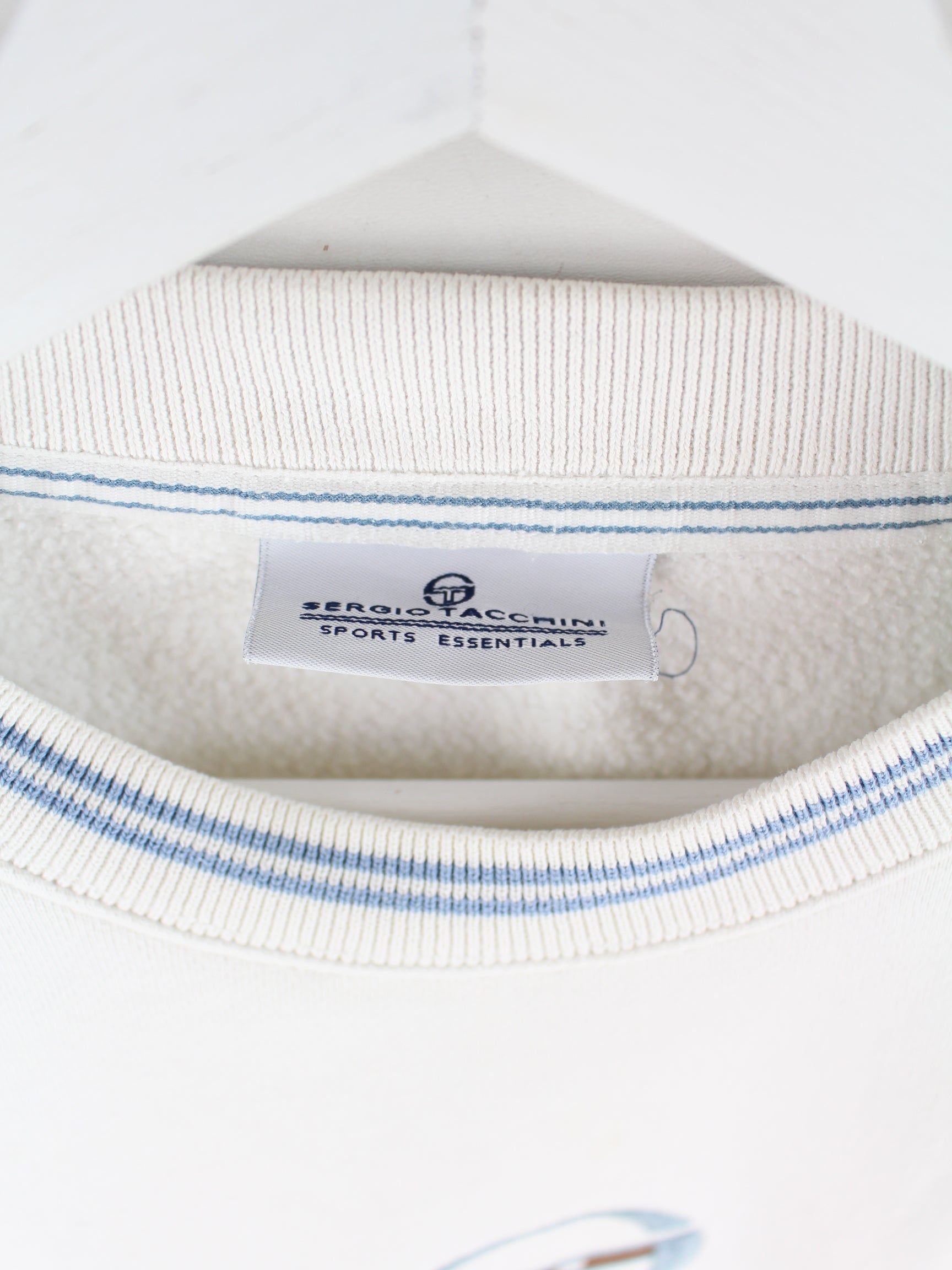 White sweater with embroidery from the Sergio Tacchini brand in size L. It is made of a cotton blend and is in good condition.