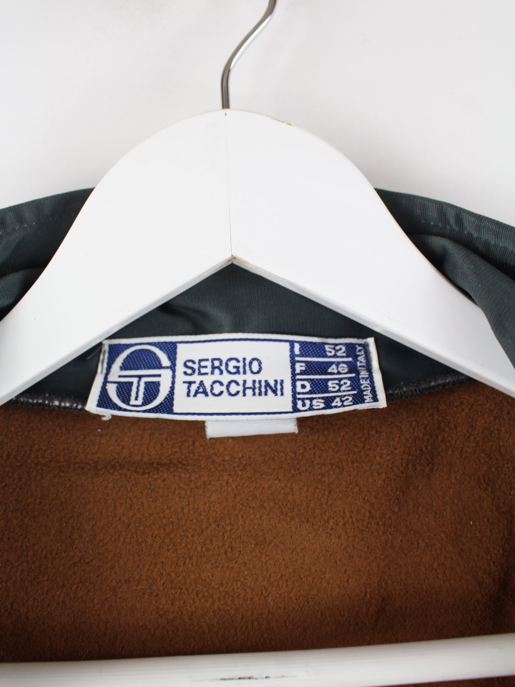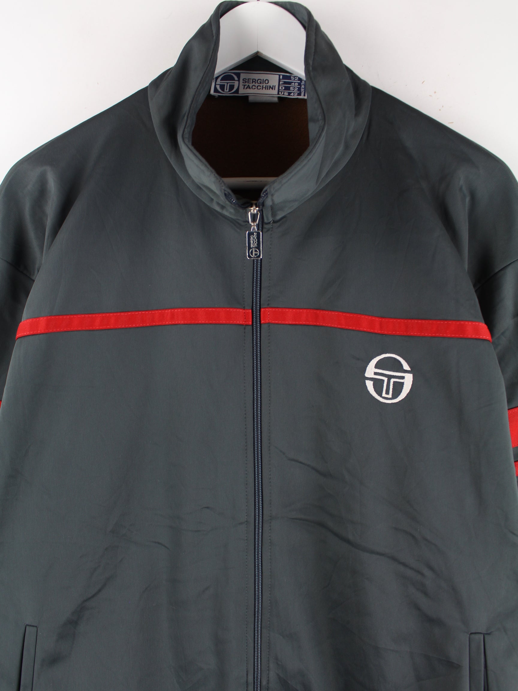 Graue Trainingsjacke vom Brand Sergio Tacchini aus den 80'ern in Größe L. Sie ist aus Synthetik gefertigt und in gutem Zustand in Stock.