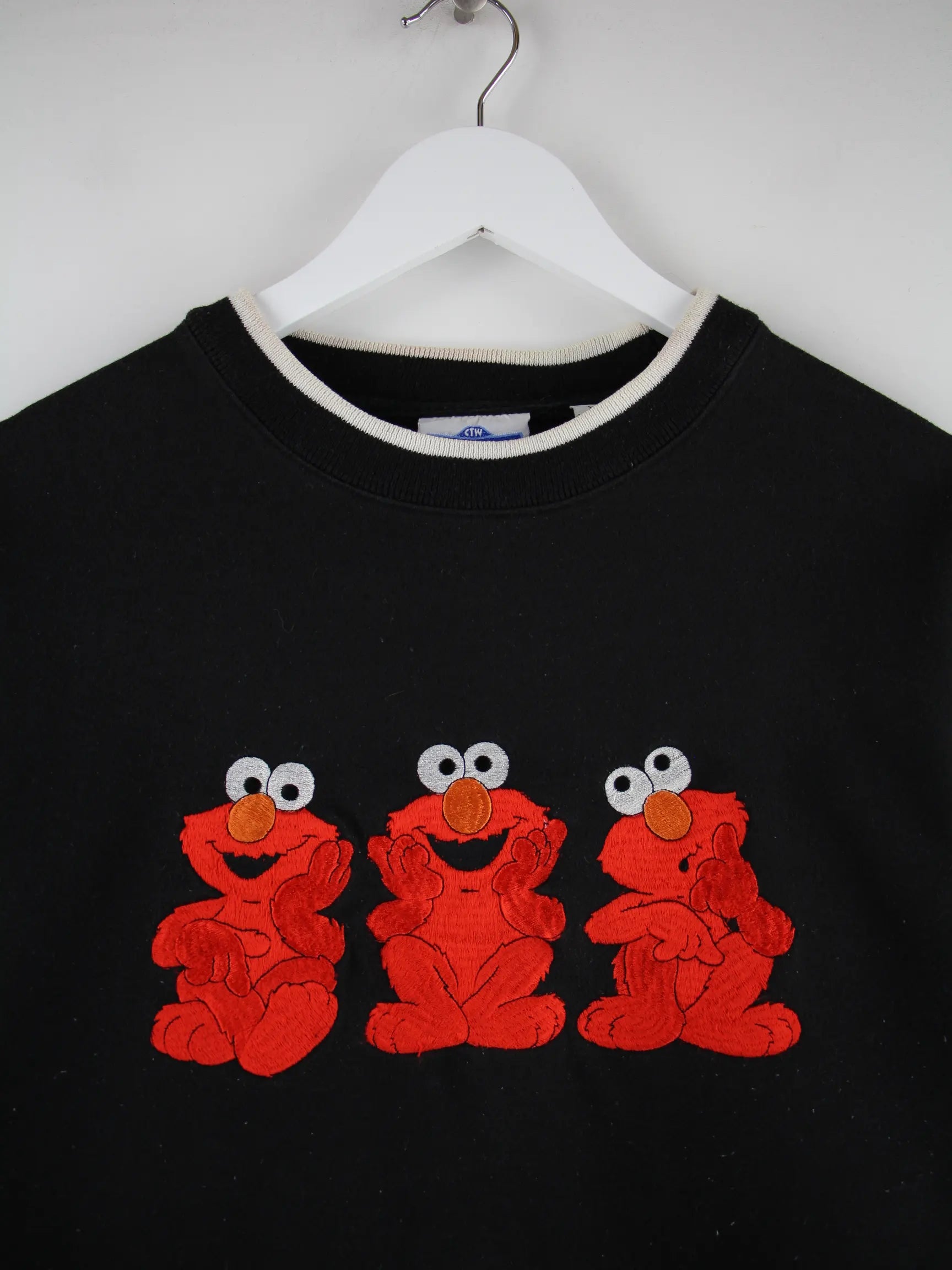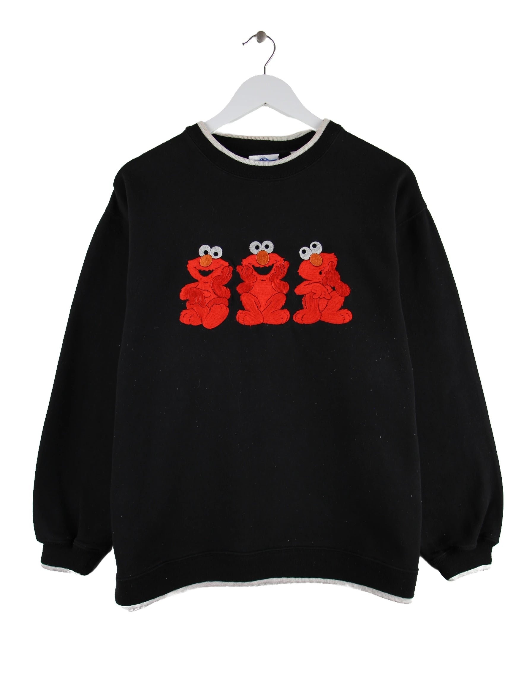 Schwarzer Sweater des Labels Sesame Street aus den 90'ern in Größe L. Er ist aus einer Baumwollmischung hergestellt und in gutem Zustand lieferbar.