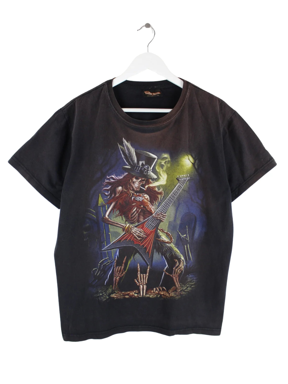 T-Shirt von Solid Rock in Größe L aus den 90'ern. Es ist aus Baumwolle hergestellt und in Schwarz bei uns vorrätig. Mit seltenem Dead Print.