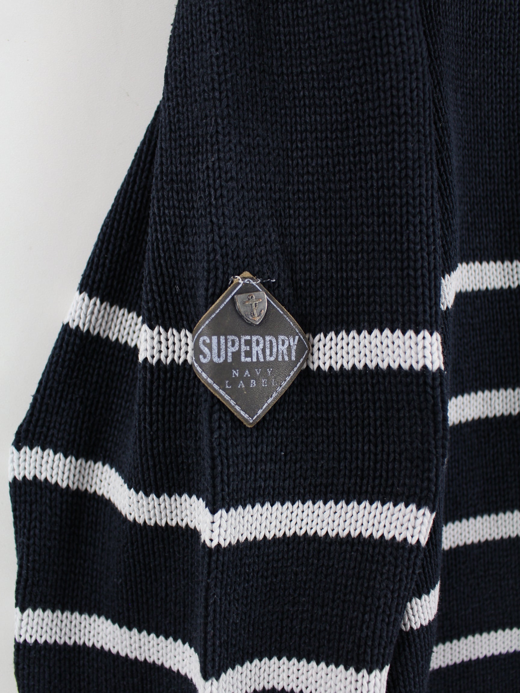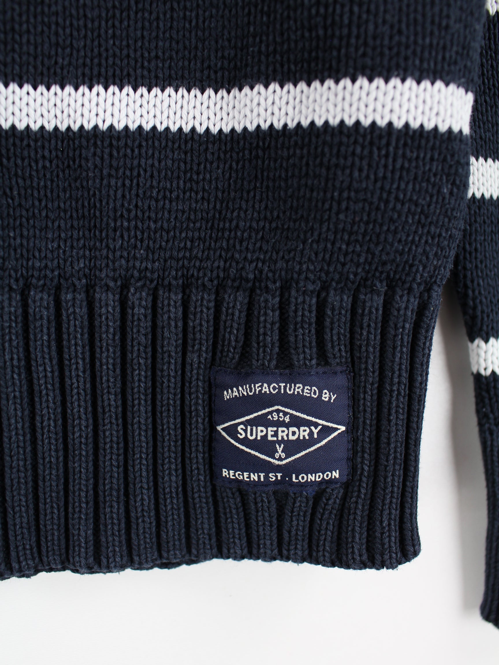 Blauer Pullover aus dem Hause Superdry in Größe L. Er ist aus Baumwolle und in sehr gutem Zustand bei uns zu bekommen.