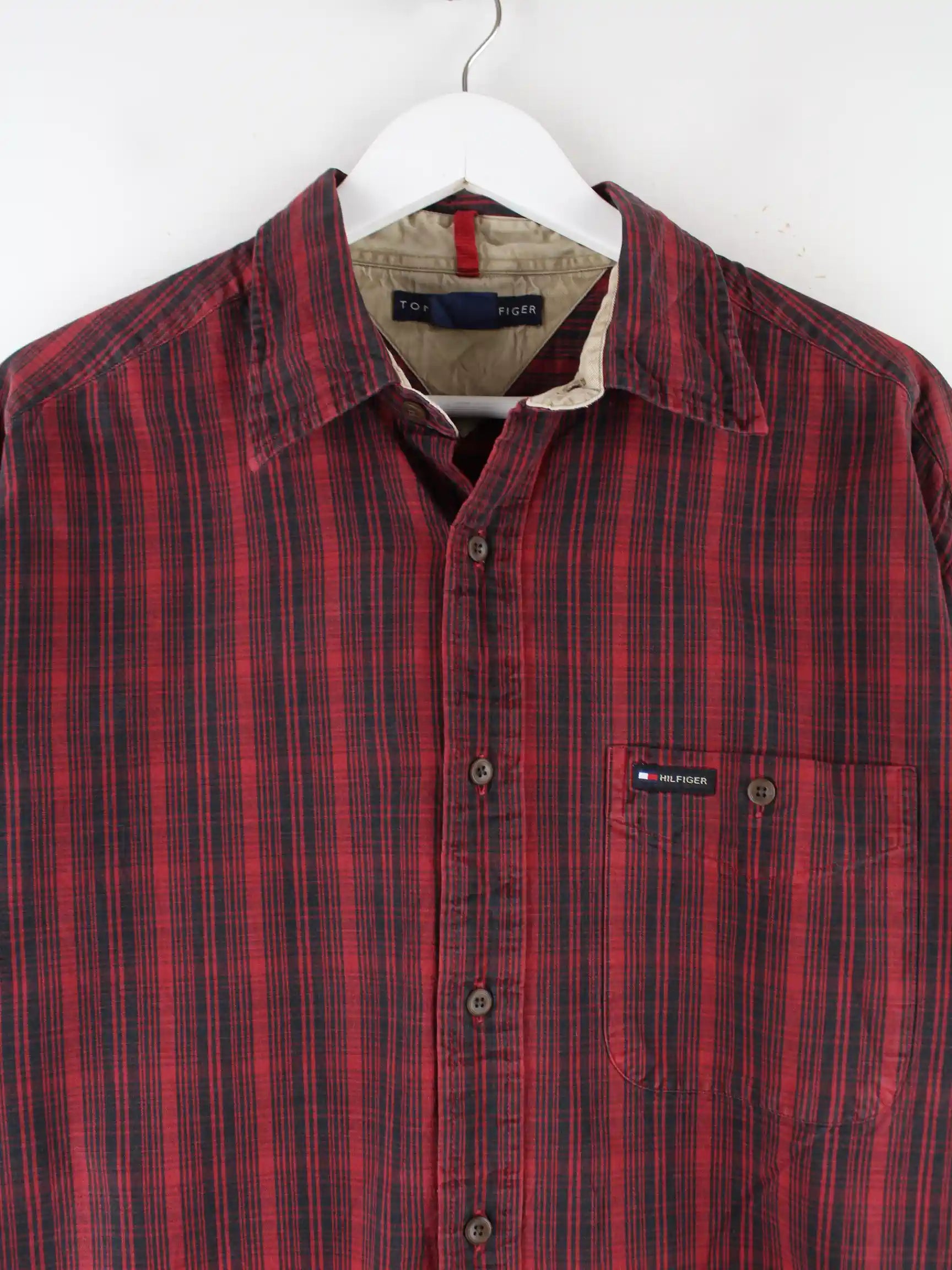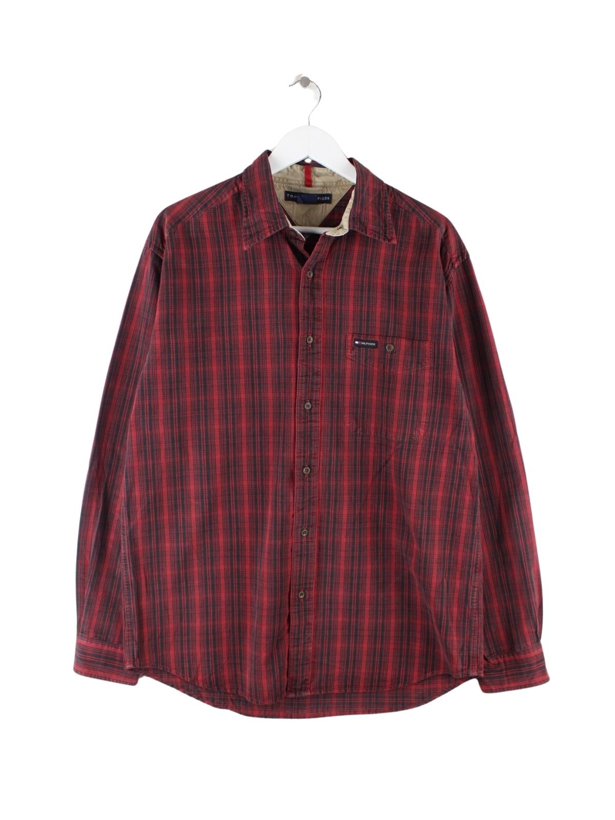 Rotes Freizeit Hemd vom Label Tommy Hilfiger in Größe L. Es ist aus Baumwolle gemacht und in gutem Zustand im Angebot.