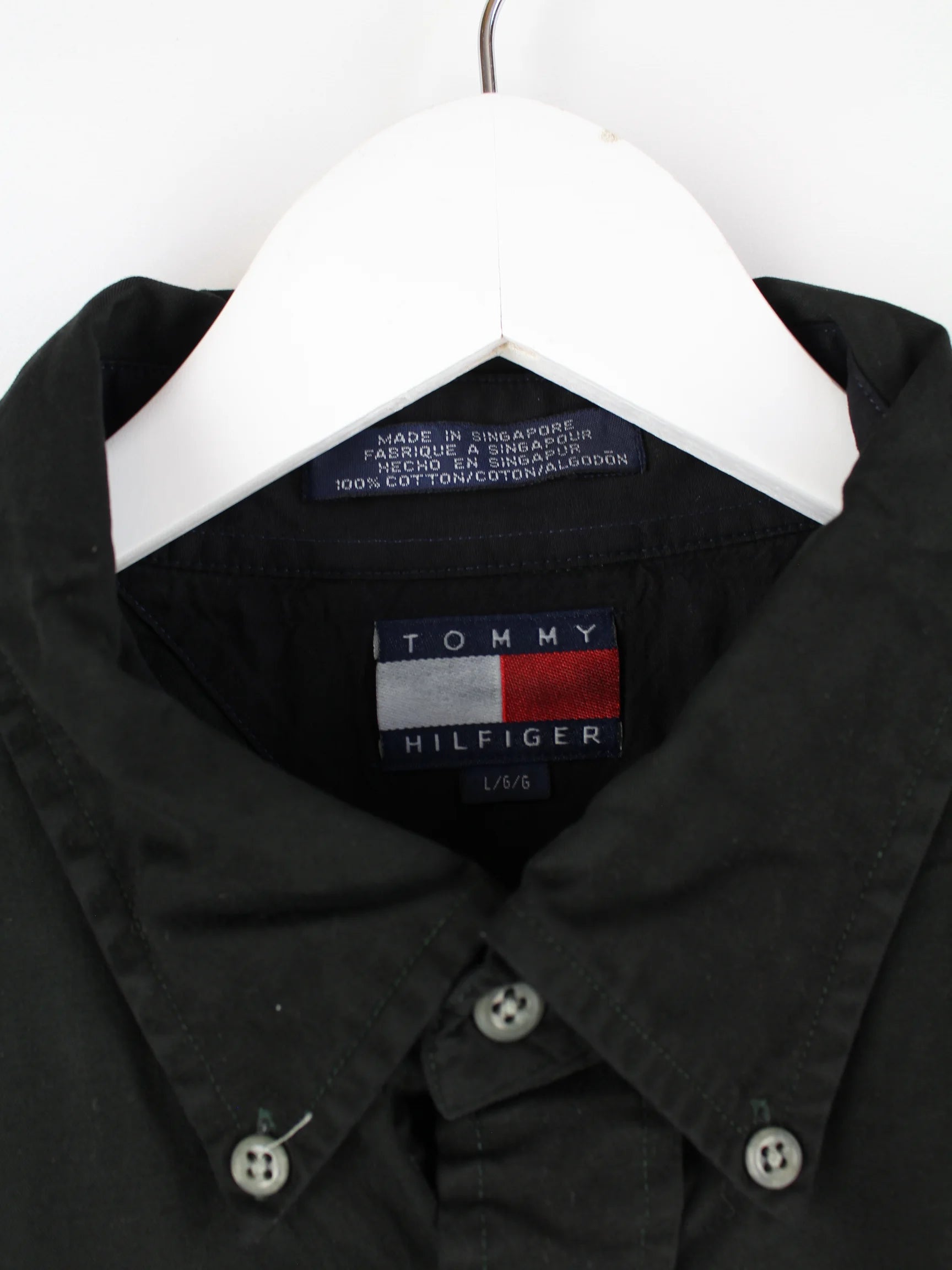 Schwarzes Hemd vom Brand Tommy Hilfiger in Größe L. Es ist aus Baumwolle und in sehr gutem Zustand bei uns vorrätig.